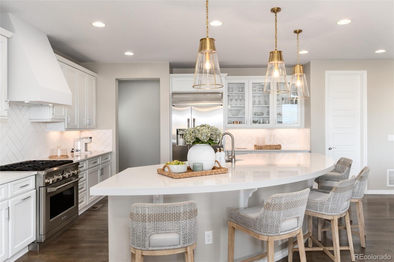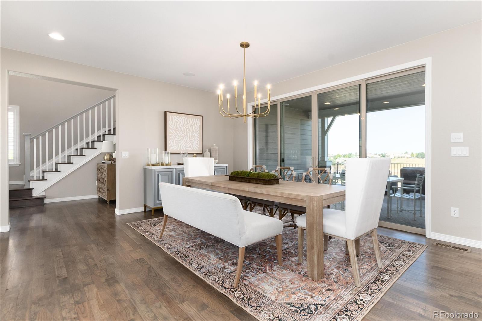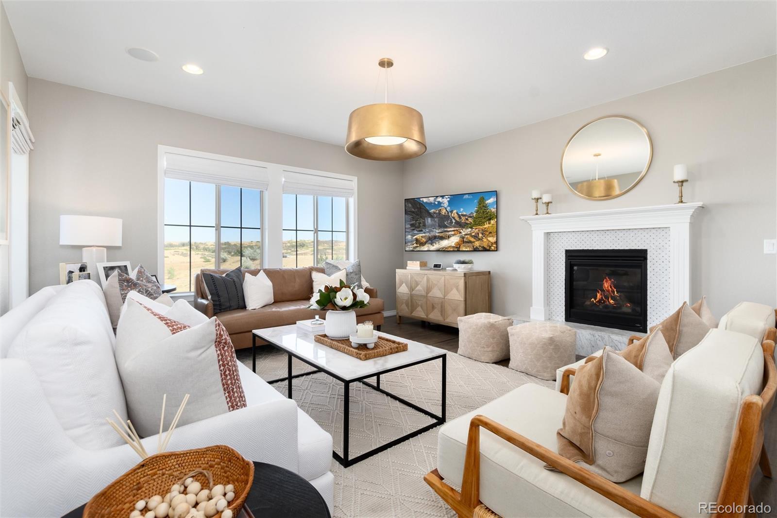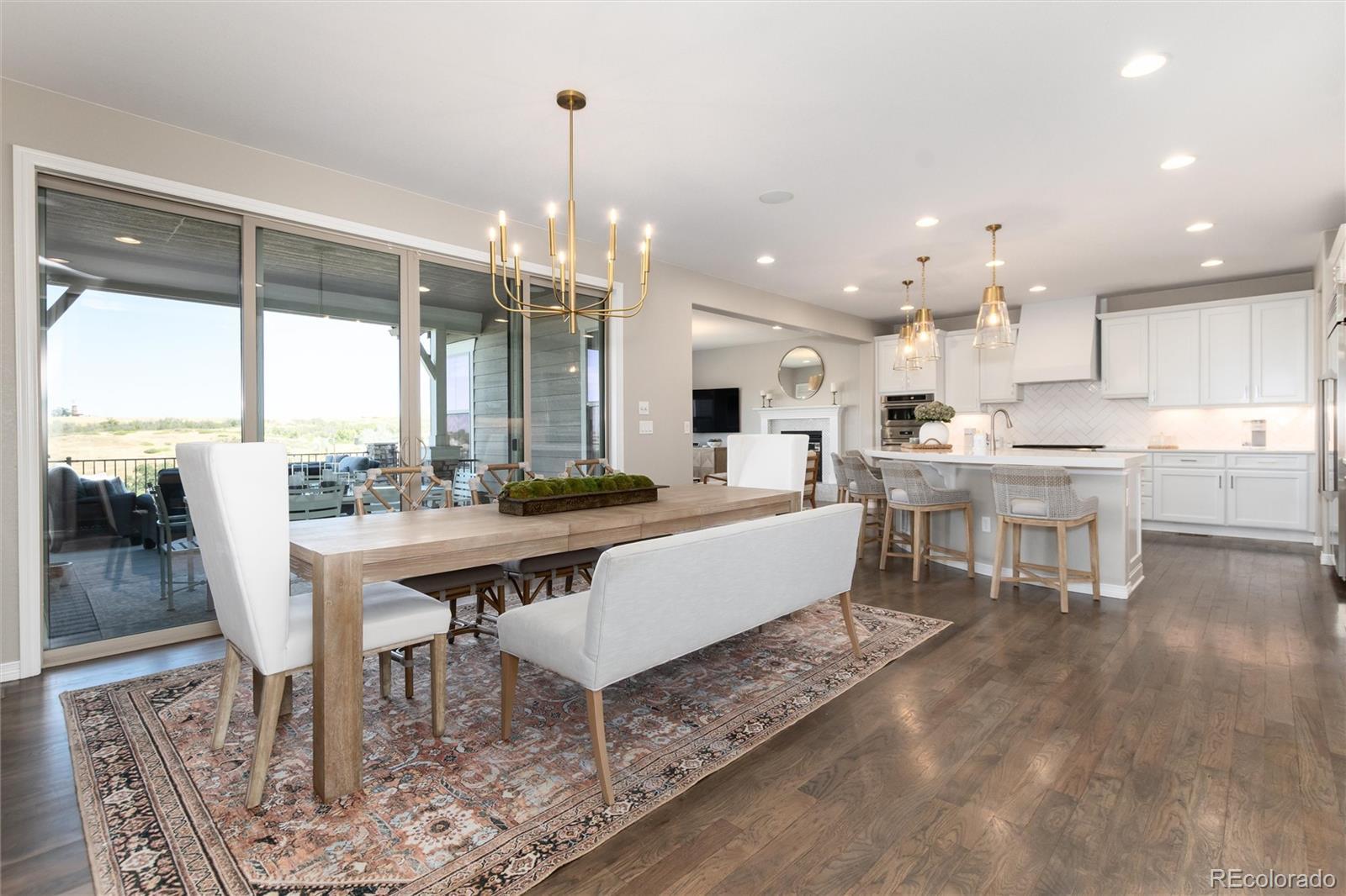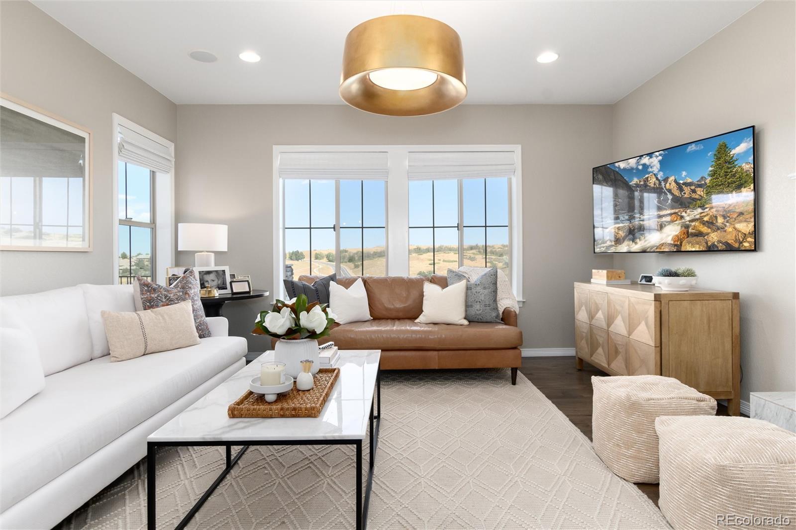 Welcome home to this stunning Somerset model in the highly desirable Backcountry neighborhood. This 6-bedroom, 6-bathroom home is perfectly situated on a premium lot fronting and backing to open space with unobstructed views of the iconic Highlands Ranch windmill. From the moment you arrive, you’ll appreciate the serene surroundings and inviting curb appeal.Inside, the main level impresses with interior designer finishes, upgraded lighting, and custom window coverings throughout, creating a refined yet welcoming and cozy atmosphere. The gourmet kitchen flows seamlessly into the dining and living areas, enhanced by natural light and stylish details that elevate everyday living and entertaining.From the dining area, double sliding glass doors open to an upgraded extended patio overlooking open space and the Highlands Ranch windmill. Start your mornings with coffee as the sun rises over the landscape, and spend your summer evenings enjoying your tranquil surroundings. Upstairs, you’ll find generously sized bedrooms, each with its own access to a bathroom, while the luxurious primary suite offers beautiful finishes and a stunning en-suite bathroom with a soaking tub, custom upgraded cabinetry, spacious shower and an oversized walk-in closet. The finished basement provides additional living space with a large recreation room, bedroom, and full bath—perfect for guests, hobbies, or movie nights. With designer-inspired details, indoor-outdoor living, and unmatched views, this home offers the perfect blend of elegance, comfort, and Colorado lifestyle.