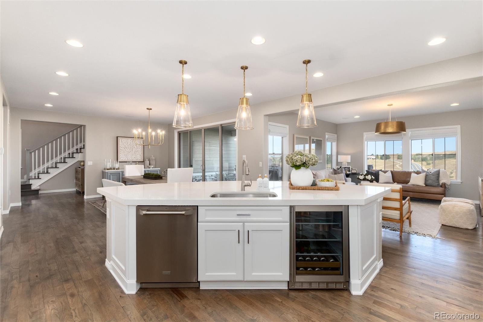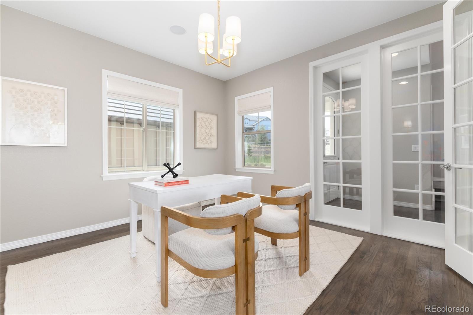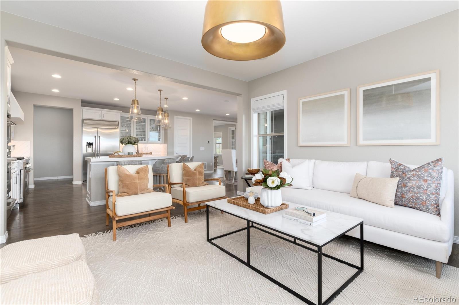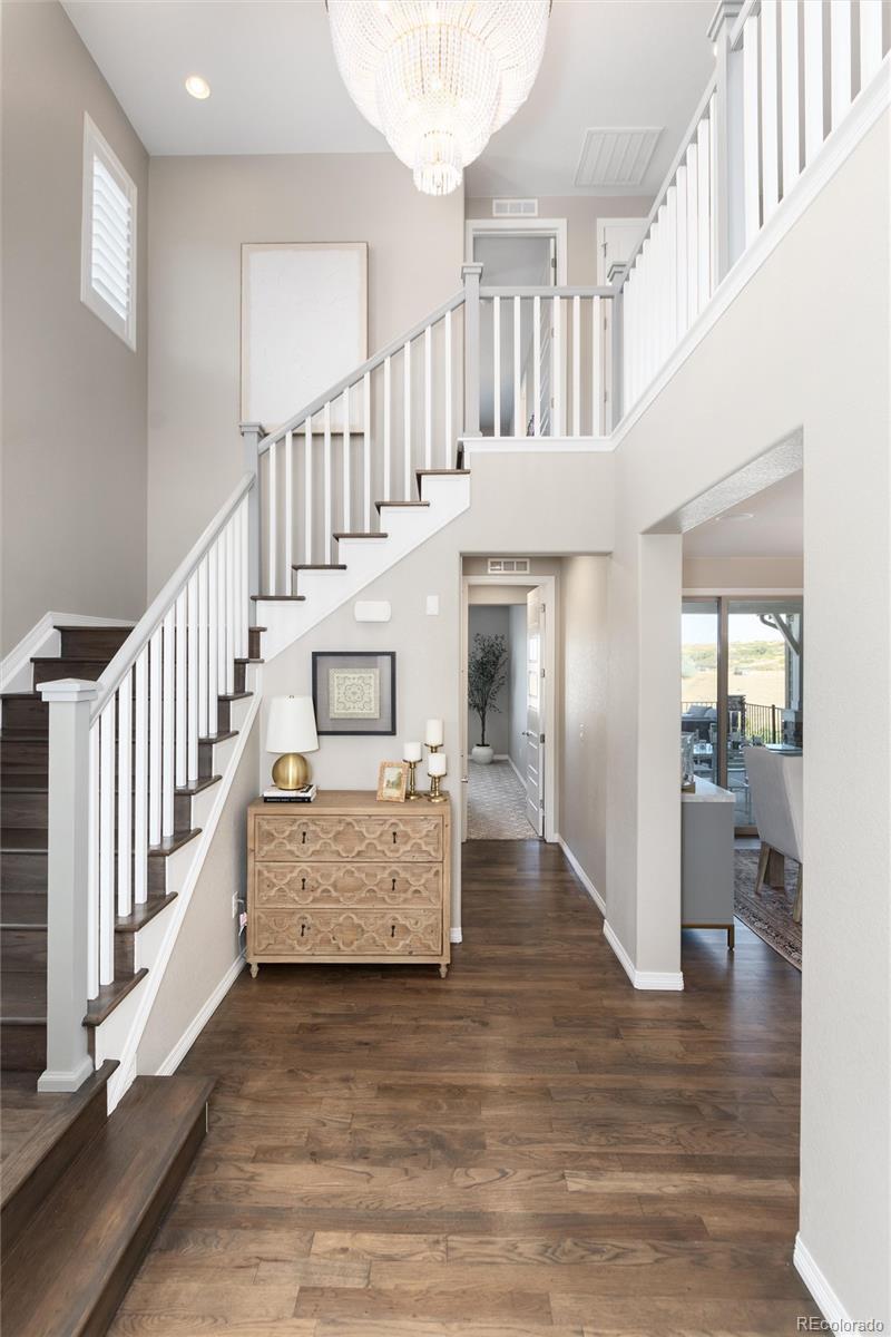 Welcome home to this stunning Somerset model in the highly desirable Backcountry neighborhood. This 6-bedroom, 6-bathroom home is perfectly situated on a premium lot fronting and backing to open space with unobstructed views of the iconic Highlands Ranch windmill. From the moment you arrive, you’ll appreciate the serene surroundings and inviting curb appeal.Inside, the main level impresses with interior designer finishes, upgraded lighting, and custom window coverings throughout, creating a refined yet welcoming and cozy atmosphere. The gourmet kitchen flows seamlessly into the dining and living areas, enhanced by natural light and stylish details that elevate everyday living and entertaining.From the dining area, double sliding glass doors open to an upgraded extended patio overlooking open space and the Highlands Ranch windmill. Start your mornings with coffee as the sun rises over the landscape, and spend your summer evenings enjoying your tranquil surroundings. Upstairs, you’ll find generously sized bedrooms, each with its own access to a bathroom, while the luxurious primary suite offers beautiful finishes and a stunning en-suite bathroom with a soaking tub, custom upgraded cabinetry, spacious shower and an oversized walk-in closet. The finished basement provides additional living space with a large recreation room, bedroom, and full bath—perfect for guests, hobbies, or movie nights. With designer-inspired details, indoor-outdoor living, and unmatched views, this home offers the perfect blend of elegance, comfort, and Colorado lifestyle.