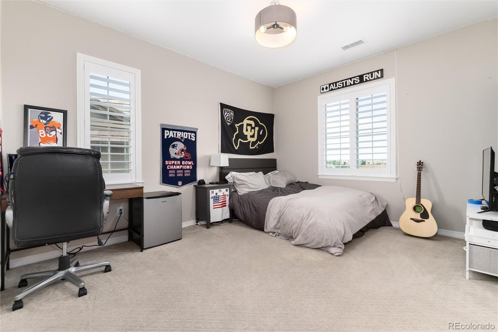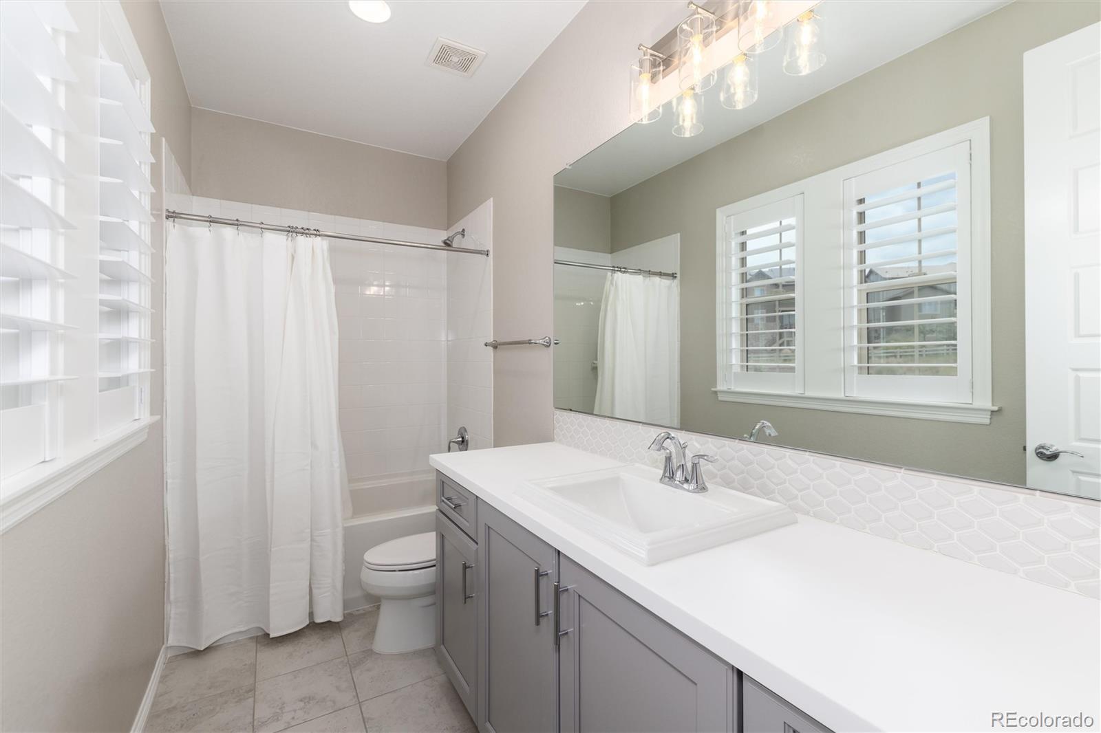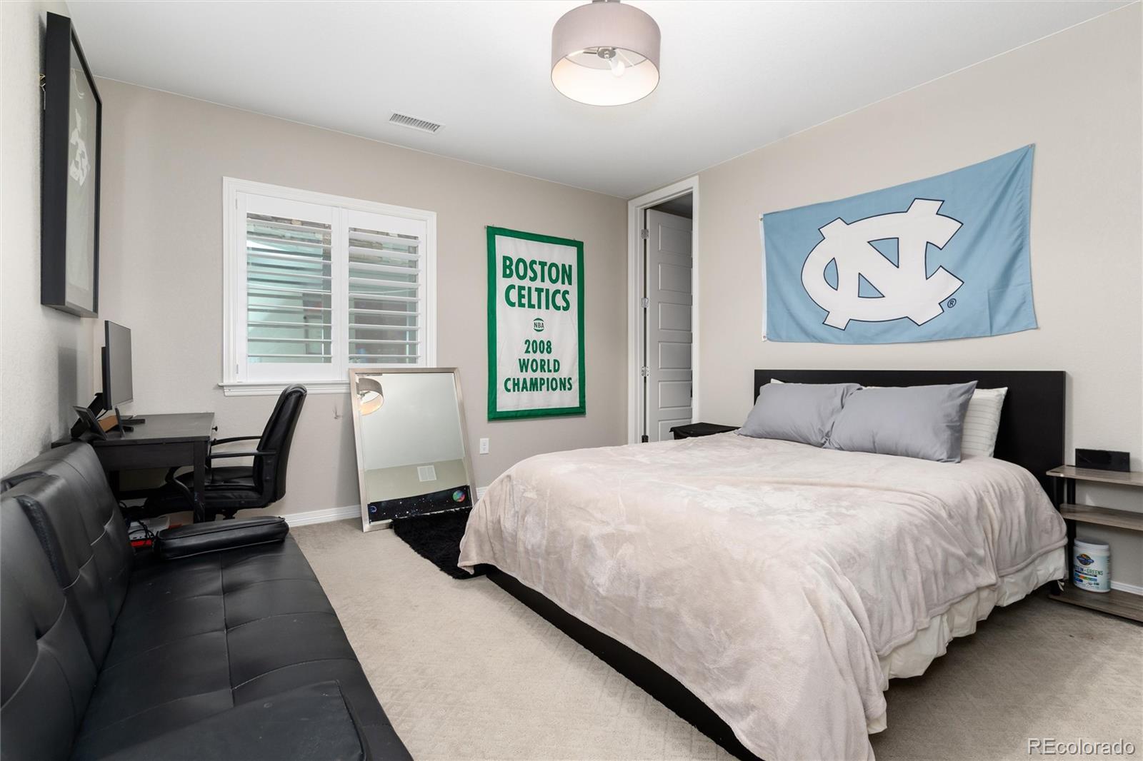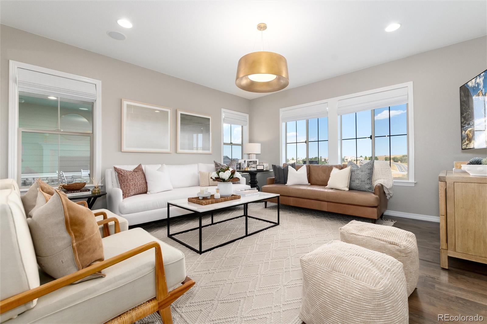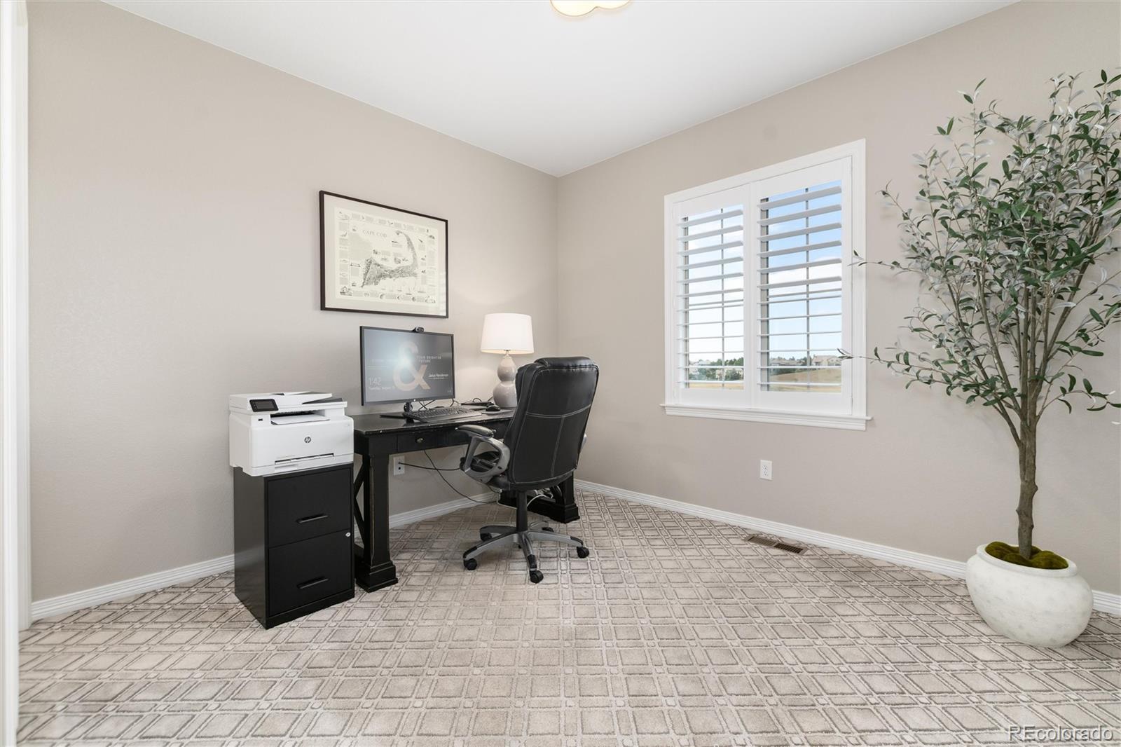 Welcome home to this stunning Somerset model in the highly desirable Backcountry neighborhood. This 6-bedroom, 6-bathroom home is perfectly situated on a premium lot fronting and backing to open space with unobstructed views of the iconic Highlands Ranch windmill. From the moment you arrive, you’ll appreciate the serene surroundings and inviting curb appeal.Inside, the main level impresses with interior designer finishes, upgraded lighting, and custom window coverings throughout, creating a refined yet welcoming and cozy atmosphere. The gourmet kitchen flows seamlessly into the dining and living areas, enhanced by natural light and stylish details that elevate everyday living and entertaining.From the dining area, double sliding glass doors open to an upgraded extended patio overlooking open space and the Highlands Ranch windmill. Start your mornings with coffee as the sun rises over the landscape, and spend your summer evenings enjoying your tranquil surroundings. Upstairs, you’ll find generously sized bedrooms, each with its own access to a bathroom, while the luxurious primary suite offers beautiful finishes and a stunning en-suite bathroom with a soaking tub, custom upgraded cabinetry, spacious shower and an oversized walk-in closet. The finished basement provides additional living space with a large recreation room, bedroom, and full bath—perfect for guests, hobbies, or movie nights. With designer-inspired details, indoor-outdoor living, and unmatched views, this home offers the perfect blend of elegance, comfort, and Colorado lifestyle.
