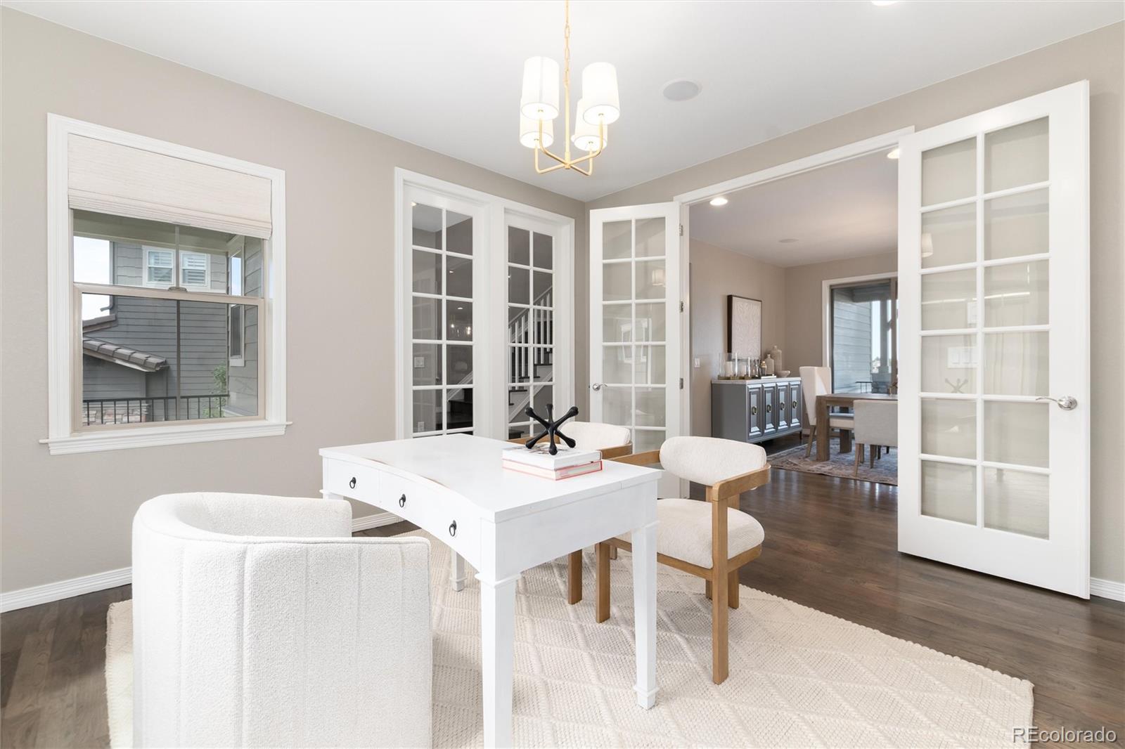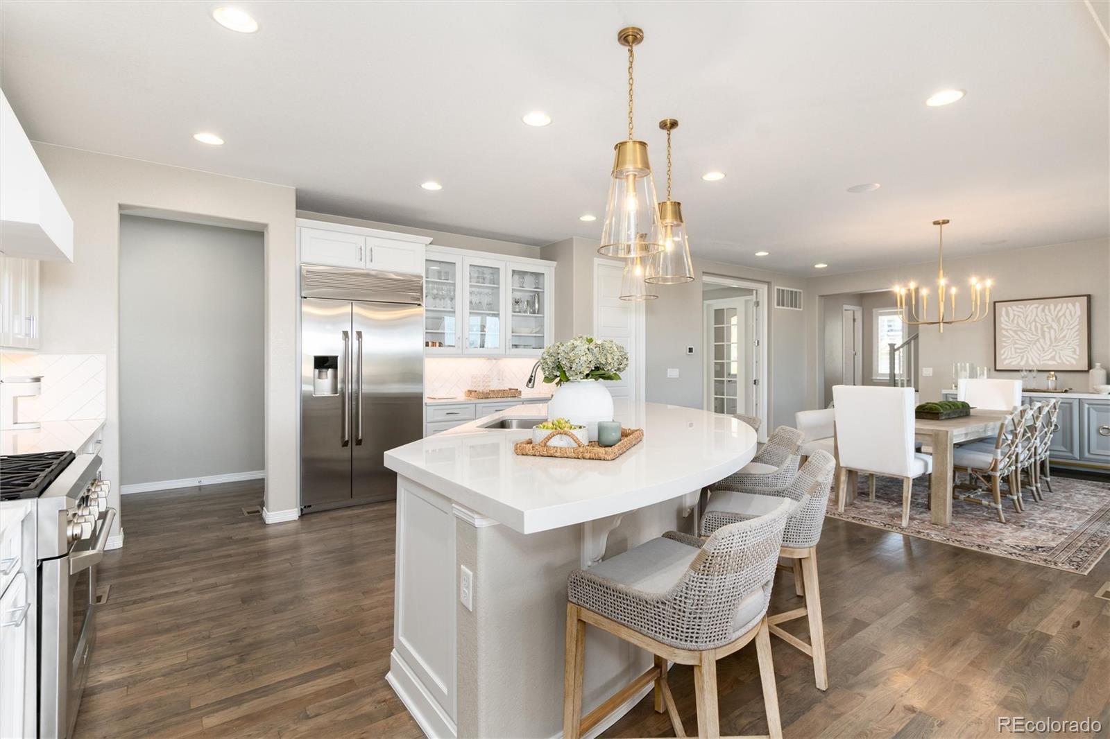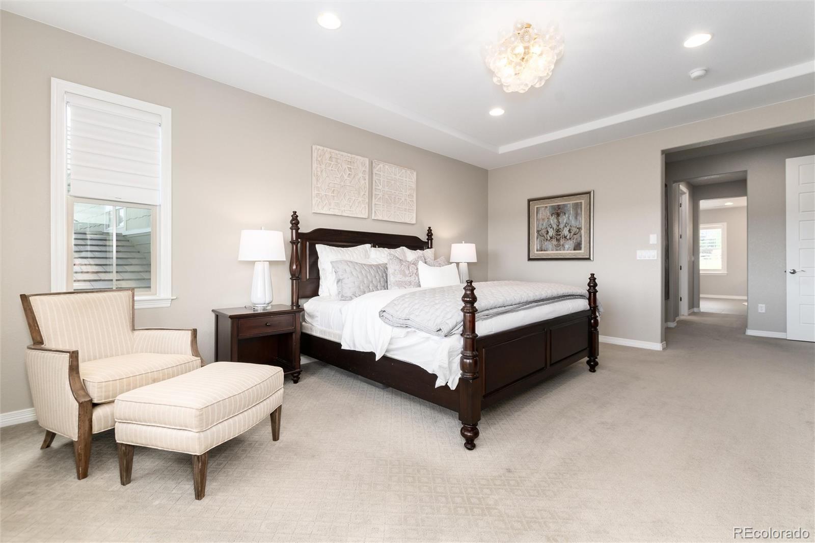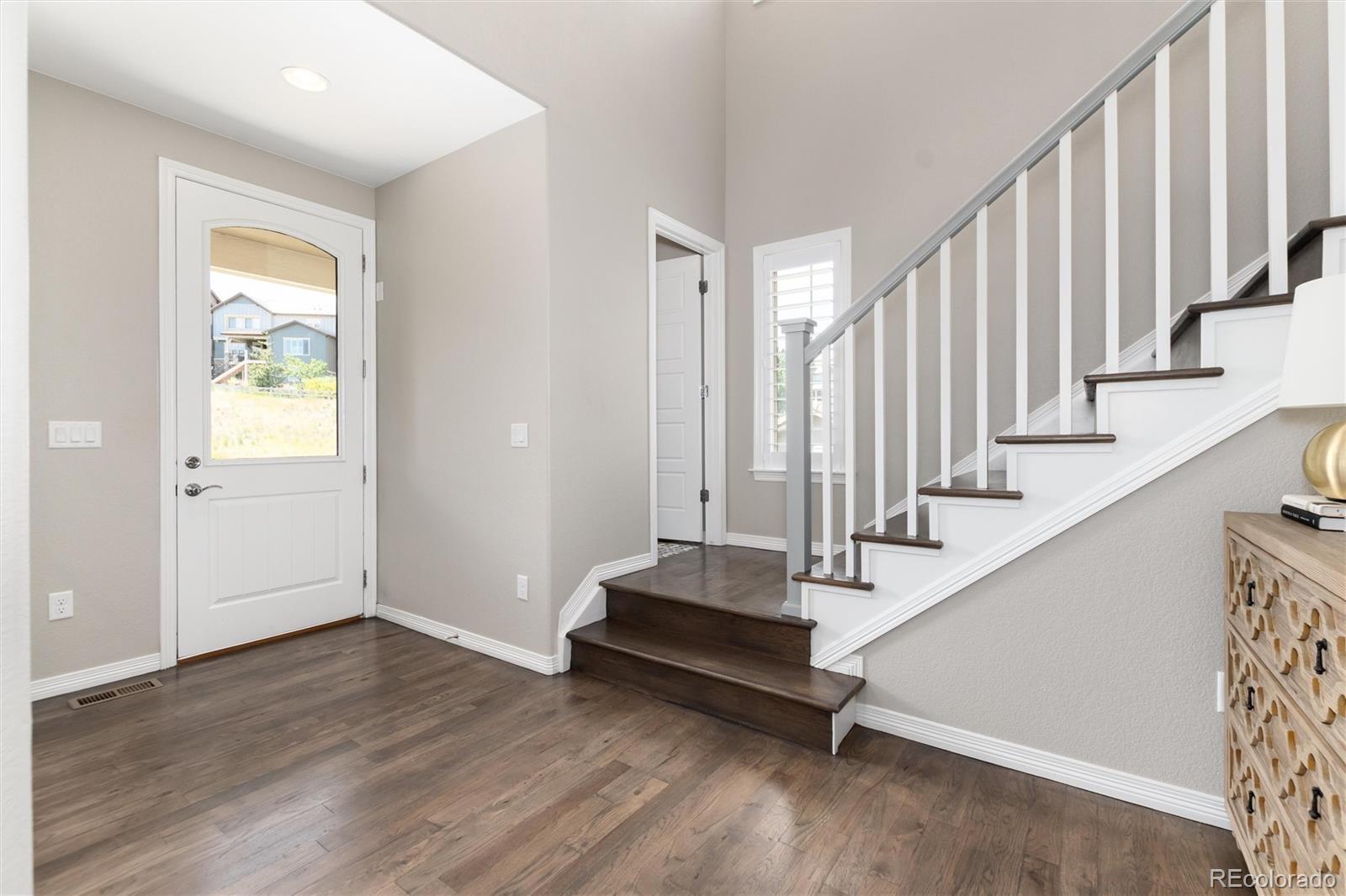 Welcome home to this stunning Somerset model in the highly desirable Backcountry neighborhood. This 6-bedroom, 6-bathroom home is perfectly situated on a premium lot fronting and backing to open space with unobstructed views of the iconic Highlands Ranch windmill. From the moment you arrive, you’ll appreciate the serene surroundings and inviting curb appeal.Inside, the main level impresses with interior designer finishes, upgraded lighting, and custom window coverings throughout, creating a refined yet welcoming and cozy atmosphere. The gourmet kitchen flows seamlessly into the dining and living areas, enhanced by natural light and stylish details that elevate everyday living and entertaining.From the dining area, double sliding glass doors open to an upgraded extended patio overlooking open space and the Highlands Ranch windmill. Start your mornings with coffee as the sun rises over the landscape, and spend your summer evenings enjoying your tranquil surroundings. Upstairs, you’ll find generously sized bedrooms, each with its own access to a bathroom, while the luxurious primary suite offers beautiful finishes and a stunning en-suite bathroom with a soaking tub, custom upgraded cabinetry, spacious shower and an oversized walk-in closet. The finished basement provides additional living space with a large recreation room, bedroom, and full bath—perfect for guests, hobbies, or movie nights. With designer-inspired details, indoor-outdoor living, and unmatched views, this home offers the perfect blend of elegance, comfort, and Colorado lifestyle.