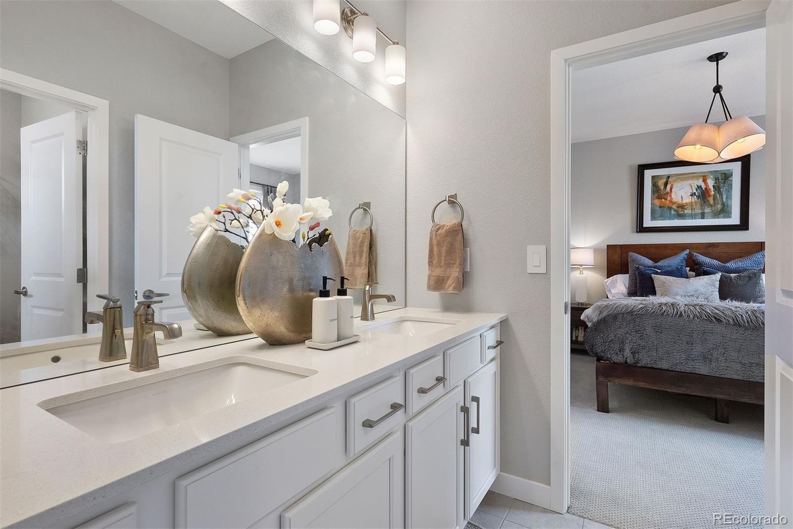 Set against the dramatic Colorado foothills, 2179 South Poppy Street is a refined 4-bedroom, 4-bath residence in the coveted Solterra community that elevates everyday living. Thoughtfully curated finishes and a neutral, organic palette create a calm, gallery-like atmosphere while expansive glass frames the mountain peaks as living artwork. Step inside to a voluminous living area where soaring ceilings and clean architectural lines foster effortless sophistication. The chef-inspired kitchen anchors the main level with a generous island, custom cabinetry, and a walk-in pantry, flowing seamlessly into the dining and great room. From the kitchen, step out to the deck for sunset gatherings with unobstructed views of the Denver foothills and Front Range. The upper level is a private sanctuary. The primary suite is positioned to capture panoramic westward vistas and features a spa-like ensuite bath and a large walk-in closet. Three additional well-appointed bedrooms provide flexible space for family, guests, or a home office. The walk-out lower level offers a bright, adaptable canvas for recreation or media spaces and provides direct access to the manicured grounds. A three-car tandem garage accommodates vehicles and all the gear needed for Colorado adventures. Moments from Red Rocks and an extensive network of private trails, yet within easy reach of Denver’s urban core, this home is a meticulously crafted environment for buyers who value quality finishes, thoughtful design, and spectacular, unobstructed mountain views. Contact broker prior to submitting any offers, as a Relocation Management Company is involved in the sale of this property. Additional documentation may be required and offers will be submitted to the Relocation Management Company for review and approval.