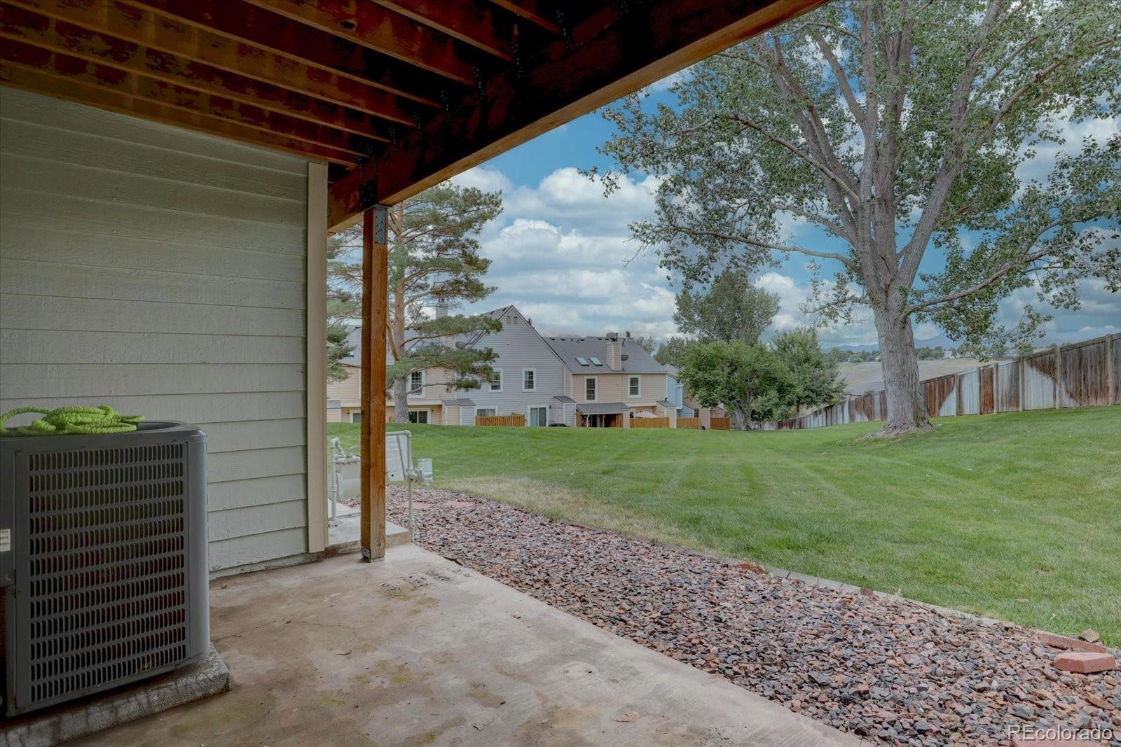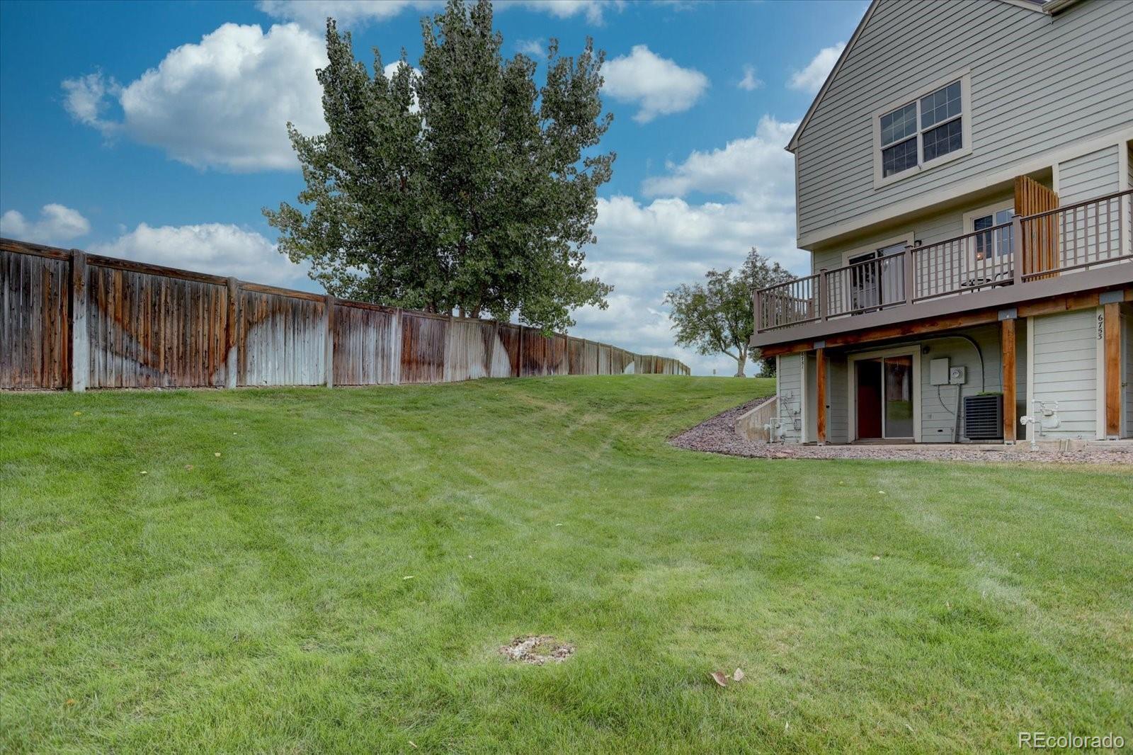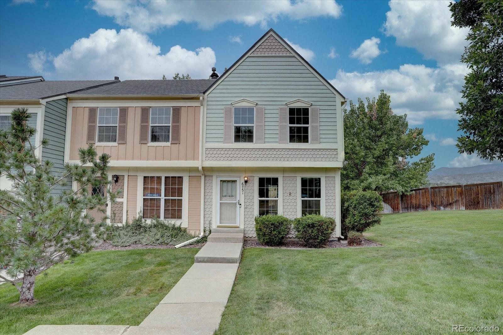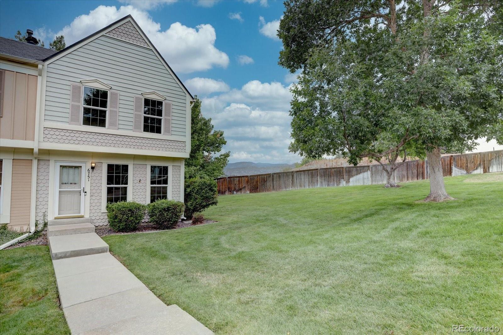 Location, location you got it. This walk-out end unit with Mountain Views backs to open space, creek and trails. On the main floor You have hardwood floors throughout. There is a living room, 1/2 bath, kitchen with S/S appliance's, fridge included. Dining area from where you can access the large Trex deck and enjoy the Mountain View’s and sunsets. The upstairs has 3 bedrooms, 1 updated bathroom. The large primary bedroom has access to the bathroom and also features sky lights, vaulted ceiling and views too. All hardwood floors upstairs as well. The walk-out basement has a bedroom with access to the covered patio, greenbelt and outside storage. There is roughed-in-plumbing for an extra bathroom, laundry, Washer and dryer are included. Extra storage. The Furnace and Water Heater was replaced May 2025. Newer Windows. A/C and much more. Come and make this your home today. Walk to shops, dining, trails and parks. Access to Chatfield State Park, C-470, 285.