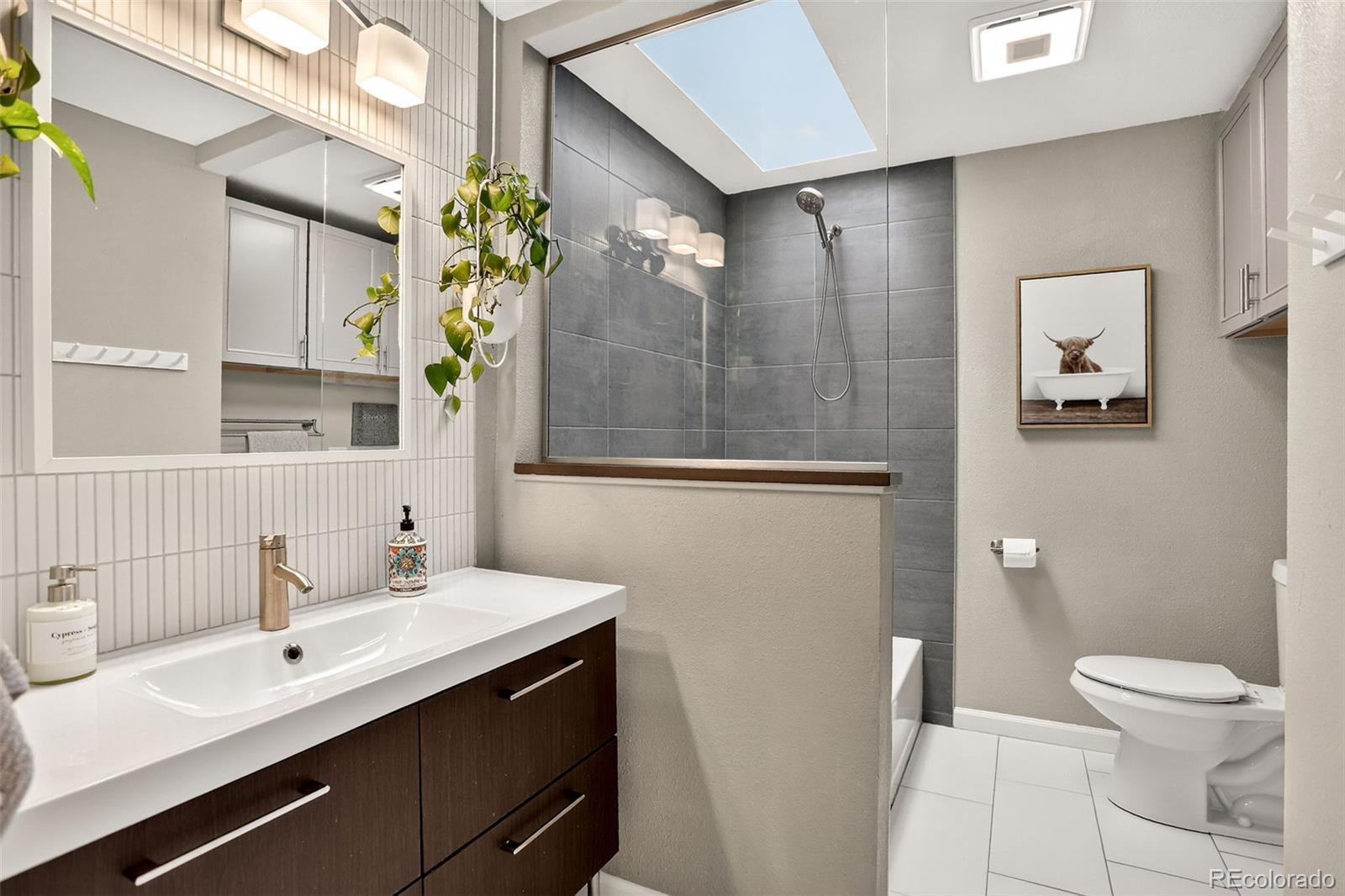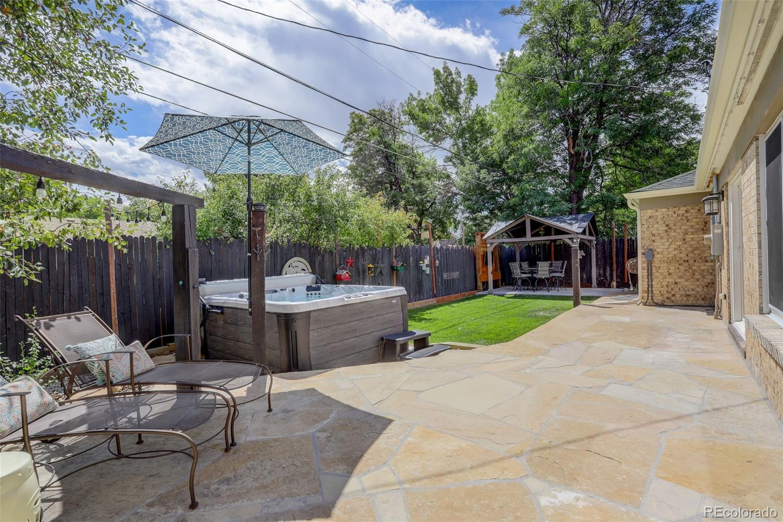 2.5% Assumable VA Loan! Welcome to the perfect blend of city convenience and suburban tranquility. This updated ranch-style home in the desirable Hampden Heights neighborhood offers a streamlined living experience with unbeatable access to everything Denver has to offer. An easy commute to the Denver Tech Center, downtown, and DIA makes this a prime location for any lifestyle. Step inside and discover a functional, modern layout featuring beautiful hardwood floors that flow throughout the main living areas. The interior is bathed in tons of natural light, accentuated by multiple skylights and huge egress windows that create a bright, airy atmosphere. This home is equipped with a full suite of smart technology, including high-tech lighting, a smart thermostat, and smart cameras that can be controlled remotely. For added convenience and energy efficiency, a new whole-house fan provides quick and quiet cooling. Thoughtful upgrades continue throughout, featuring a state-of-the-art tankless water heater, a brand-new 200-amp power panel with a dedicated car charger for your electric vehicle, and a smart garage door that can be managed from your smartphone. The exceptional indoor experience flows effortlessly to a private backyard oasis. Both the front and back yards feature carefully selected perennial flowers that provide continuous, vibrant color from spring through fall, adding to the home's charm and curb appeal. A custom-built stone patios and an outdoor pergola defines a stunning relaxation and entertaining space. A top-of-the-line hot tub awaits for ultimate rejuvenation, while a sophisticated fire table provides the perfect gathering spot for cozy evenings with friends and family. Enjoy peaceful nights and quiet streets while being moments away from the city's best amenities.