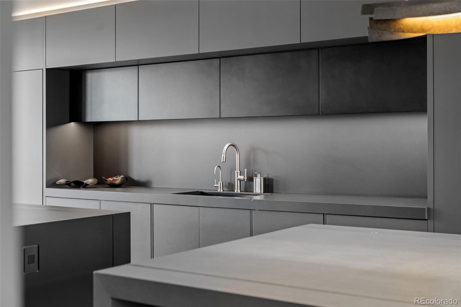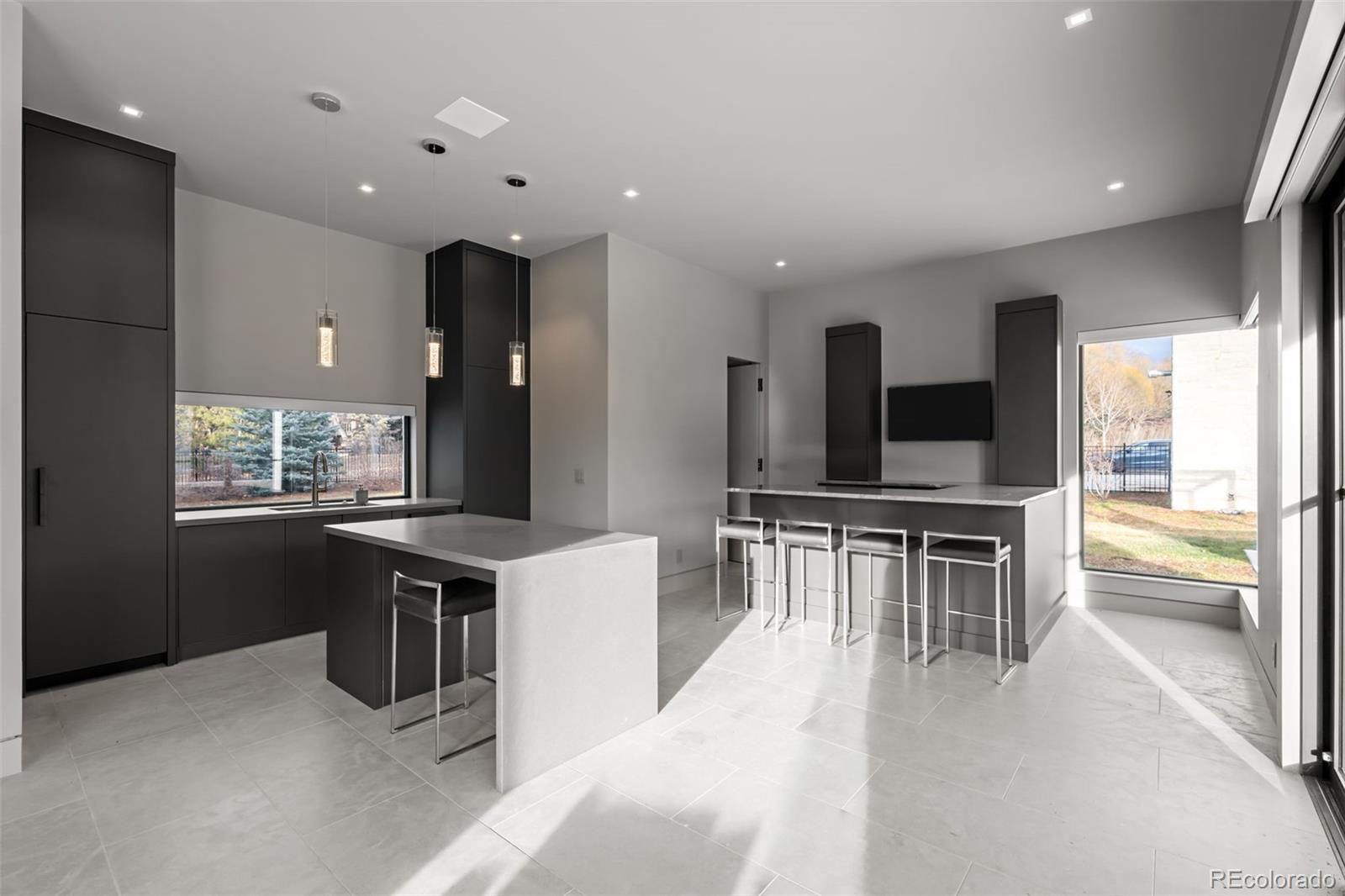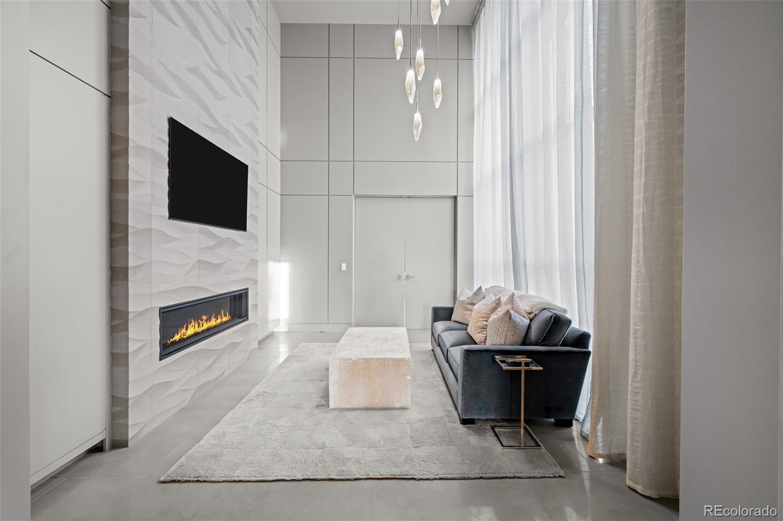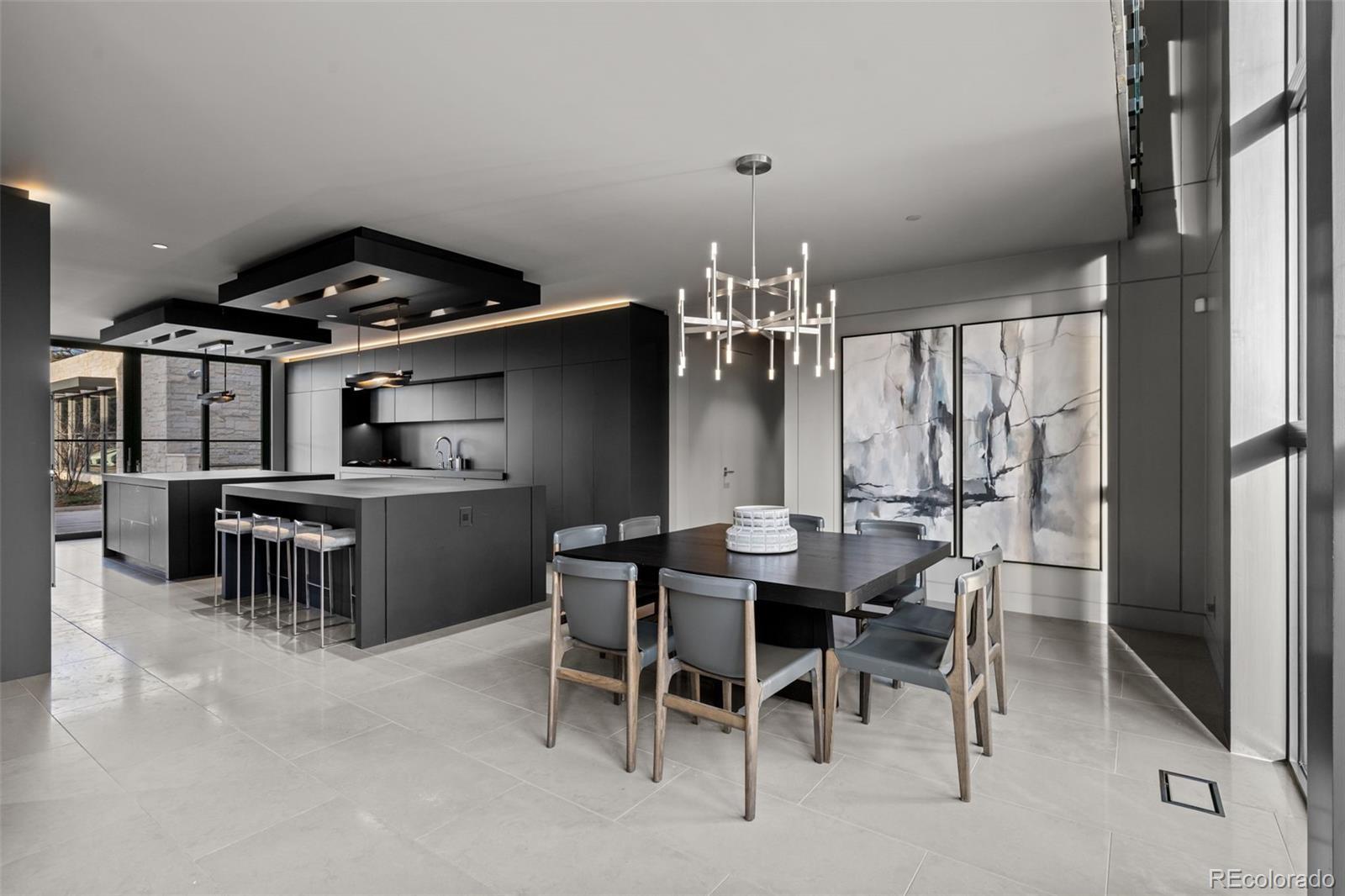 Located in Cherry Hills Village just one mile from Cherry Hills Country Club, this newly completed modern estate sits on 2.5 private acres inside a 24-hour gated and manned community and offers over 13,000 finished square feet of indoor-outdoor living. A 16-foot custom Italian steel entry door opens to soaring 20-foot ceilings, expansive glass, and towering sliding doors that create seamless access to a resort-style travertine pool deck, knife-edge pool and spa, and a fully equipped pool house surrounded by manicured lawn and landscape. Designed for buyers searching for indoor-outdoor living, privacy, and entertaining space, this home delivers a true retreat setting. The main-level primary suite is privately positioned in its own wing and includes a sitting room with fireplace, dual walk-in closets, and a spa-inspired bath with dry sauna and steam shower. A private staircase leads to a secluded second-story office with mountain views and adjacent unfinished space ideal for a boutique closet or additional wellness room. A light-filled exercise studio completes the primary wing. The modern chef’s kitchen features Gaggenau, Wolf, and Dacor appliances plus a full dirty kitchen/prep kitchen designed for effortless entertaining. A main-floor office and a private guest suite with five-piece bath and zero-entry shower offer one-level living for guests. A showpiece 8-car garage with EV chargers includes a full glass wall overlooking the pool deck — a rare feature for collectors and car enthusiasts. Upstairs, accessible by a floating staircase or a private elevator, are three spacious ensuite bedrooms. The lower level includes a theatre room designed for an immersive movie experience. Outdoors, multiple dining, sitting, and soaking areas surround the pool and spa, while the pool house offers a bar and prep space — ideal for buyers searching for a resort-style backyard, outdoor entertaining, and luxury privacy in Cherry Hills Village