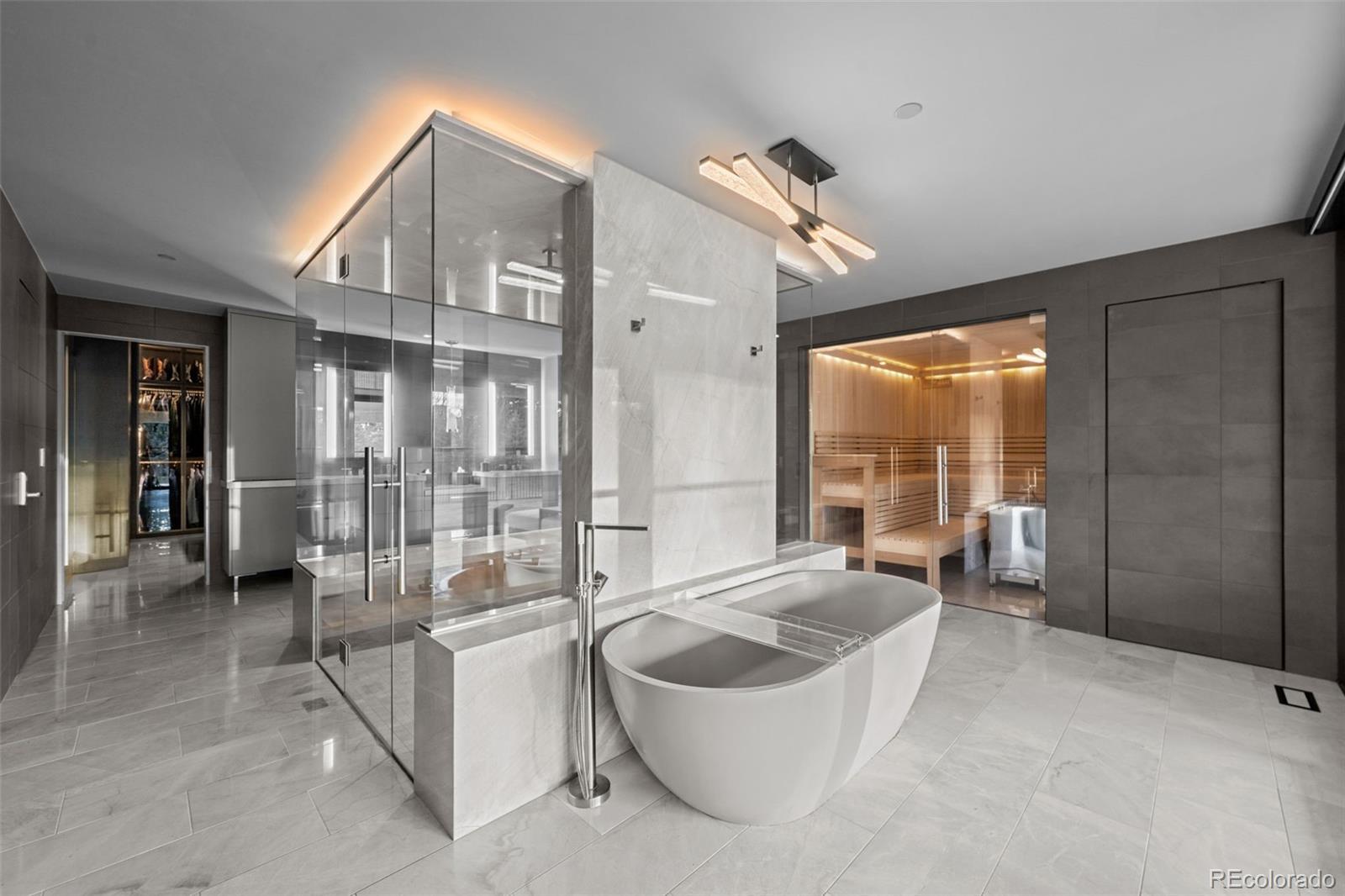 Audio/Video Controls, Eat-in Kitchen, Elevator, Five Piece Bath, High Ceilings, Primary Suite, Sauna, Sound System, Hot Tub, Walk-In Closet(s)