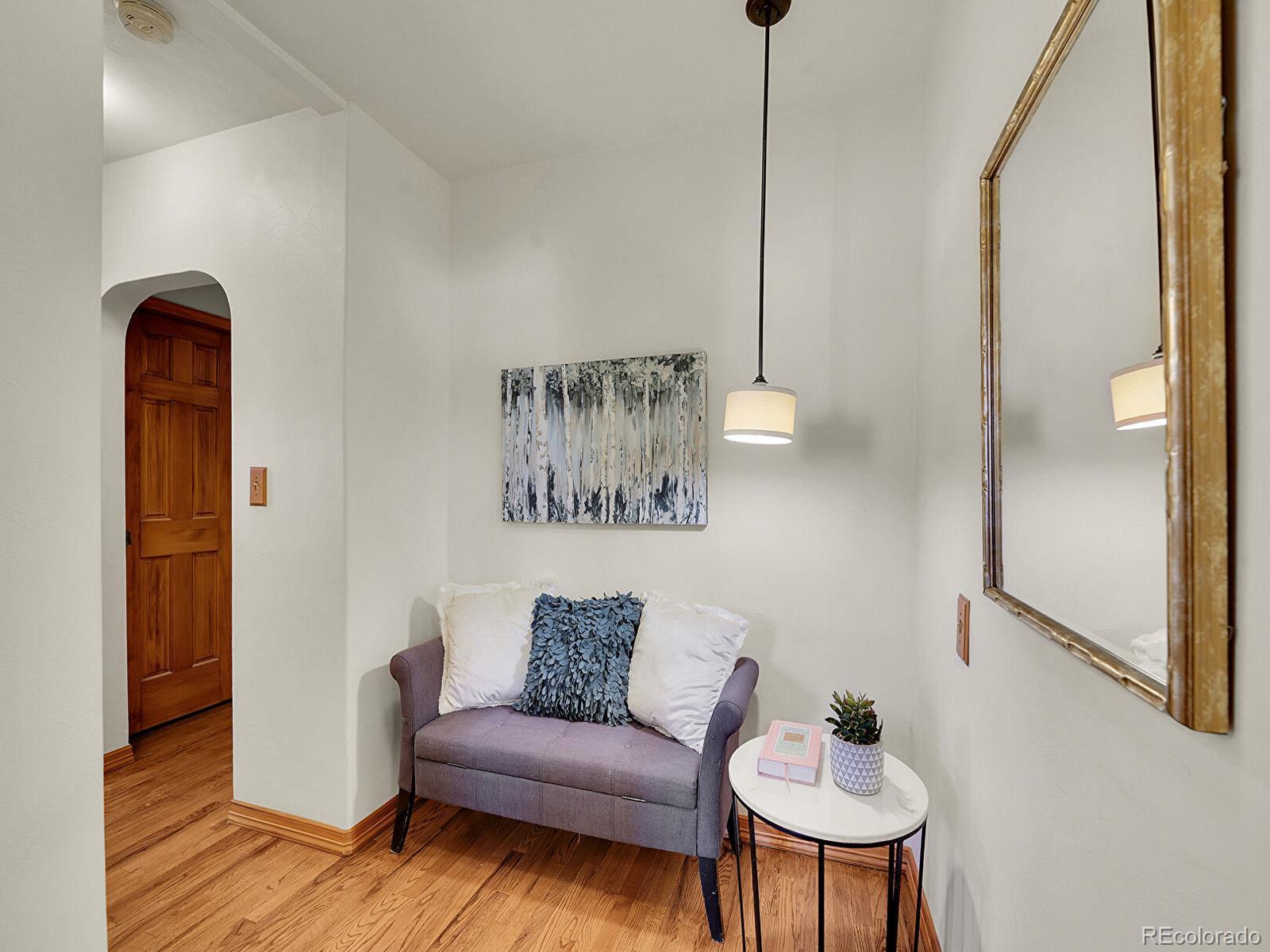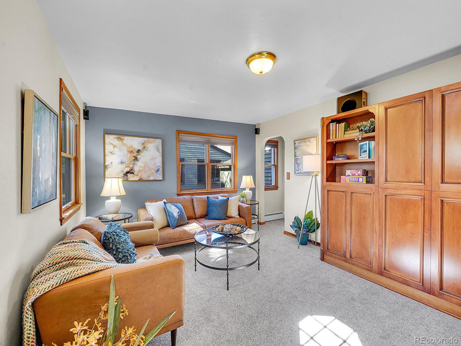 *OPEN HOUSE Sunday, 11/2 12-2* Find yourself immersed in South Broadway living with this soulful 2-bed, 1-bath 1940s bungalow, just minutes from elite local shopping, dining, and entertainment! Inside, arched entryways, refinished hardwoods, and original features bathed in sunlight add a unique charm to main-level living. Enter from the airy sitting room into the dining area, where floor-to-ceiling windows offer views of the front covered patio and flower beds. A hub for late night cocktails or Sunday brunches, the eat-in kitchen features custom cabinetry, sliding doors to the back patio, and bar seating that opens to the dining area. The adjacent living room is designed for game, movie, or charcuterie nights with a warm atmosphere, anchored by built-in cabinetry. Enjoy lazy Saturdays from the comfort of the primary bedroom, offering beautifully refinished recessed built-ins and an oversized walk-in closet. The nearby full bath features both a standing shower and a deep soaking tub. A sitting area leads into the second bedroom, flexible for a guest room, home office, or studio space. The laundry closet hides behind beautiful etched glass and wood doors, while additional closets and a partially finished basement keep storage and utilities out of sight, maintaining the home’s aesthetic. Made for laid-back evenings under string lights or sunny mornings sipping coffee, the spacious backyard boasts an extended patio, mature greenery, lush garden beds, and ample lawn space for Fido to run around. The detached 2-car garage features a workbench and shelving, plus an additional storage shed that keeps outdoor gear organized. Ready to head out? This home is mere minutes from the heart of the neighborhood—catch a show at The Gothic, grab a drink at Brewability or Englewood Grand, sip a Mango Tree latte, or hit the green at Harvard Gulch Golf Course. With lively South Broadway just steps from your front door, this is city living with a neighborhood soul.