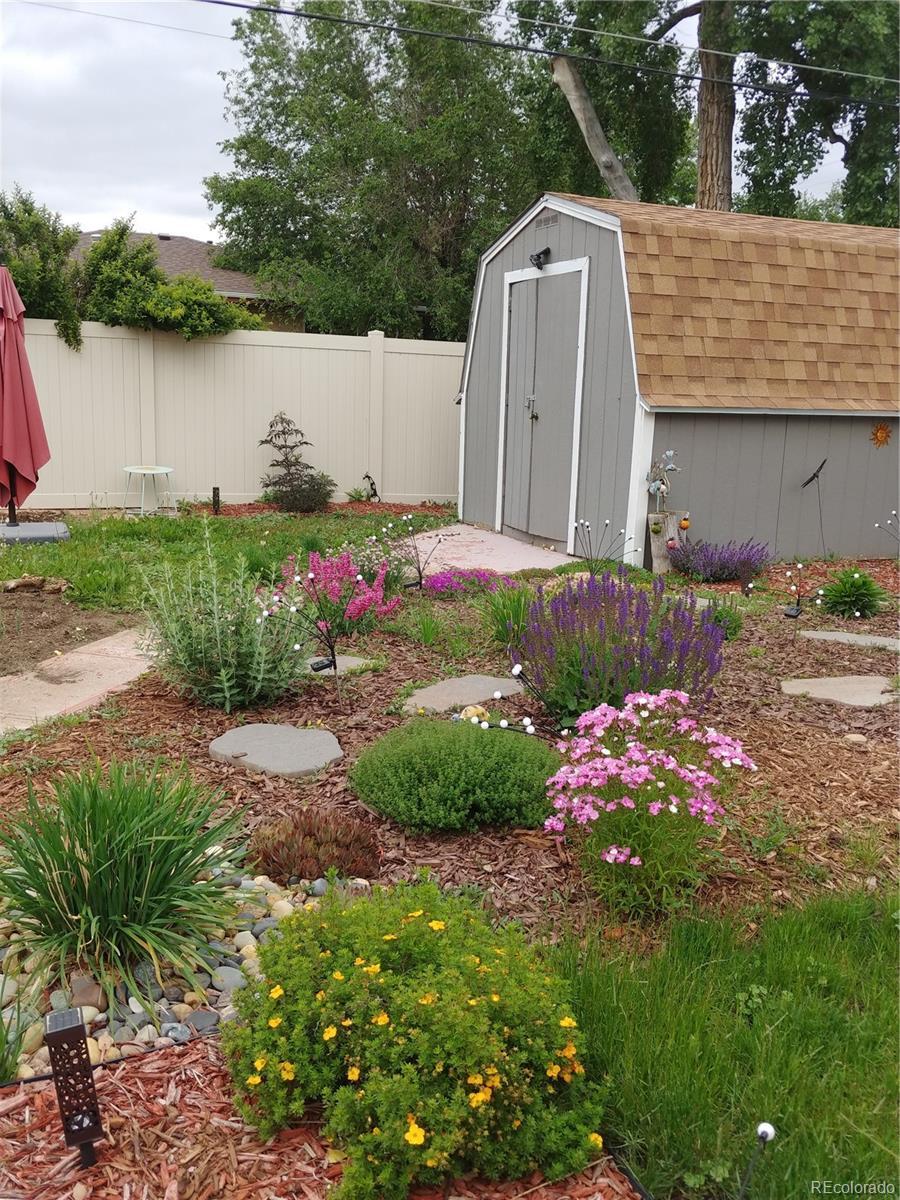 Charming and updated classic Wheat Ridge brick ranch nestled among mature landscaping, offering timeless curb appeal and comfortable single-level living. This well-maintained home features 3 bedrooms and 1.5 baths, with thoughtful updates throughout, such as newer kitchen cabinets and appliances (including the washer/dryer), as well as remodeled bathrooms and updated windows. Enjoy peace of mind with a newer furnace and new water heater, plus a portion of the sewer line already replaced. The attached one-car garage adds everyday convenience. The newly installed vinyl fence creates a private oasis of a backyard—perfect for relaxing, gardening, or entertaining, full of gorgeous perennials and low-maintenance bee-friendly plants. Plus, a large detached shed with electricity for great storage! A solid, move-in-ready home that blends classic character with important modern improvements.