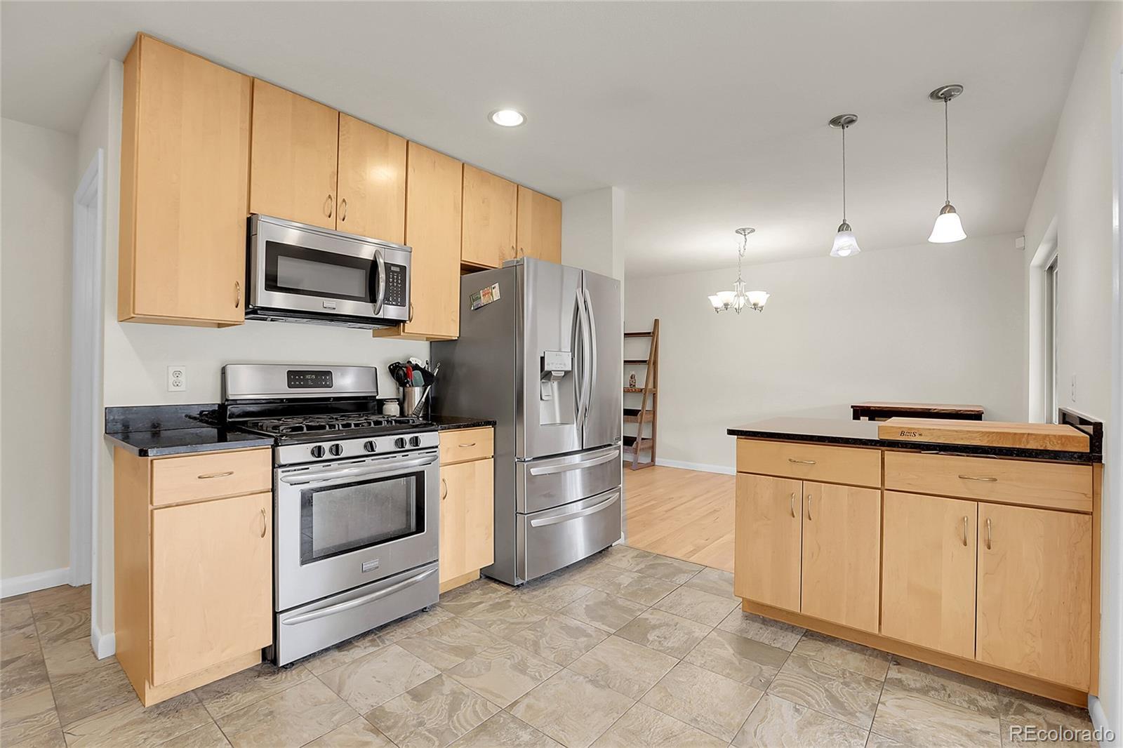This Buyers change of heart is all your gain. Don't miss this Green Mountain Ranch-style home beautifully updated with a rare 2-car garage! Featuring new and fresh hardwood floors, new interior paint and carpet. The updated kitchen is equipped with granite countertops, stainless steel appliances, a gas stove, and a workspace that provides an excellent setting for cooking and entertaining. The primary suite has a private bath and spacious closet. Two additional main level bedrooms share an updated full bath. The fully finished basement offers a versatile space, perfect for guests, with a bar, included refrigerator, and ample storage. The lower level also includes two nice-sized bedrooms and an additional three-quarter updated bathroom. The large laundry room with brand new flooring is equipped with a utility sink and extra abundant storage. Step out onto the covered back patio and fully fenced backyard, perfect for hosting barbecues and gatherings. Enjoy gardening with irrigated raised garden boxes. Nicely landscaped, lush lawn, beautifully maintained. You will find extra outdoor storage in the shed. The attached two car garage is sure to be a joy to find in this Green Mountain neighborhood. Updates include a newer 2019 roof, with a 5-year roof certification, newer hot water heater, central AC, dishwasher, kitchen refrigerator, blinds, garage door springs and an updated electrical panel. This West Lakewood location offers proximity to hiking and biking trails, Red Rocks, and convenient access for commuting to the City or to the mountains. Walking distance to many stores, including Natural Grocers, coffee shops, Ballmer Peak Distillery and the Green Mountain Rec Center.