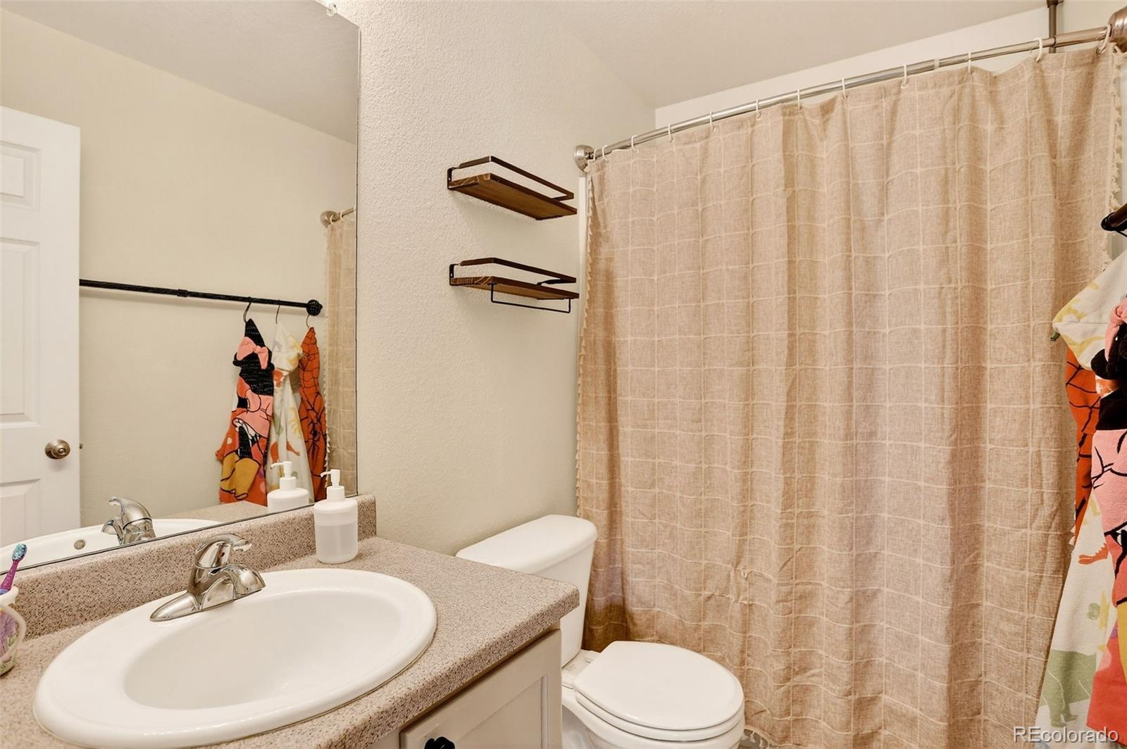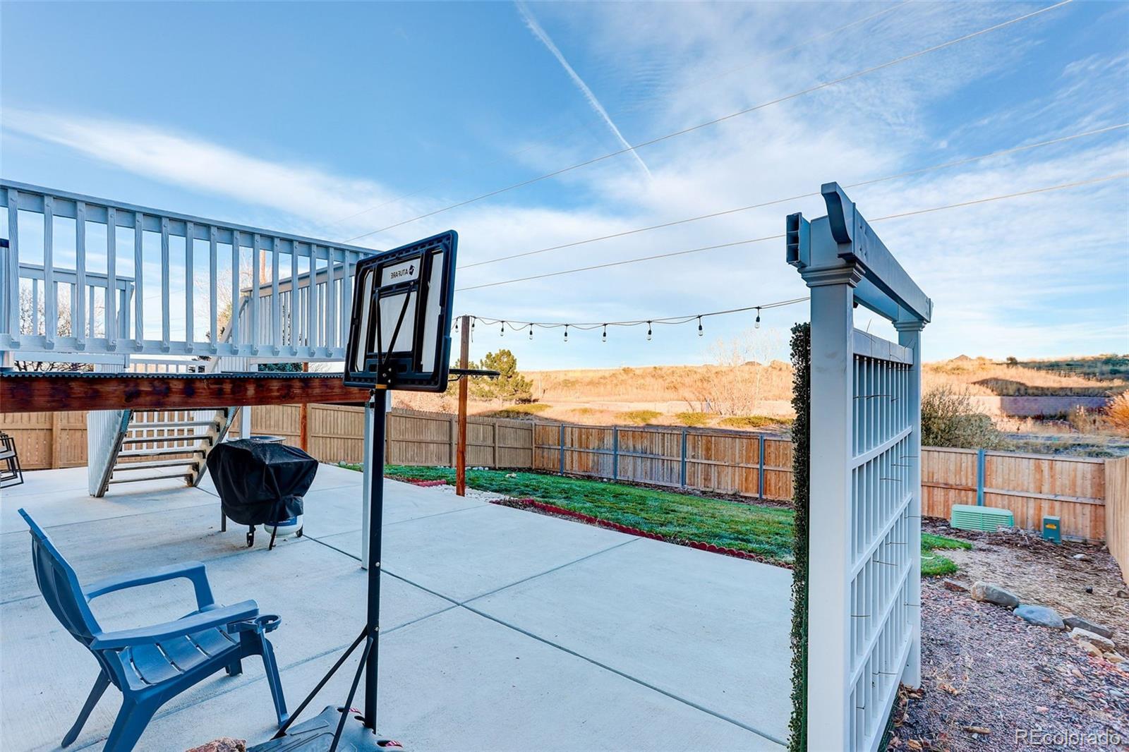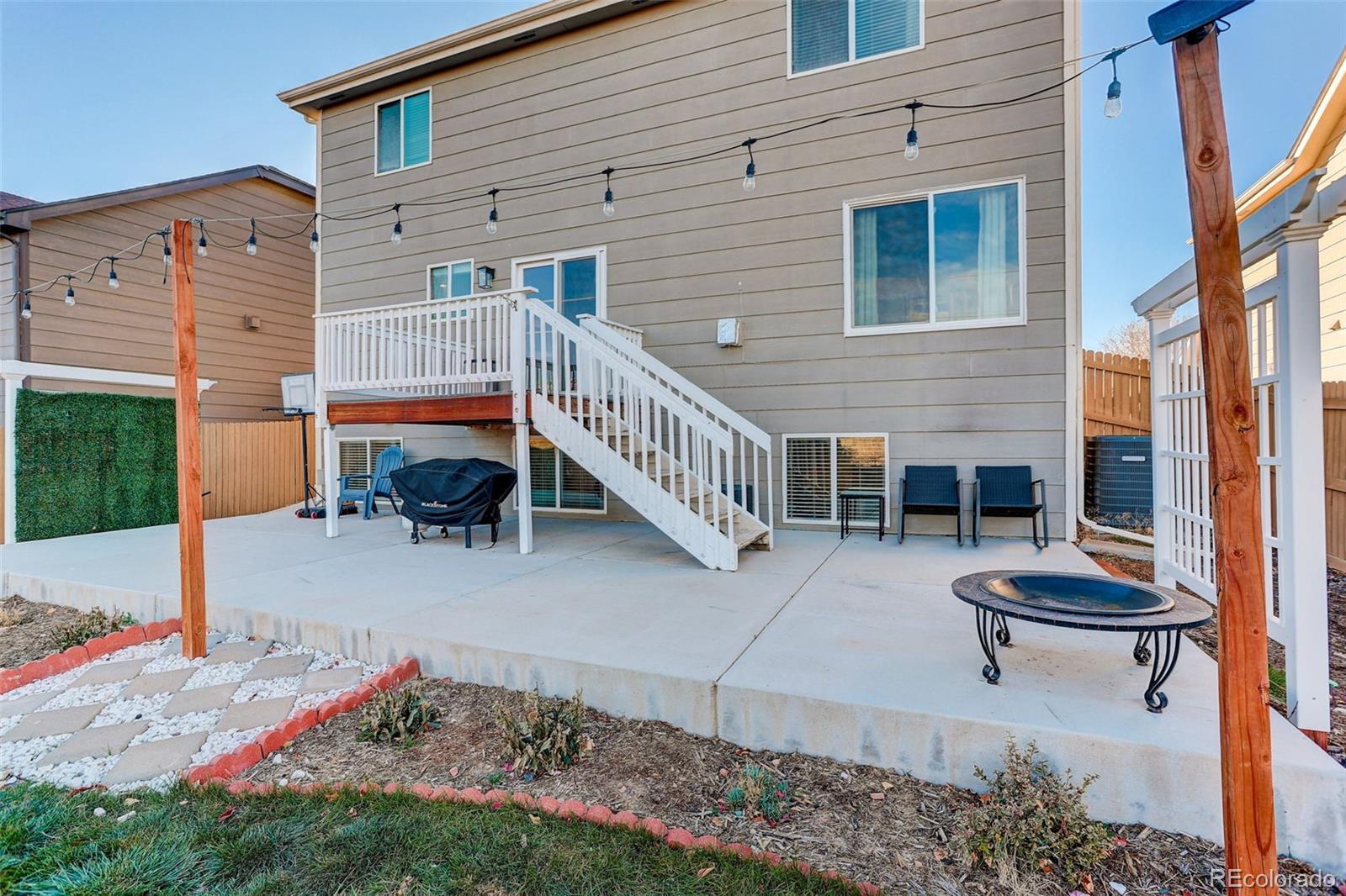 This 2003 Lennar 2-Story home includes 5 beds, 3 1/2 baths, and plenty of upgrades! You’ll enjoy the over 2280+ sq. ft of finished area. With great curb appeal and covered front porch, this beautiful home is ready for you! The large living room includes neutral carpet, gas log fireplace, and ceiling fan. An open dining room boasts ceramic tile floors, updated lighting, and access to the deck. Plenty of natural light! Spacious kitchen has slab granite countertops, beautiful floors, large island with additional seating, stainless steel appliances, and pantry! Plenty of cabinets offer tons of storage! Main level ½ bath offers convenience for guests. Great deck for your outdoor entertaining! An oversized primary bedroom has space for your furniture needs, ceiling fan, and CAT5. The well-appointed primary bath includes tub, dual sink vanity, tile surround, and much more! Additionally, you will find 3 good-sized bedrooms, and full bath on the upper level. The large garden level basement is finished with rec room, 5th bed, and additional 3/4 bath with walk-in shower. Enjoy the abundance of natural light in this well designed basement. There’s no lack of storage in this great home. 2 car garage parking with room for all your toys! Fully fenced! Washer and dryer stay! Beautiful yard! Backs to open space! Minutes to DIA! Central A/C! Cherry Creek schools! Move-in ready!
