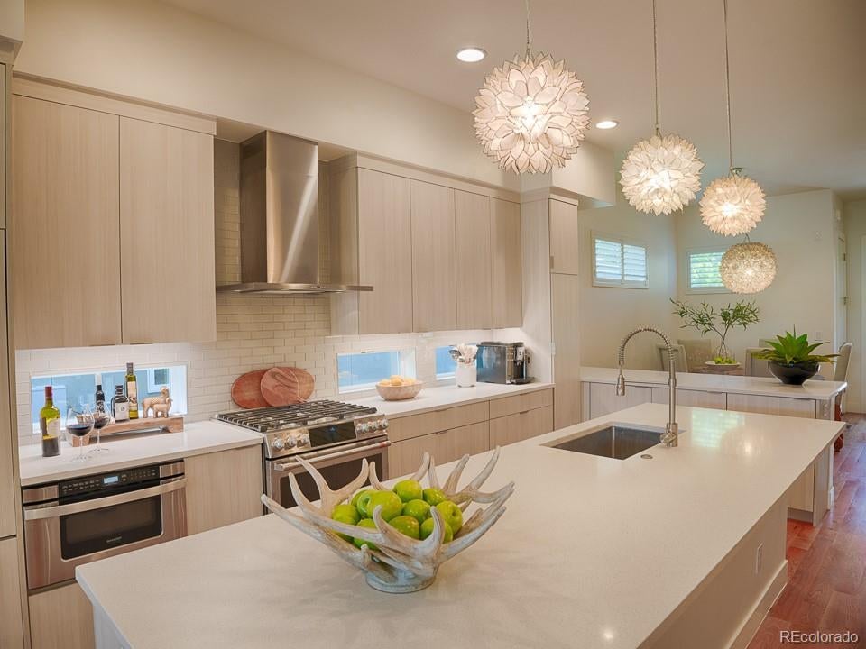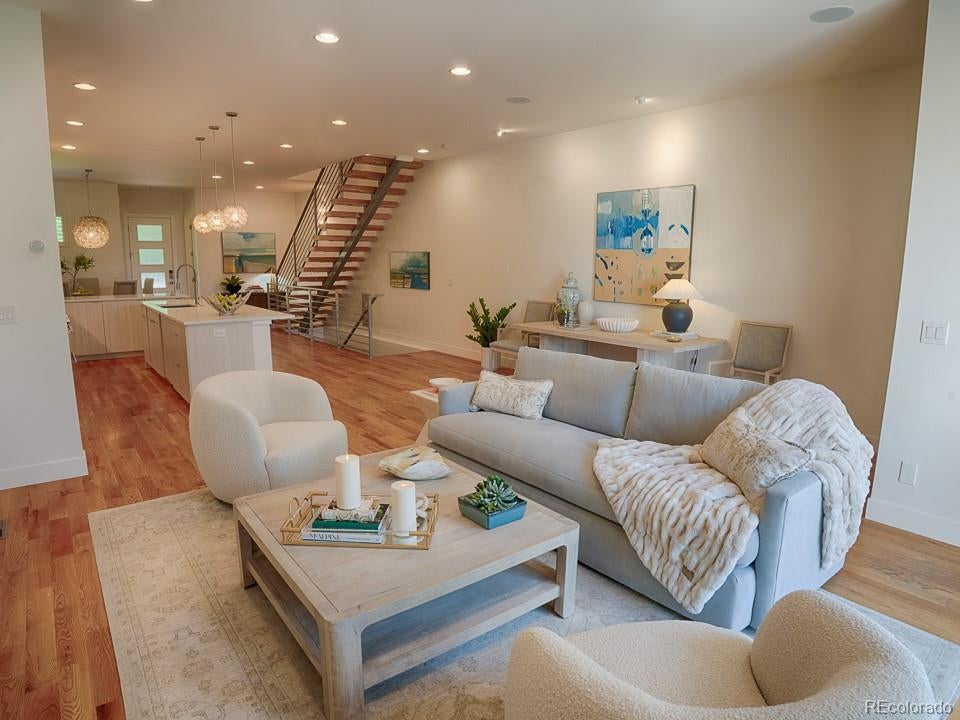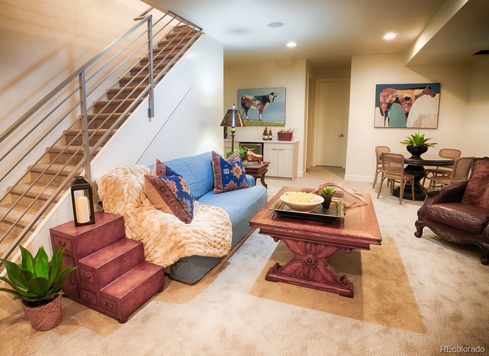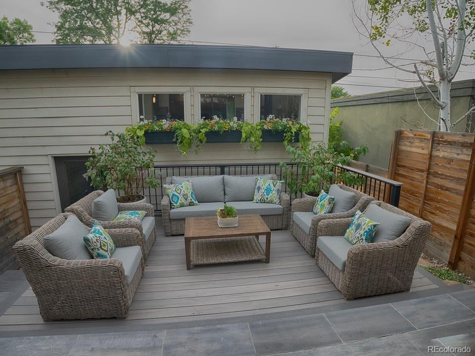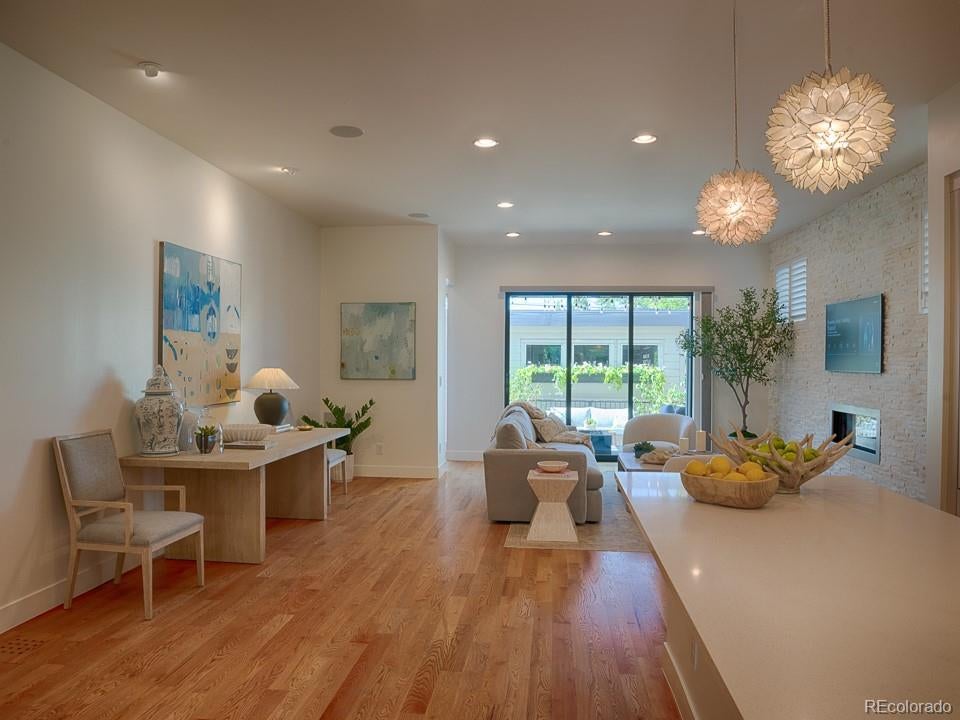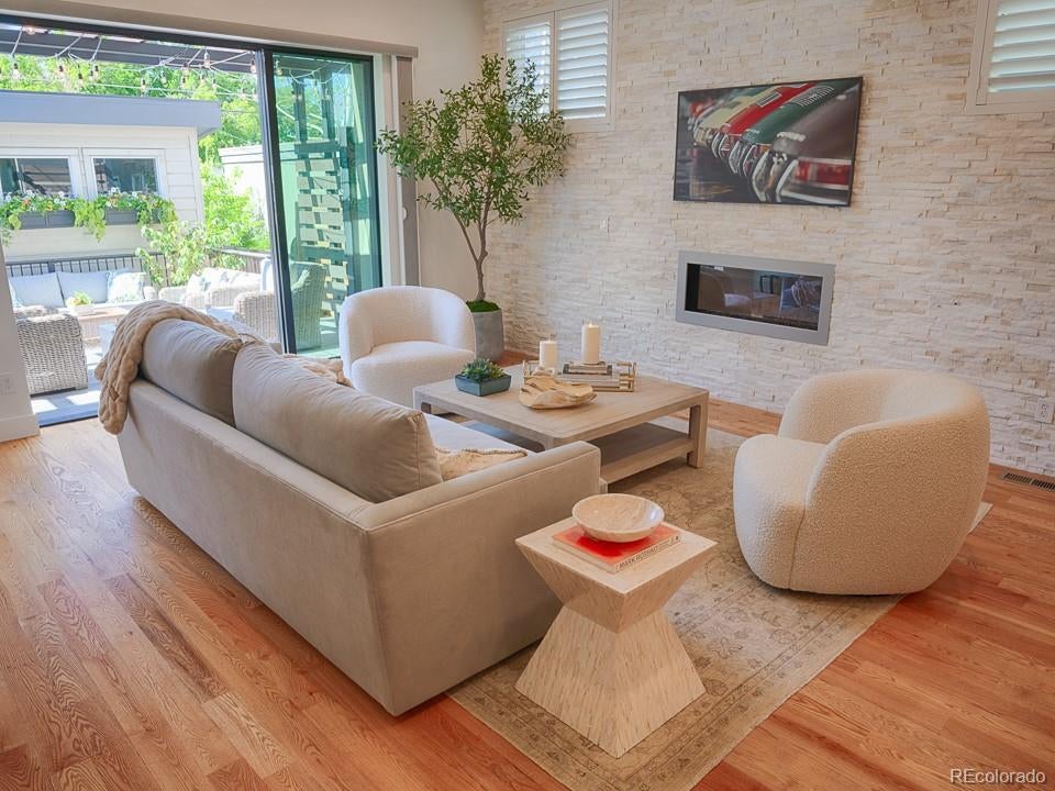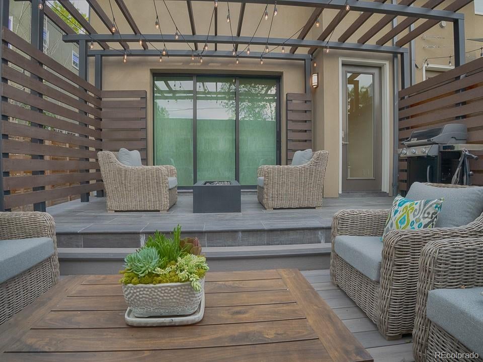 UPDATED PHOTOS AND MEDIA COMING 1/6/2025. Steps from Sloan’s Lake, 1937 Lowell Boulevard delivers refined modern living where clean design meets effortless comfort. Top-notch walkability to restaurants and recreation, stunning views of both the mountains and the Denver cityscape, and high-end finishes throughout, vaults this home to one of the most coveted duplexes in the neighborhood. The open-concept main level centers on a sleek, chef-caliber kitchen with built-in paneled fridge, double oven gas range, paneled Bosch dishwasher and huge center island flowing into a sun-filled living room, anchored by a stacked stone accent wall with linear gas fireplace. A private patio extends the living space outdoors with a contemporary fire pit, ideal for intimate gatherings or quiet evenings. The second floor is highlighted by a generous primary suite featuring a custom walk-in closet and a spa-inspired bath with soaking tub, frameless glass shower, and dual vanities. This level also includes a spacious secondary bedroom, with private en suite bathroom and walk-in closet, and a conveniently placed laundry room. The third floor offers exceptional versatility with a loft-style lounge, wet bar and wine fridge and an adjoining office or bedroom with powder room. Step outside onto the expansive rooftop deck for elevated entertaining, where sweeping views capture Sloan’s Lake, the city skyline, and the Front Range. The lower level is designed for relaxation and hosting guests, featuring a recreation room with a wet bar, wine fridge, and an additional bedroom with walk-in closet and a guest bathroom with an oversized frameless shower. The fully fenced and professionally landscaped front yard and elegant xeriscaped back patio provide ample outdoor living options. Located one block from Sloan’s Lake and minutes from West Colfax and LoHi, this home pairs premier walkability with striking views and contemporary sophistication. A rare gem not to be missed!
