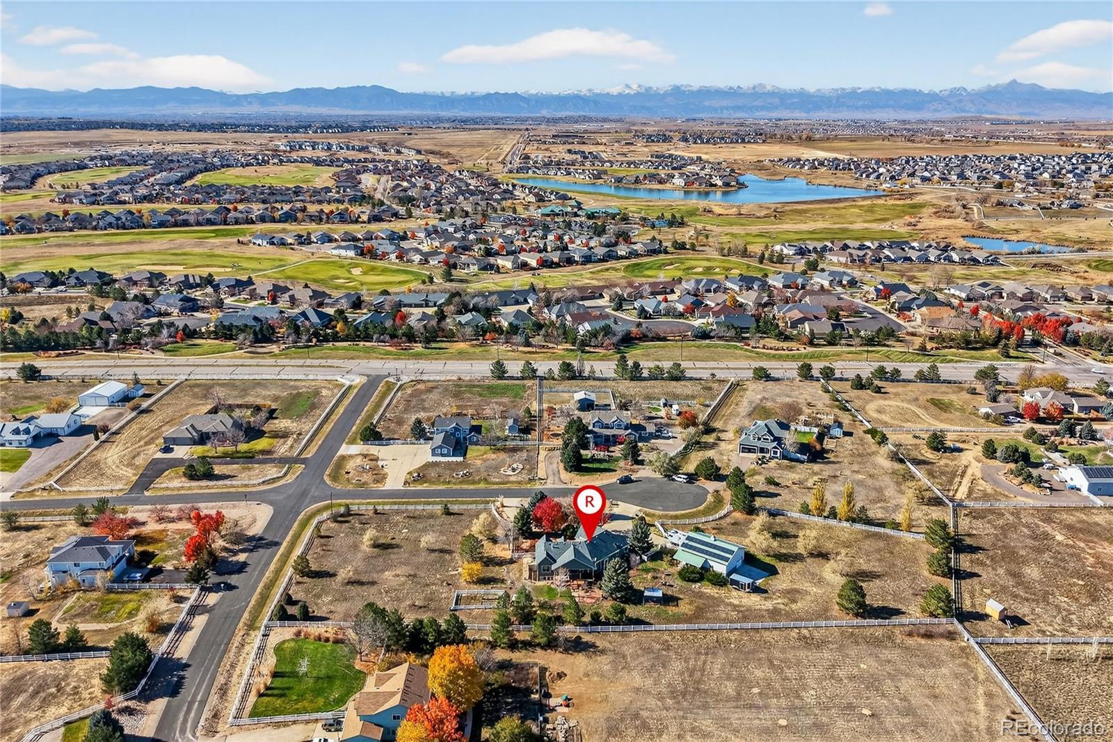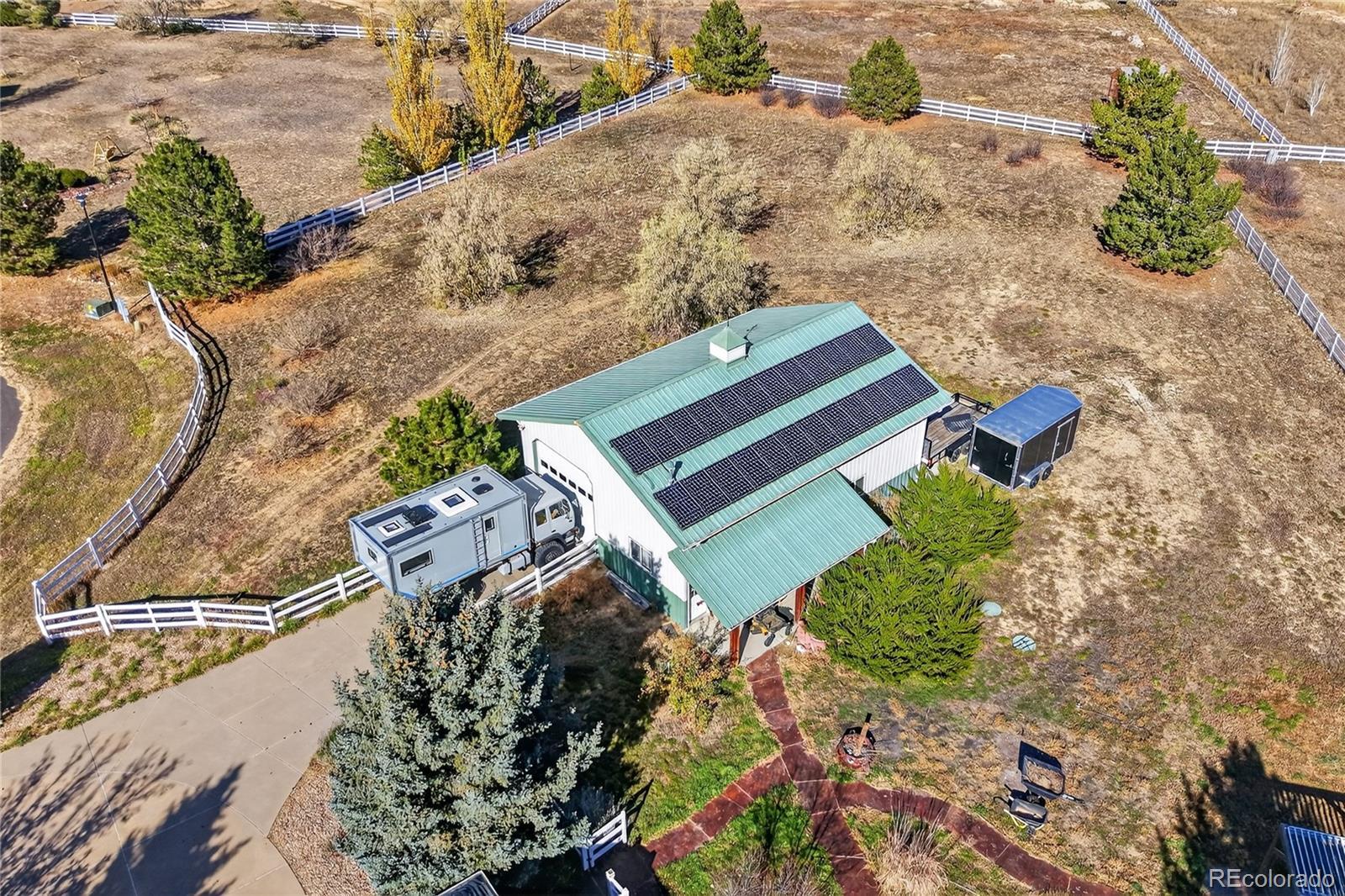 Fully remodeled and perfectly appointed, this stunning custom ranch with impressive detached workshop, delivers the ideal combination of luxury, comfort, and country tranquility—all just minutes from Brighton amenities and major commuter routes. Nestled on over two acres in a quiet cul-de-sac, this home offers an impressive array of upgrades inside and out. The open-concept floor plan showcases beautiful hickory hardwood floors, a chef’s kitchen with granite countertops, custom cabinetry, double ovens, and a breakfast bar. A fully retractable sliding patio door connects the great room to a covered Trex deck with a gas line for grilling, creating effortless indoor-outdoor living. The spacious primary suite is a private retreat featuring heated bathroom floors and dual walk-in closets. Downstairs, the finished basement provides flexible living space—ideal for entertaining, a home office, or multigenerational living—with a large family room, bedroom, and full bath. A car enthusiast's dream, the three-car attached garage complements the 30x40-foot heated and insulated workshop, complete with oversized doors and a private toilet—perfect for storage, hobbies, or small business use. Solar panels in the workshop help keep energy costs low. Thoughtful updates throughout include a newer roof, owned solar system, Lennox furnace, dual hot water heaters, and an AC with heating function. The landscaped yard features a circular drive, irrigated garden beds, mature trees, and zoning for up to two horses. Enjoy the peaceful rural setting while remaining close to conveniences—just 10 minutes to Prairie Center Shopping, 15 minutes to Platte Valley Medical Center, and 25 minutes to downtown Denver, with easy access to I-76, E-470, and Hwy 85. This move-in-ready property offers refined living with room to breathe—an exceptional Brighton retreat with space, style, and substance.
