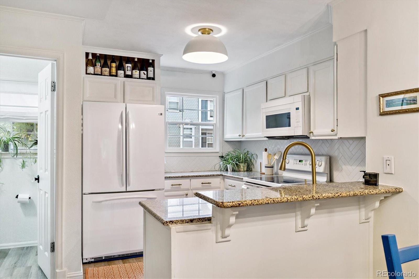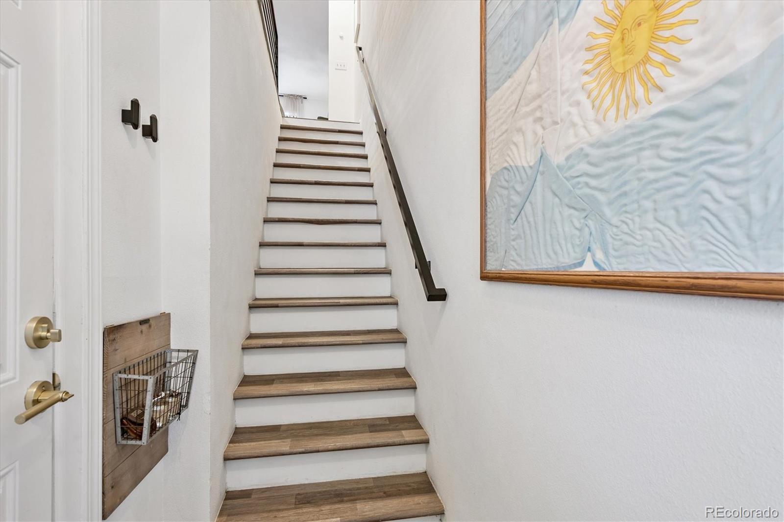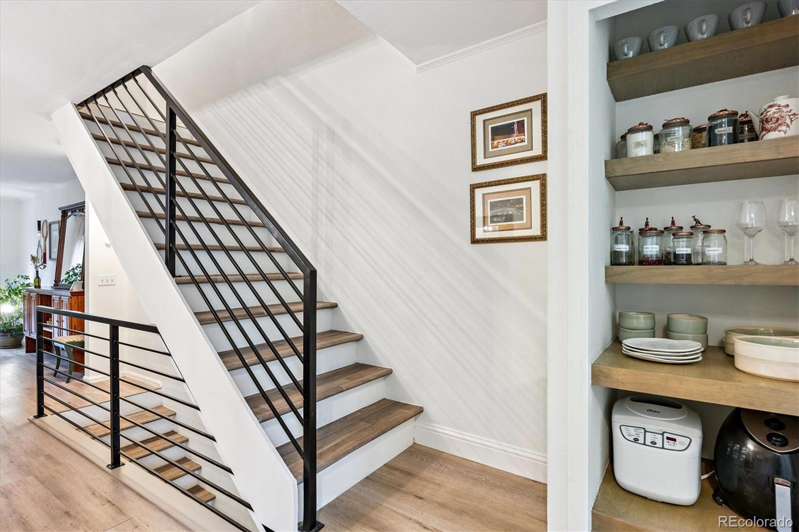 Step into modern elegance with this fully remodeled 2-bedroom, 2-bathroom townhome in the highly sought-after Granville West community. Every detail has been thoughtfully curated to create a stylish, functional, and comfortable home designed for today’s lifestyle. From the moment you enter, you’ll notice the fresh upgrades— sleek flooring flows throughout most of the home, setting the stage for a refined living experience. The kitchen is a showstopper, featuring all-new white appliances, painted cabinets with updated hardware, a designer backsplash, new sink and faucet, a chic West Elm light fixture, and a custom butler’s pantry. The removal of the upper cabinets above the sink opens the space, enhancing sightlines and creating a more open, airy feel. Gather in the inviting living room or enjoy meals in the elegant dining area complete with updated lighting. Both bedrooms feature custom closet systems, offering spacious storage solutions. The upstairs bathroom feels like a private spa, boasting dual rain shower heads, a new vanity, updated faucets and hardware, built-in shelving, and beautiful mirrors. Work or study in style with a built-in desk area in the upstairs hallway. The main-level powder bath has been fully refreshed with a new vanity, mirror, lighting, and fixtures. Behind the one-car garage, discover a flexible bonus space—perfect for a studio, laundry, or extra storage. Exterior space is fantastic too! The balcony on living level provides immediate outside entertaining space. While the small fenced area behind garage is perfect for a small garden. Enjoy year-round comfort with a newer central air conditioner and water heater. Community updates include a new roof, deck repairs, and plans for a full exterior repaint, keeping the neighborhood looking its best. Don't miss your chance to own this beautifully reimagined townhome in a vibrant, well-maintained community—close to parks, trails, and close proximity to both Cherry Creek and DTC access!