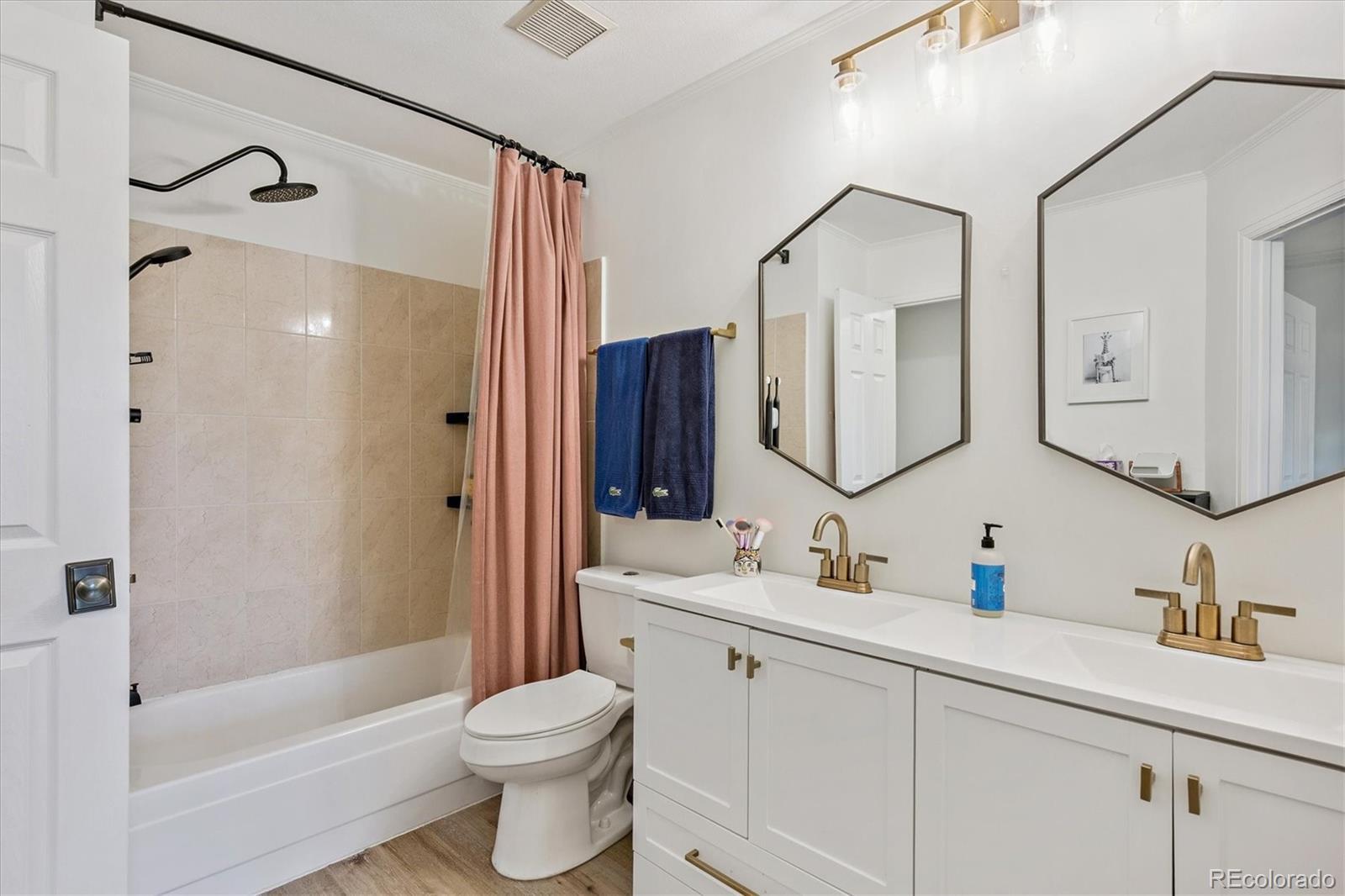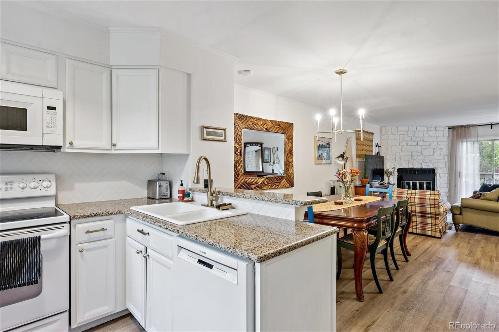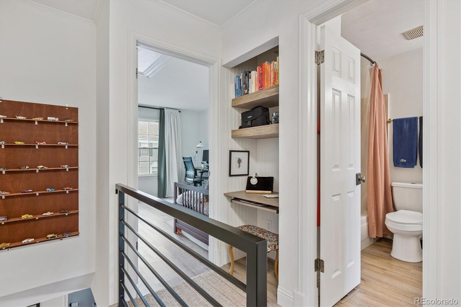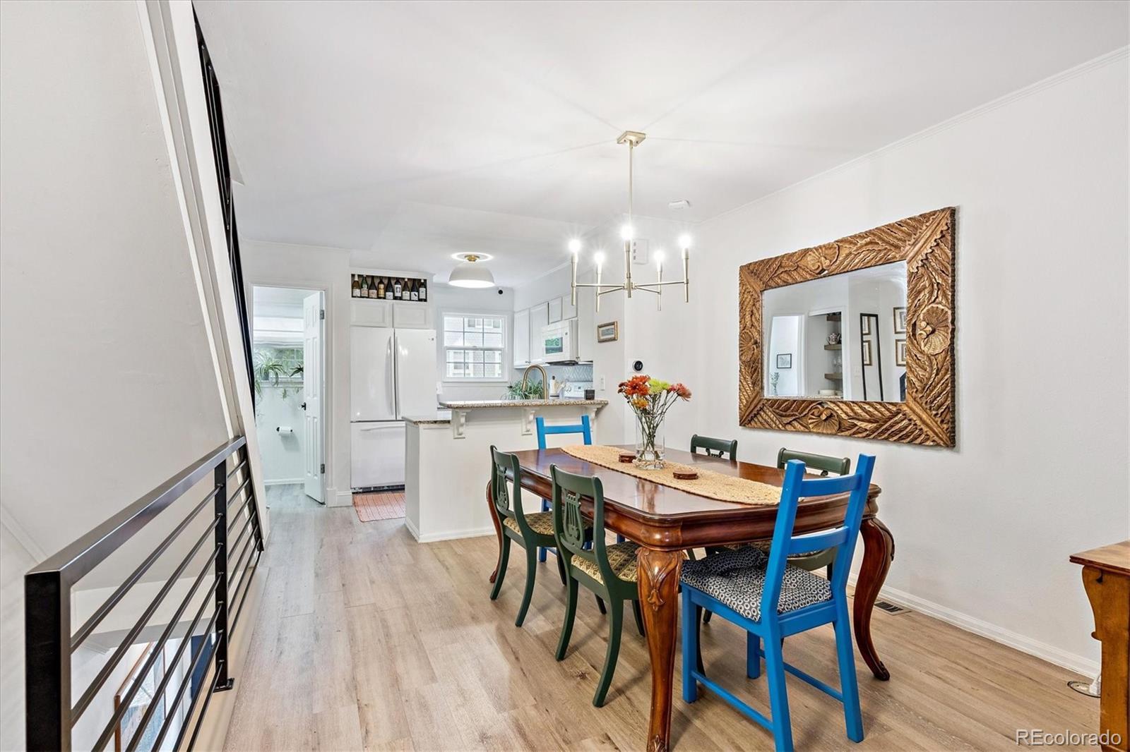 Step into modern elegance with this fully remodeled 2-bedroom, 2-bathroom townhome in the highly sought-after Granville West community. Every detail has been thoughtfully curated to create a stylish, functional, and comfortable home designed for today’s lifestyle. From the moment you enter, you’ll notice the fresh upgrades— sleek flooring flows throughout most of the home, setting the stage for a refined living experience. The kitchen is a showstopper, featuring all-new white appliances, painted cabinets with updated hardware, a designer backsplash, new sink and faucet, a chic West Elm light fixture, and a custom butler’s pantry. The removal of the upper cabinets above the sink opens the space, enhancing sightlines and creating a more open, airy feel. Gather in the inviting living room or enjoy meals in the elegant dining area complete with updated lighting. Both bedrooms feature custom closet systems, offering spacious storage solutions. The upstairs bathroom feels like a private spa, boasting dual rain shower heads, a new vanity, updated faucets and hardware, built-in shelving, and beautiful mirrors. Work or study in style with a built-in desk area in the upstairs hallway. The main-level powder bath has been fully refreshed with a new vanity, mirror, lighting, and fixtures. Behind the one-car garage, discover a flexible bonus space—perfect for a studio, laundry, or extra storage. Exterior space is fantastic too! The balcony on living level provides immediate outside entertaining space. While the small fenced area behind garage is perfect for a small garden. Enjoy year-round comfort with a newer central air conditioner and water heater. Community updates include a new roof, deck repairs, and plans for a full exterior repaint, keeping the neighborhood looking its best. Don't miss your chance to own this beautifully reimagined townhome in a vibrant, well-maintained community—close to parks, trails, and close proximity to both Cherry Creek and DTC access!