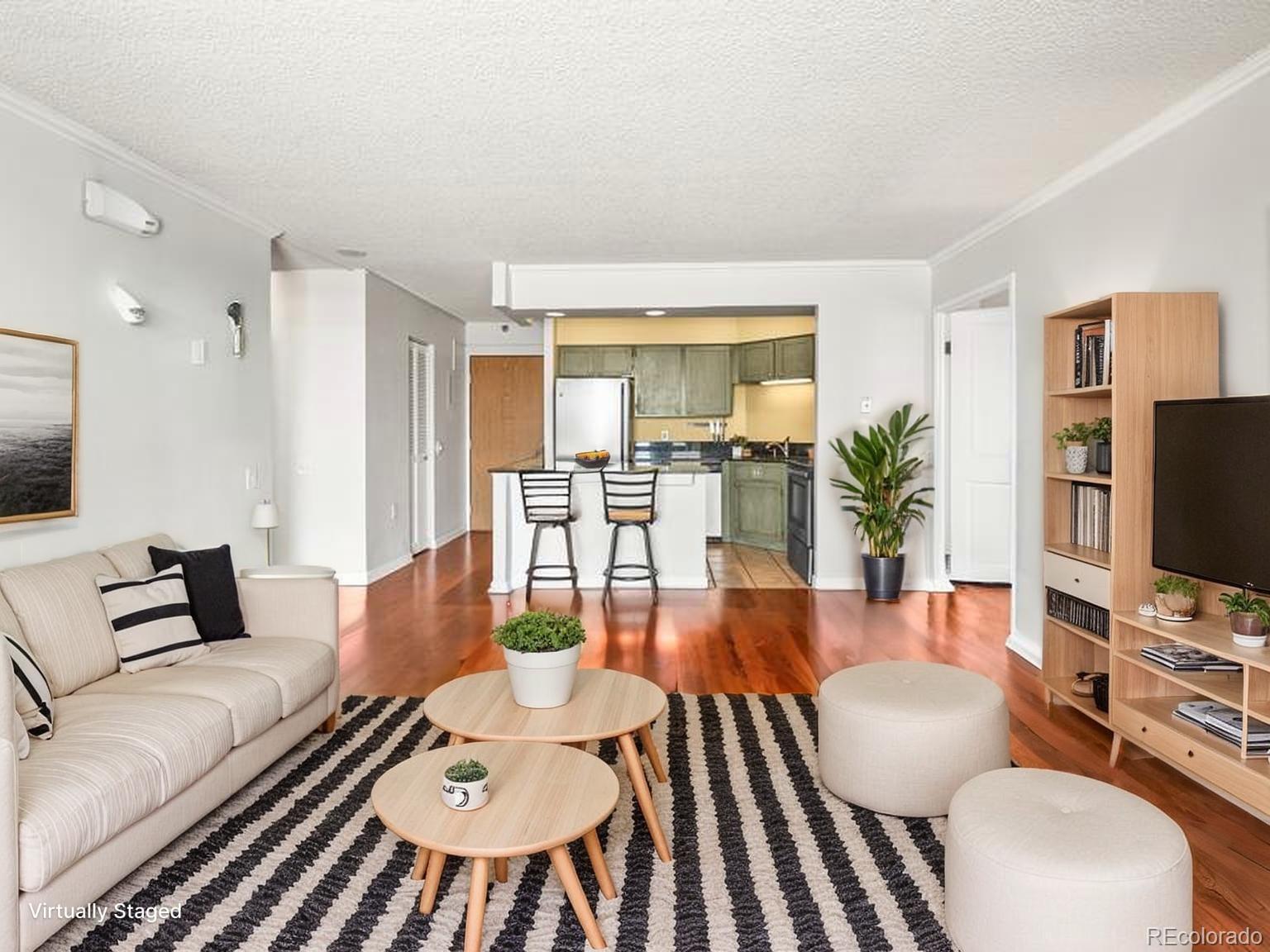 WASHER/DRYER HOOKUPS ARE IN THE PROCESS OF BEING INSTALLED INSIDE OF THE UNIT!! Stunning Downtown Denver Condo with Unobstructed Mountain Views! Experience elevated city living in this beautifully maintained 7th-floor condo located in the heart of Downtown Denver. This 2-bedroom, 2-bathroom home offers 919 SQFT of thoughtfully designed space featuring an open floor plan, tall ceilings, and bright natural light throughout. Enjoy sweeping west-facing mountain views and surrounding cityscapes from your private balcony—perfect for your morning coffee or evening glass of wine. The kitchen boasts granite countertops and easy-care faux wood flooring, while large sliding glass doors fill the living and dining areas with sunlight. Both bedrooms offer generous walk-in closets, and the unit includes abundant in-unit storage plus a dedicated storage locker. Solid building construction ensures a quiet and peaceful living environment. Included are two deeded parking spaces in the community garage. Residents also enjoy resort-style amenities: pool, hot tub, gym, movie theater, fire pits, clubhouse, and more. Buyers have the option to GENERATE EXTRA INCOME by renting out one or both of the deeded parking spaces in the secure, covered garage—current market rates range from $300–$400 per month per space, which can significantly offset the HOA fee. Just steps from grocery stores, top-rated restaurants, boutique shops, and entertainment—this is the ideal urban retreat. Come see it today and fall in love! All information is deemed reliable but not guaranteed, Buyer/Buyer's agent is responsible for verifying all information, including, but not limited to, taxes, measurements, square footage, & schools.