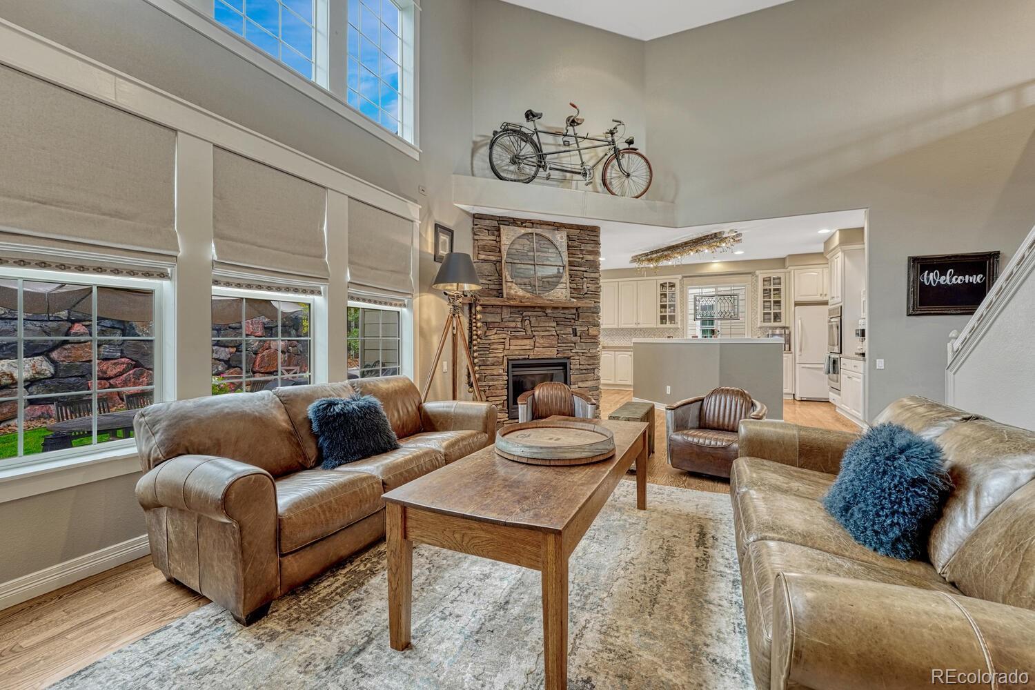 This beautiful home has a MAIN FLOOR PRIMARY BEDROOM with an en suite bathroom and is located on a quiet CUL-DE-SAC in one of Castle Pines North's most desirable neighborhoods! In addition to the primary bedroom, the main floor has a beautifully appointed great room with a fireplace that adds cozy warmth and charm. The spacious eat-in kitchen includes a large walk-in pantry and flows seamlessly to the great room. Also on the main level is a dining room/extra living space and private office. Upstairs, you’ll find three additional bedrooms, two full bathrooms, and a generous loft—perfect for a second living area, playroom, or flex space. Fresh new carpet and pad enhance the office, dining room, bedrooms, stairs and upper level. The partially finished basement offers additional living potential along with abundant storage and a huge, easy to access crawl space. Step outside to your private backyard oasis complete with a hot tub and fire pit - ideal for relaxing or entertaining. A 3-car garage, fully drywalled and insulated, provides even more storage and functionality. This exceptional home is part of an HOA with a pool, tennis courts, pickle ball courts, basketball courts, a club house and is conveniently close to trails, parks, and highly rated schools - welcome home!
