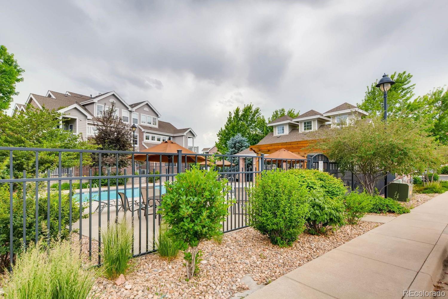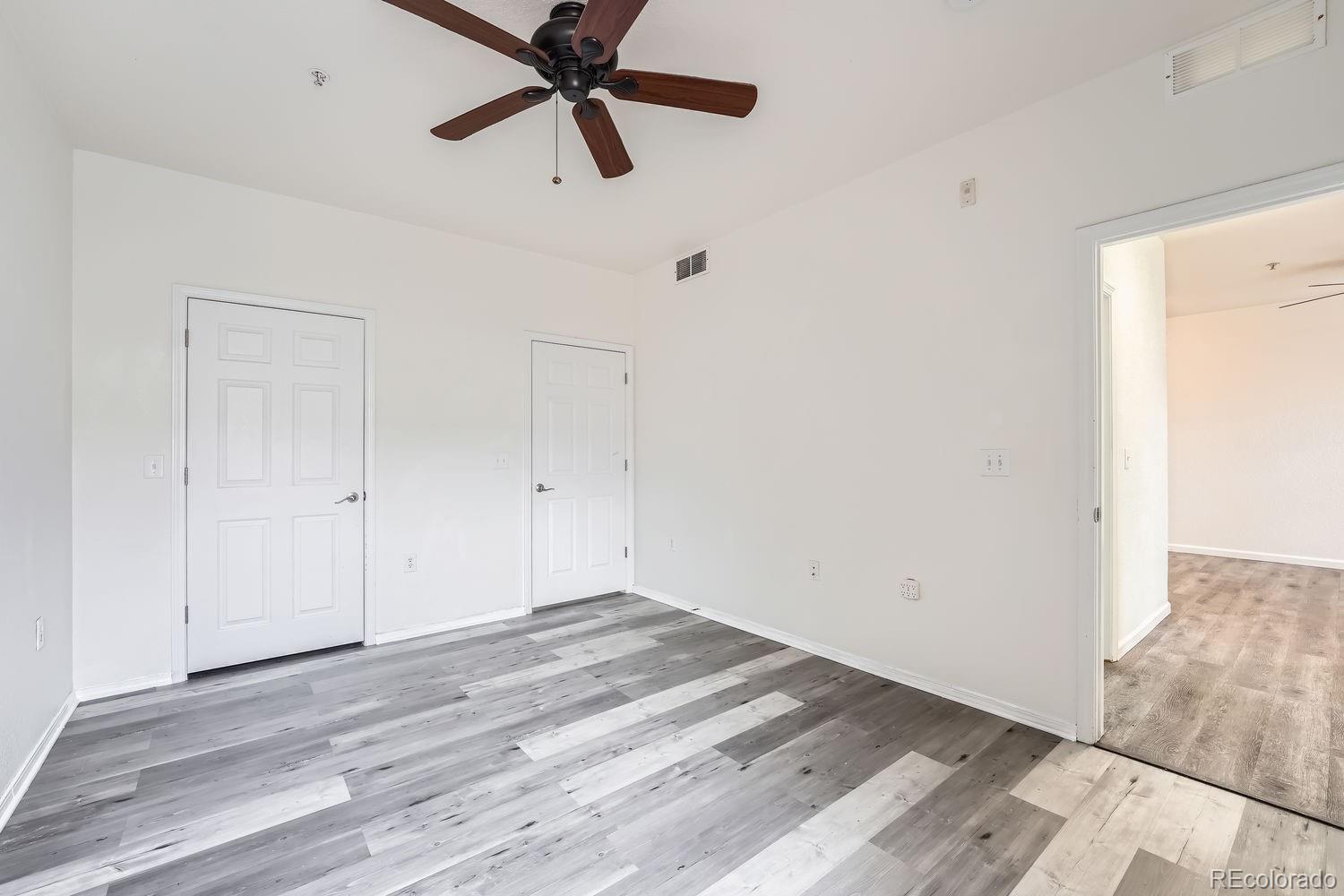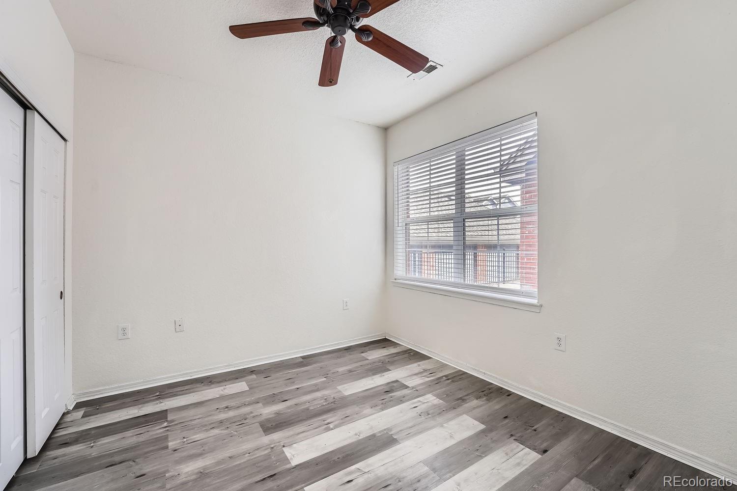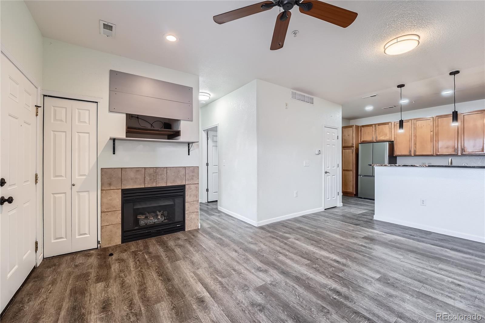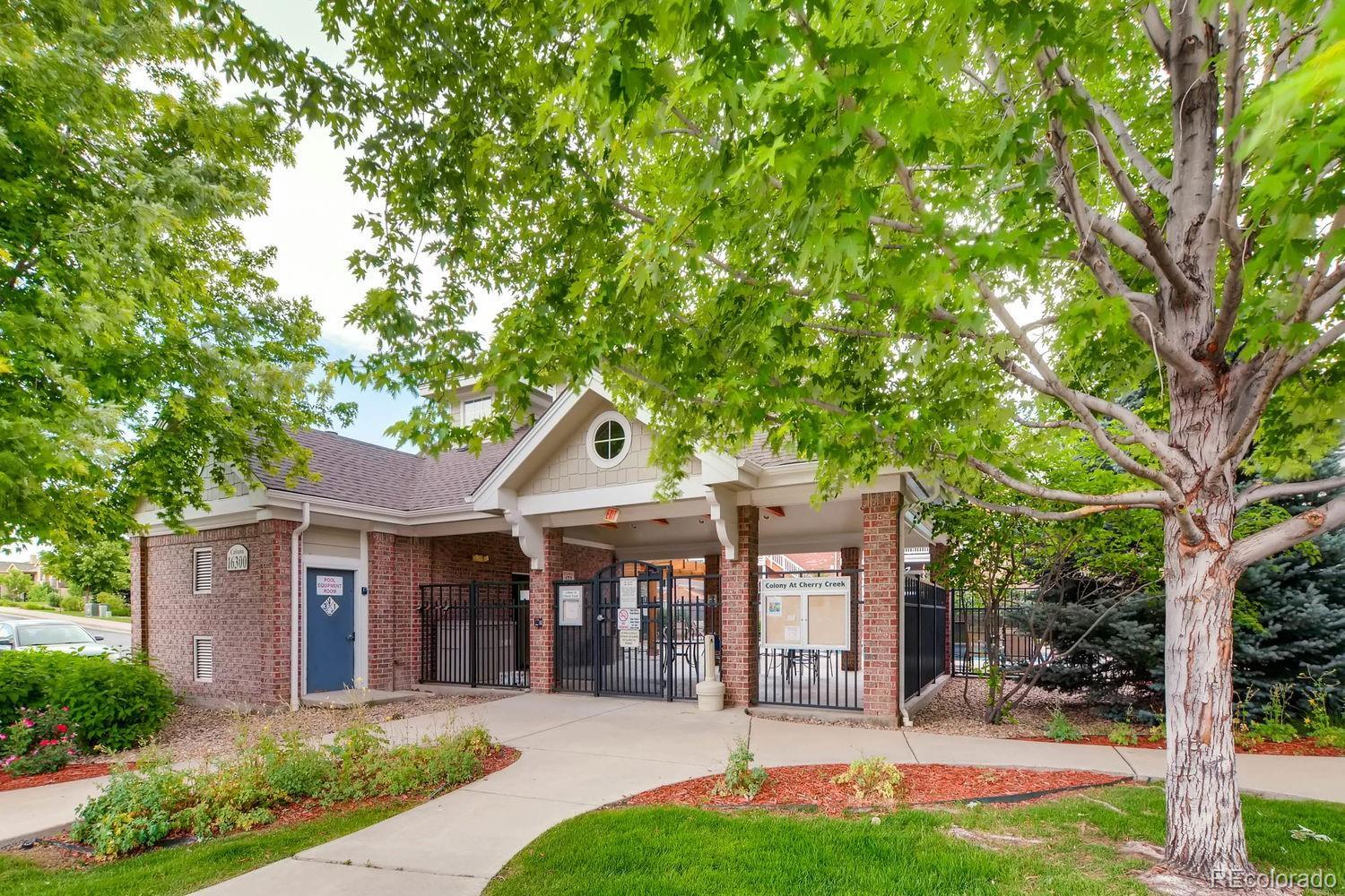 This 2 Bedroom and 2 Full Bathroom condo is perfectly located on the first floor. Enjoy lots of kitchen cabinet storage, beautiful granite countertops and stainless steel appliances. This unit also provides convenient in unit washer and dryer and Luxury Plank flooring throughout the unit. The bar seating counter flows seamlessly into the living room where you can enjoy daily living and a fireplace in the colder months. High ceilings with ceiling fans make the rooms feel airy and cool with the central air in the summer. The large primary bedroom features an ensuite bathroom with granite countertops and a walk in closet. The second bedroom is filled with light and a good size closet. Conveniently located minutes to shopping centers, restaurants and Cherry Creek State Park, also located in the Cherry Creek school district. Easy access to public transportation, major roadways and lots of parks and paved paths for outdoor enjoyment.