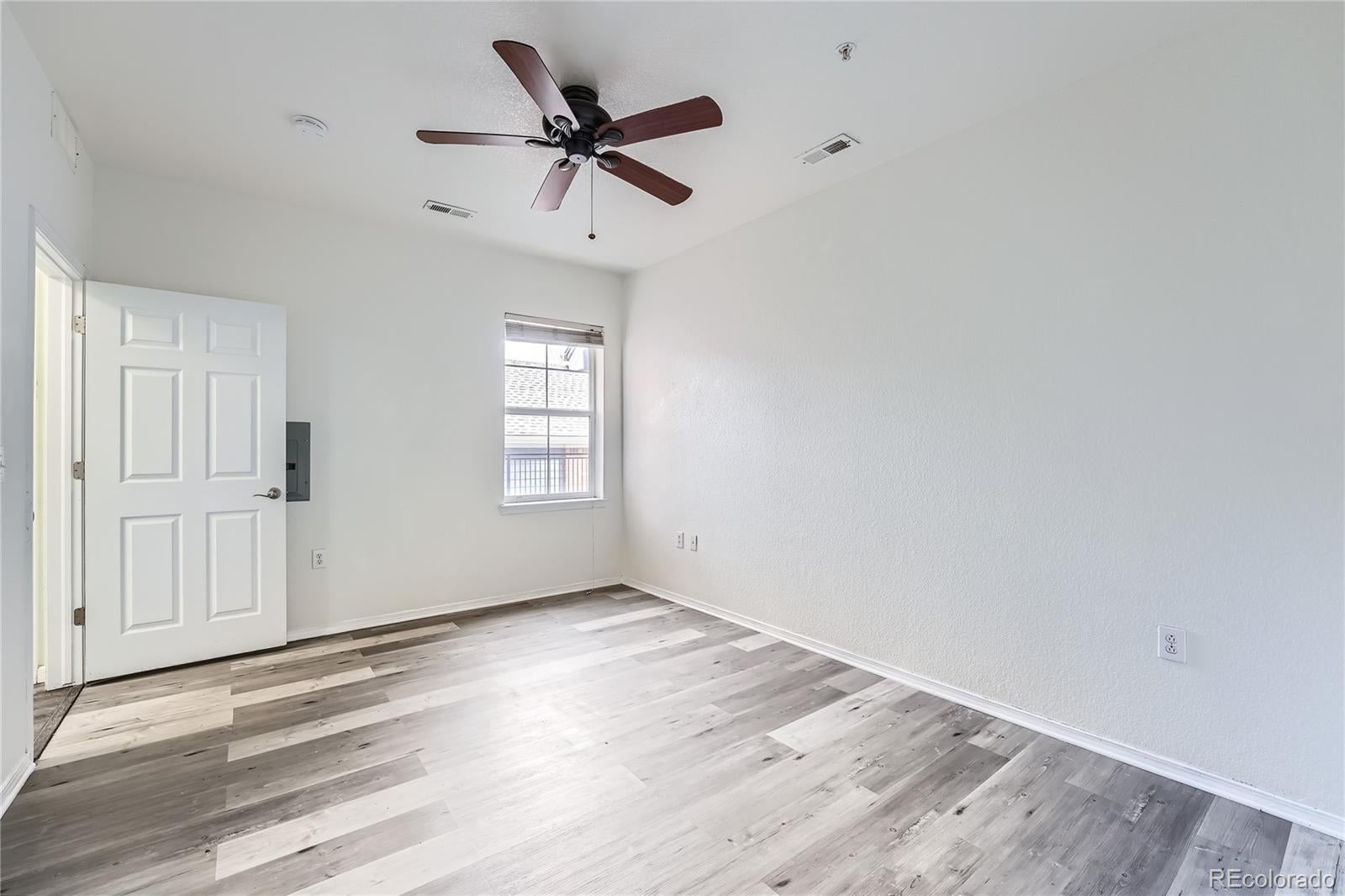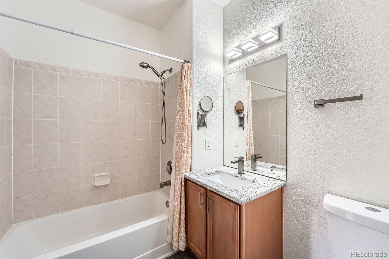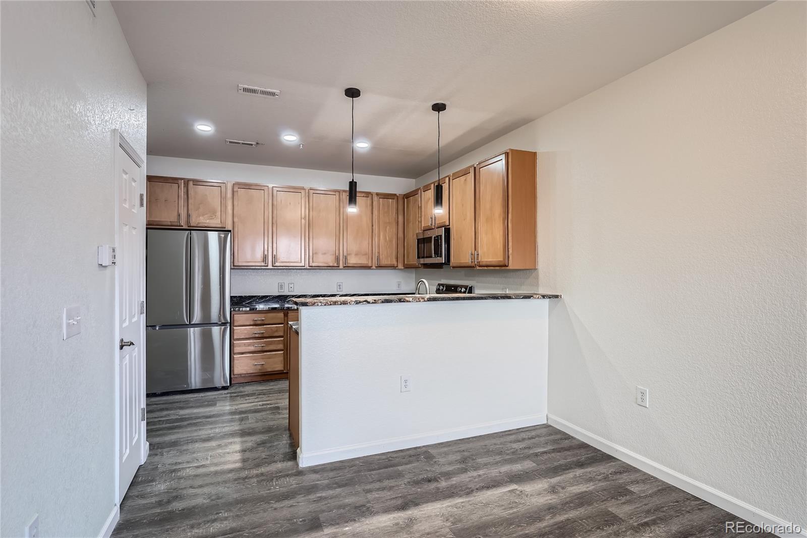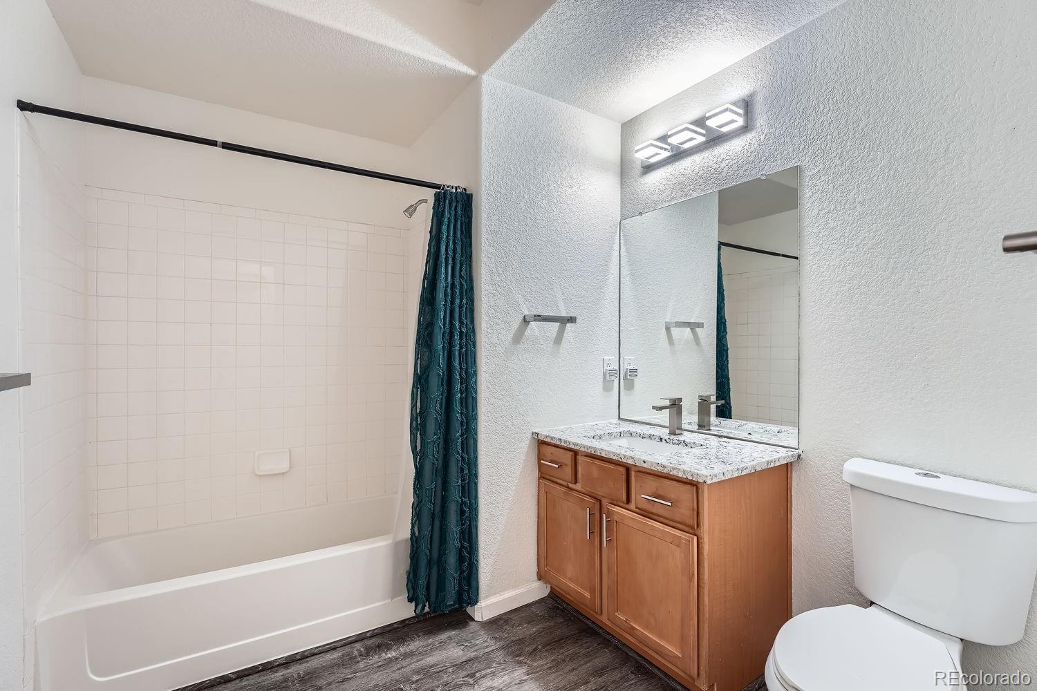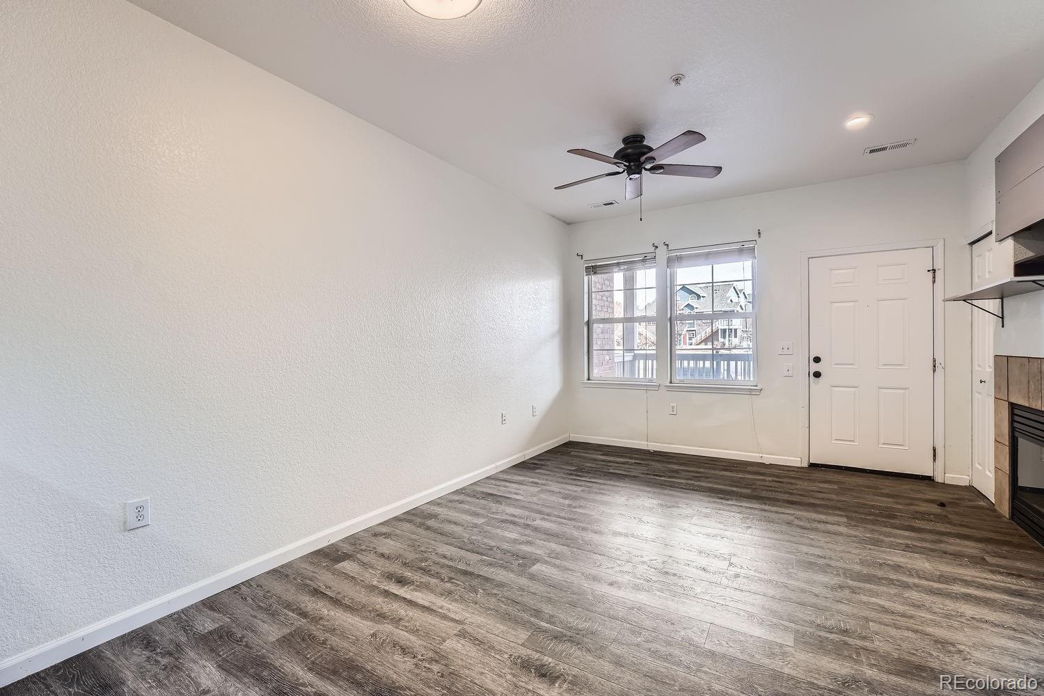 This 2 Bedroom and 2 Full Bathroom condo is perfectly located on the first floor. Enjoy lots of kitchen cabinet storage, beautiful granite countertops and stainless steel appliances. This unit also provides convenient in unit washer and dryer and Luxury Plank flooring throughout the unit. The bar seating counter flows seamlessly into the living room where you can enjoy daily living and a fireplace in the colder months. High ceilings with ceiling fans make the rooms feel airy and cool with the central air in the summer. The large primary bedroom features an ensuite bathroom with granite countertops and a walk in closet. The second bedroom is filled with light and a good size closet. Conveniently located minutes to shopping centers, restaurants and Cherry Creek State Park, also located in the Cherry Creek school district. Easy access to public transportation, major roadways and lots of parks and paved paths for outdoor enjoyment.