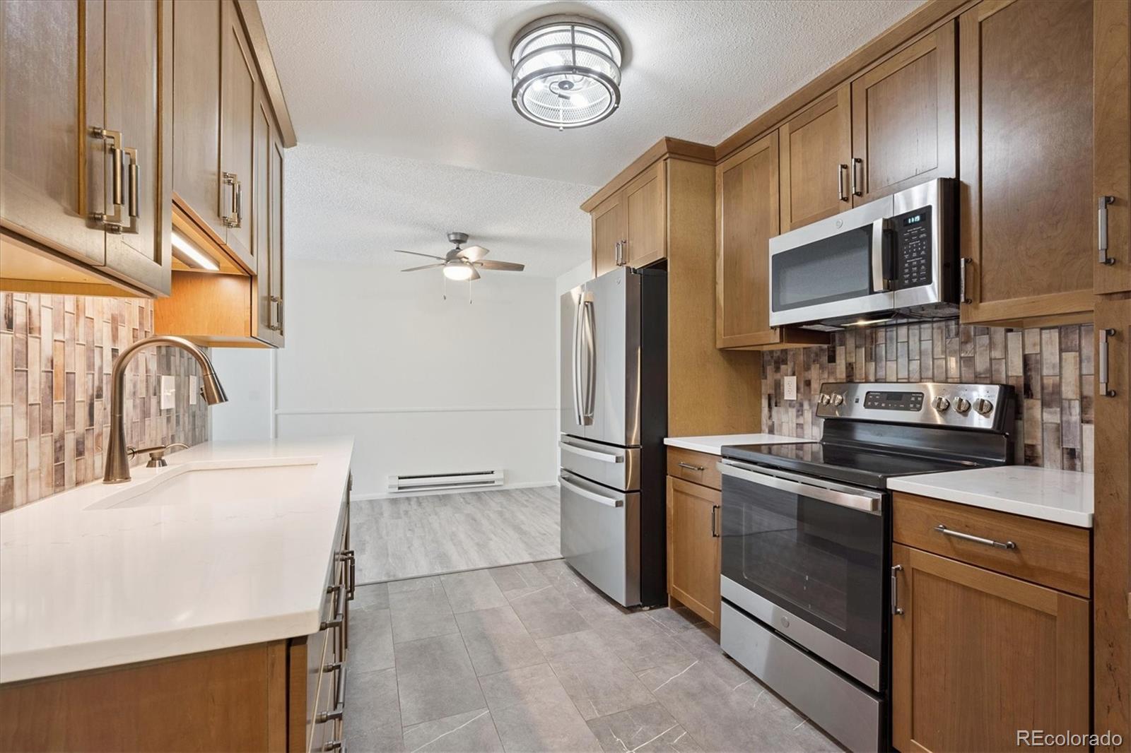 Welcome Home to this Beautifully maintained, truly turnkey townhome—complete with Two Parking Spots, including a reserved space right out front and a 1-Car Garage with built-in Storage Shelving. Step inside to discover a long list of thoughtful updates. Enjoy a new AC wall unit with dehumidifier and supplemental heat, Brand-New Carpet on the upper level and in the finished basement, and New Luxury Vinyl Flooring on the Main Floor. The cozy ambiance is enhanced by an LED fireplace and a wall support ready for your TV mount. The main floor offers a convenient Half Bath remodeled in 2023, and a Tastefully Updated Kitchen (also 2023) featuring Plentiful Cabinetry, Quartz Countertops, a stylish tile backsplash, Cherry Amber Cabinets, and a Full suite of GE Stainless-Steel appliances—all included! Head downstairs to the Finished Basement, a Flexible Space perfect for hobbies, a media/game room, guest area, or additional hangout zone. On the upper level, you'll find Two inviting Bedrooms, including a Spacious Primary Bedroom with a Private Walk-In Closet. A Beautifully Remodeled Full Bath (2021) completes this level. Outside your door, enjoy quick access to recreation and convenience: Trails and nature paths nearby, ½ mile to Jewell Pond, 1 mile to the scenic Kendrick Lake Park, Just ¼ mile to Magill’s World of Ice Cream, 3 miles to Belmar’s shopping, dining & entertainment, 7 miles to Bear Creek Lake Park, 10 miles to Red Rocks Amphitheater…and MORE pleasant surprises waiting to be discovered! Experience the perfect blend of comfort, convenience, and style. Welcome home! ***Be sure to view the Virtual Tour slideshow—plus a full 3D Tour is available!***