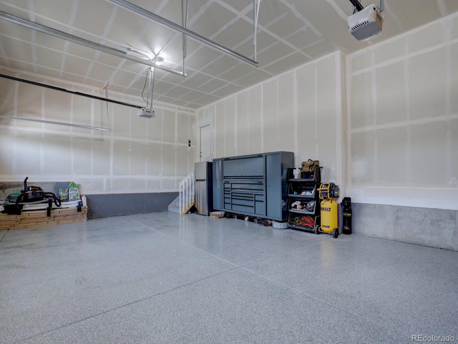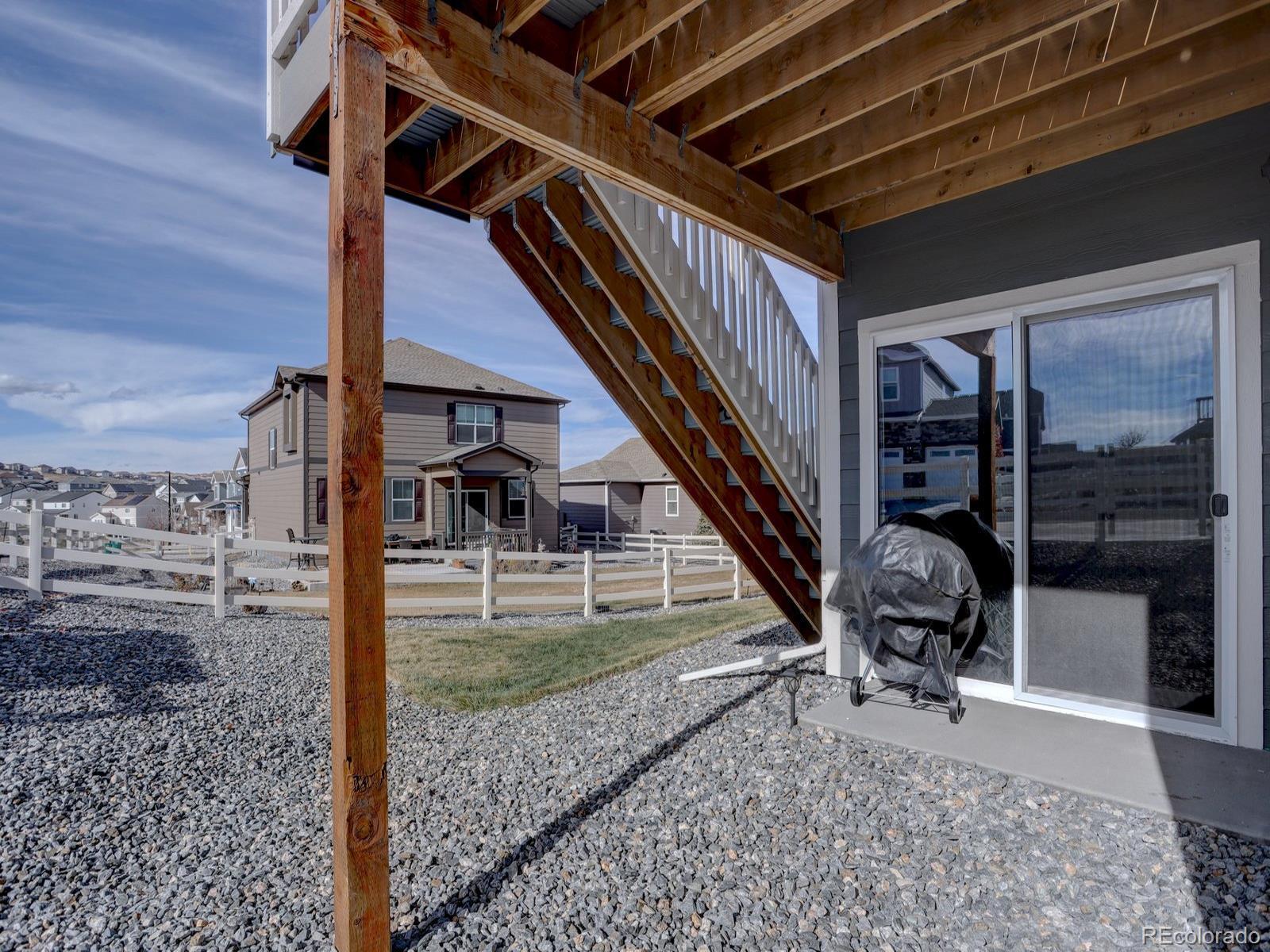 Like-new, move-in-ready 2023 corner-lot ranch on an approx 0.20-acre lot with a more open rear outlook, covered outdoor living, an oversized 3-car epoxy garage, smart-home upgrades, and a full walkout basement. This bright 4 bed / 2 bath home sits on a desirable corner lot. The elevated homesite means the home behind sits lower, so your rear outlook from the dining room and covered back patio is more open and not directly obstructed by a neighboring roofline. Lightly lived in by the original owners, the interior still feels like new. The oversized 3-car garage features a professional polyaspartic (epoxy) floor. Smart conveniences include app-controlled garage, entry, and select lighting, an app-controlled smart curtain on the patio sliding door, and smart dimmers and motion sensors; fan speed is via in-wall/manual controls. Security features include a home security system with two exterior cameras, a video doorbell, and door/window/patio sensors. Built in 2023 to modern energy codes, with an efficiency-minded design and a tankless water heater to help reduce heating and cooling costs and keep utility bills down. Full, unfinished walkout basement ready to finish to your needs—rec room, additional bedrooms, gym, or multigenerational space. Outdoors: covered front porch and covered back patio. The low-maintenance backyard with rock, natural grass, and irrigation is a clean slate for your landscaping ideas. The southeast-facing driveway gets great sun exposure, helping snow melt faster in winter. Inclusions: gas range/oven, built-in microwave, dishwasher; GE washer/dryer combo negotiable. Community amenities include a pool and fitness center, nearby parks and trails, and convenient access around Castle Rock. Area improvements include a planned Costco and a new I-25 interchange intended to enhance access; timelines subject to municipal/agency schedules. Close to historic downtown dining/shopping and the seasonal farmers market.