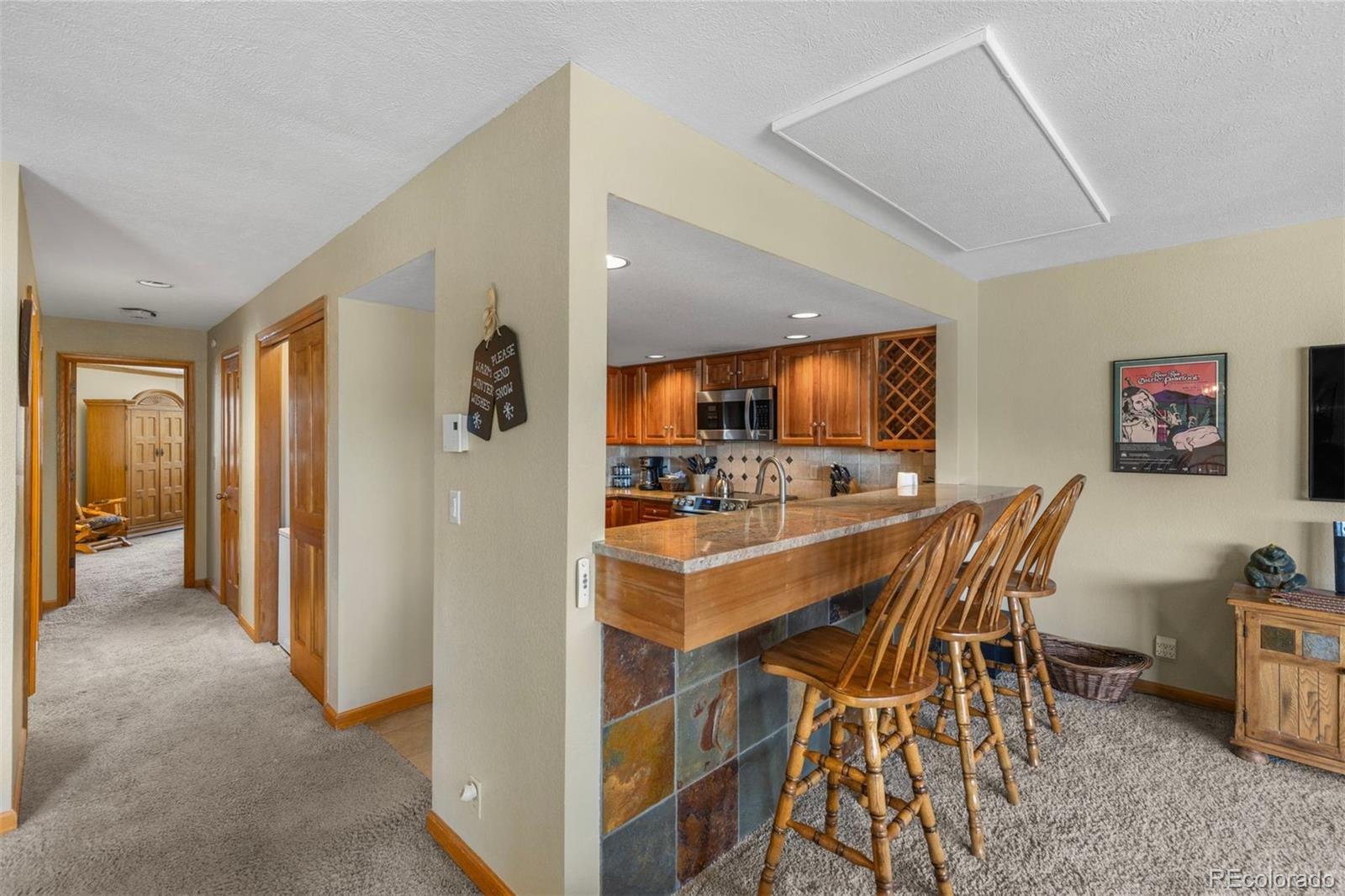 Walk to the slopes! Rare opportunity to own a coveted Frostfire condo. This cozy 2 bed, 2 bath Keystone condo, just steps from Mountain House and the Peru ski lift! Enjoy expansive and serene views of the ski slopes, Snake River and wetlands from your balcony. Drop a line in the water and wait for the trout to rise. Bike path out your back door with access to the whole Keystone Valley. An updated kitchen and an easy oversized layout set this unit apart. Frostfire provides the ideal location for all Keystone activities and amenities including short-term rentals.