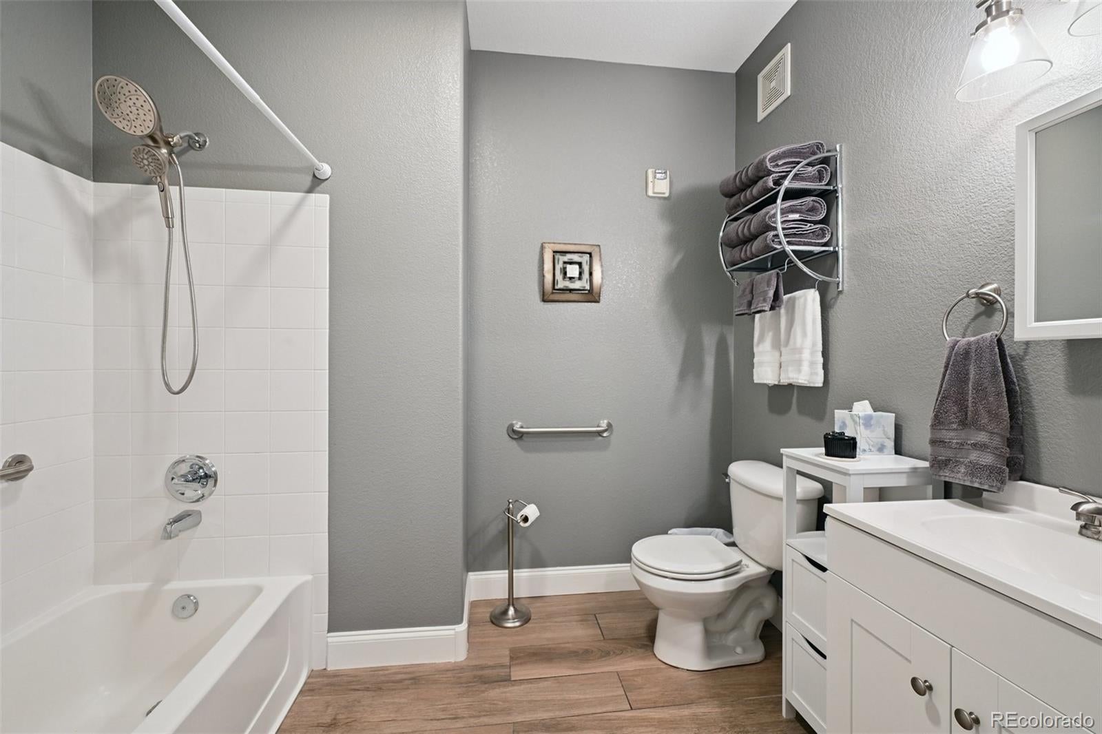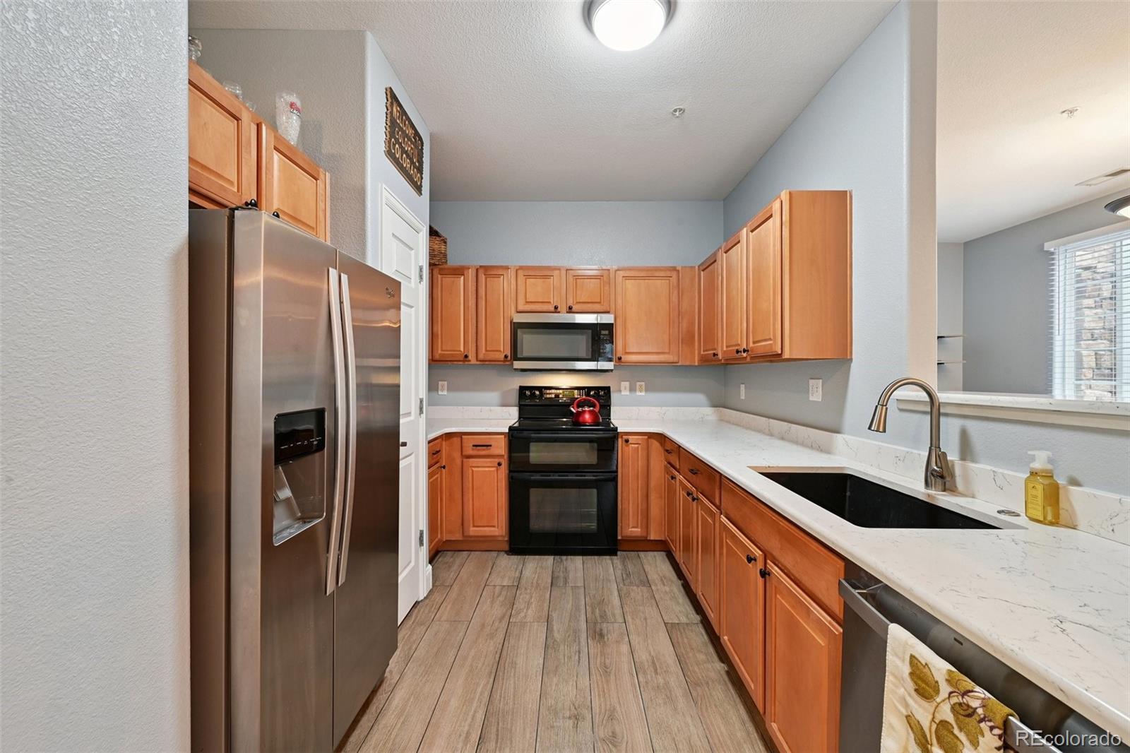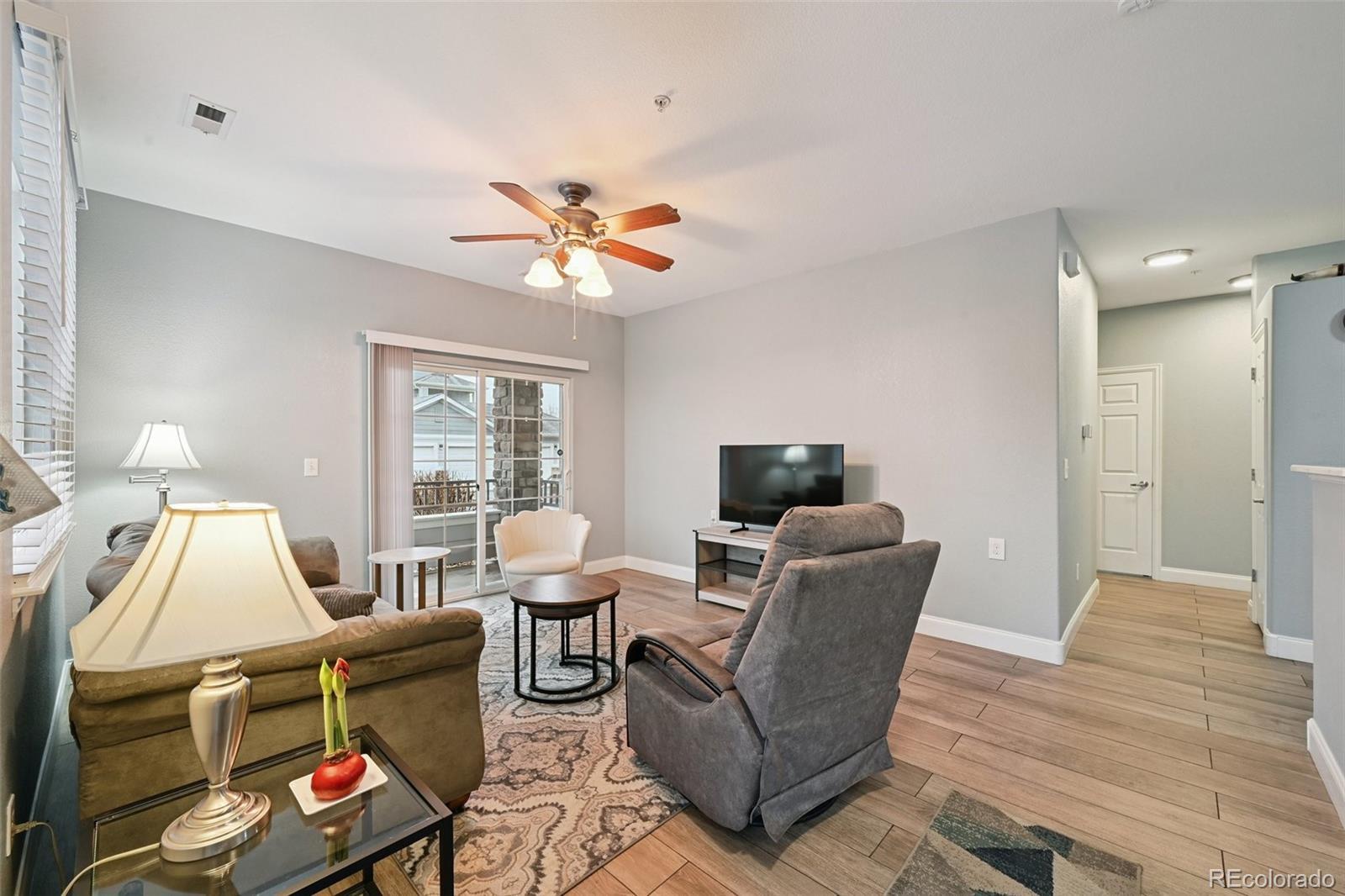 ~ PRICE IMPROVEMENT ~ Don't miss this rare opportunity to own a beautifully maintained, truly move-in ready 2-bedroom, 2-bathroom ground-level condo in the sought-after Trails at Parkfield Lake community—now offered at an improved price! From the moment you walk in, you'll notice the care and attention that has gone into every detail of this immaculate home. The open-concept floor plan features stylish wood-look tile throughout the main living areas, cozy carpet in the bedrooms, and an abundance of natural light that makes the space feel warm and welcoming. The living room flows effortlessly into the dining area and kitchen—perfect for entertaining or simply enjoying everyday life in style. The kitchen is a true standout, boasting stainless steel appliances, quartz-style countertops, ample cabinetry, a modern undermount sink with gooseneck faucet, and a pantry for extra storage. Thoughtful touches like updated lighting, ceiling fans, neutral paint, and a convenient entry coat closet complete the polished look throughout. Retreat to the spacious primary suite featuring a large walk-in closet and a private en-suite with dual-sink vanity and full tub/shower combo. The bright and versatile second bedroom is ideal for guests, a home office, or flex space—with a full second bathroom conveniently nearby. Everyday living is effortless here with an in-unit washer and dryer included, two private patios perfect for soaking up Colorado's beautiful weather, one dedicated parking space, and a one-car detached garage. Resort-style HOA amenities—including a clubhouse, fitness center, and pool—mean your weekends are made for relaxing, not running errands. And with unbeatable access to DIA, I-70, Peña Blvd, E-470, public transit, trails, parks, shopping, and dining, you get the best of both convenience and Colorado lifestyle all in one incredible package. This one checks every box—schedule your showing today before it's gone!