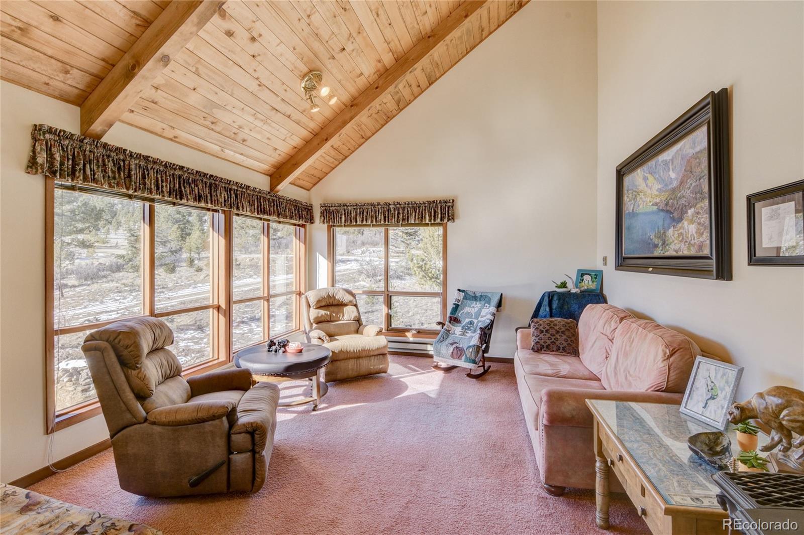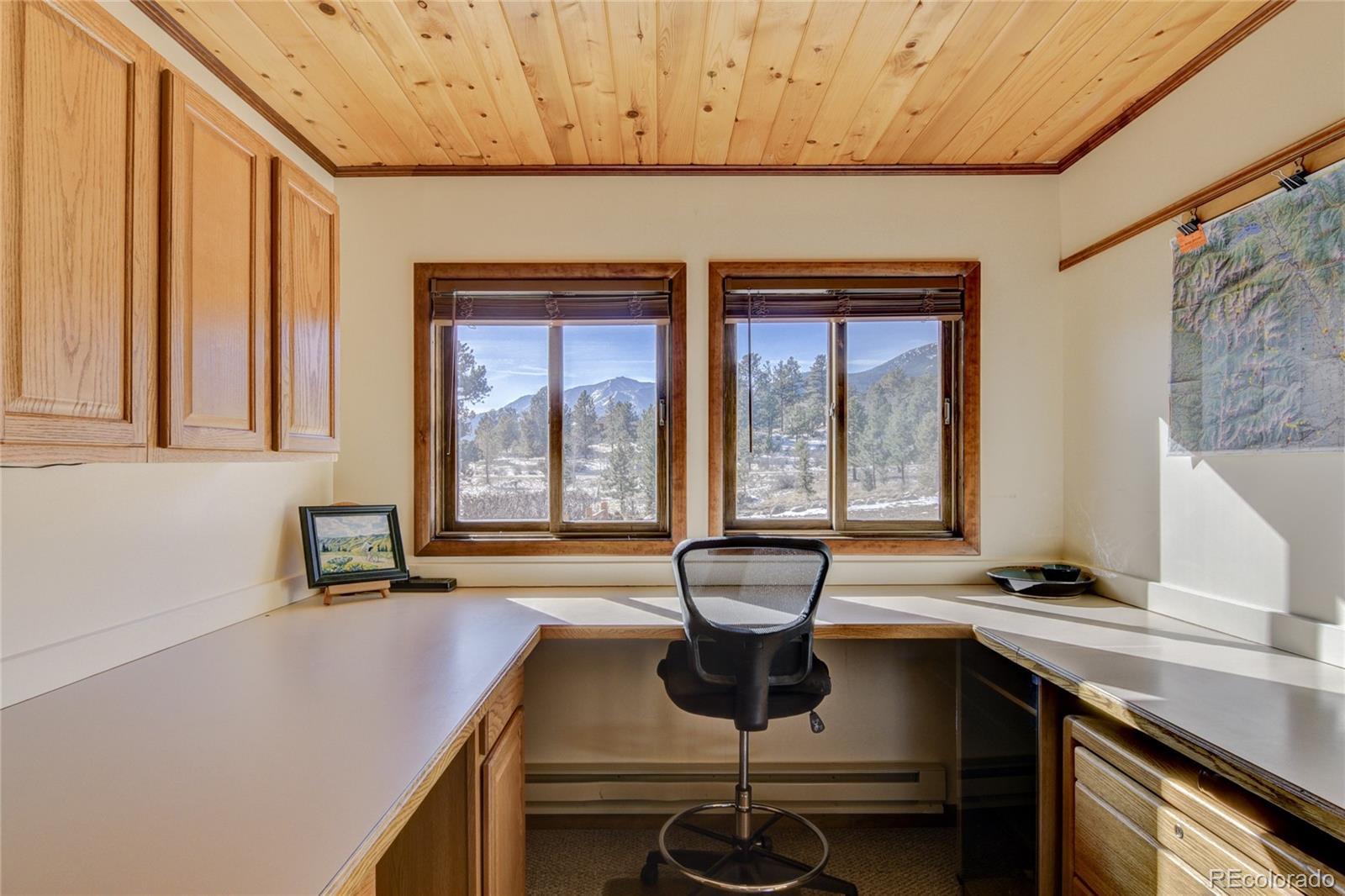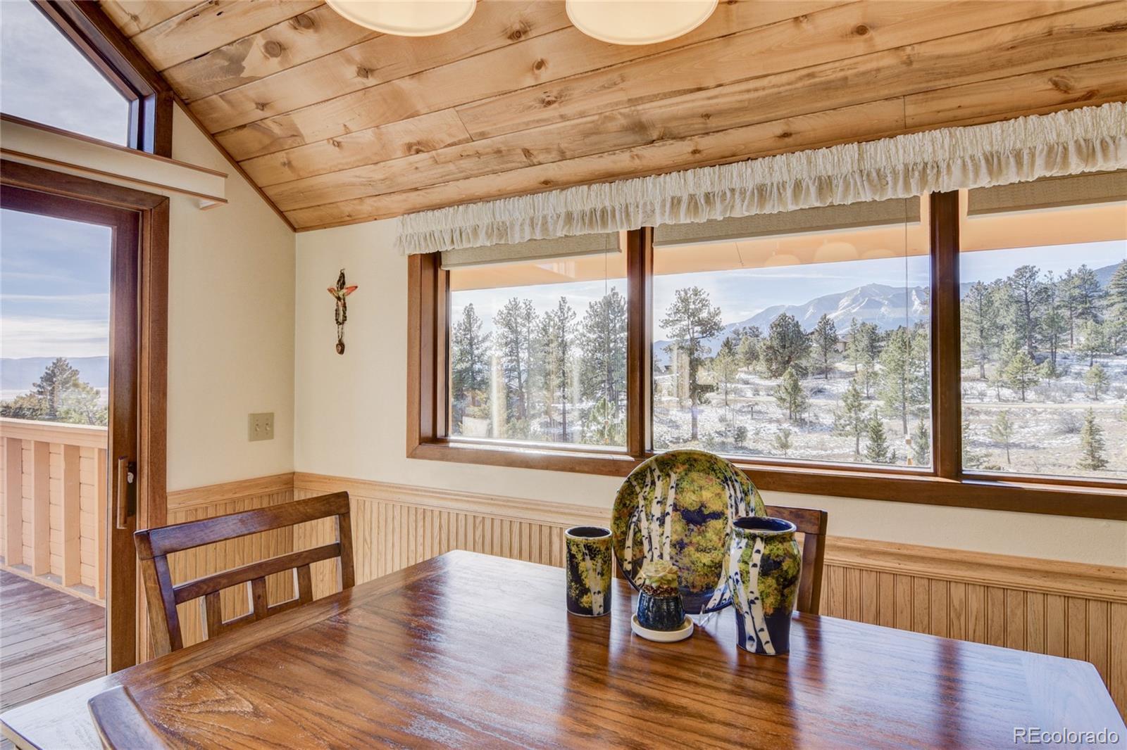 Enjoy beautiful southern exposure, sweeping valley views, and abundant natural light throughout this inviting mountain home. With vaulted tongue-and-groove ceilings and charming wood wainscoting in the family room and kitchen, the interior feels bright, warm, and full of mountain character. A cozy wood-burning stove provides excellent heat and enhances the home’s welcoming alpine atmosphere. The main level features an open concept kitchen and dining area that flows seamlessly into the family room and opens to a spacious east facing deck, perfect for morning coffee while taking in the stunning views below. The property is nicely treed, views of Mt. Princeton. Also on the main level is the primary bedroom with a full bathroom. The lower level includes a generous foyer, a nicely sized office, a large utility room with a half bath, and an additional spacious storage room. A handsome wood handrail leads to the upper level, which offers two bedrooms and a 3/4 bathroom. While the home could benefit from some updating, it has been well maintained and is in very good condition. Additional features include a two car attached garage and well kept exterior cedar siding. Located just five minutes to the National Forest and ten minutes from town. The Game Trail community offers hiking, mountain biking, cross country skiing, and easy access to hunting and outdoor recreation. The subdivision is well maintained and includes trash, recycling, road maintenance and winter plowing. Offered at a reasonable price of $710,000 and sold fully furnished with all main furnishings included. If this home fits your price point, schedule a showing soon, as this may move quickly.