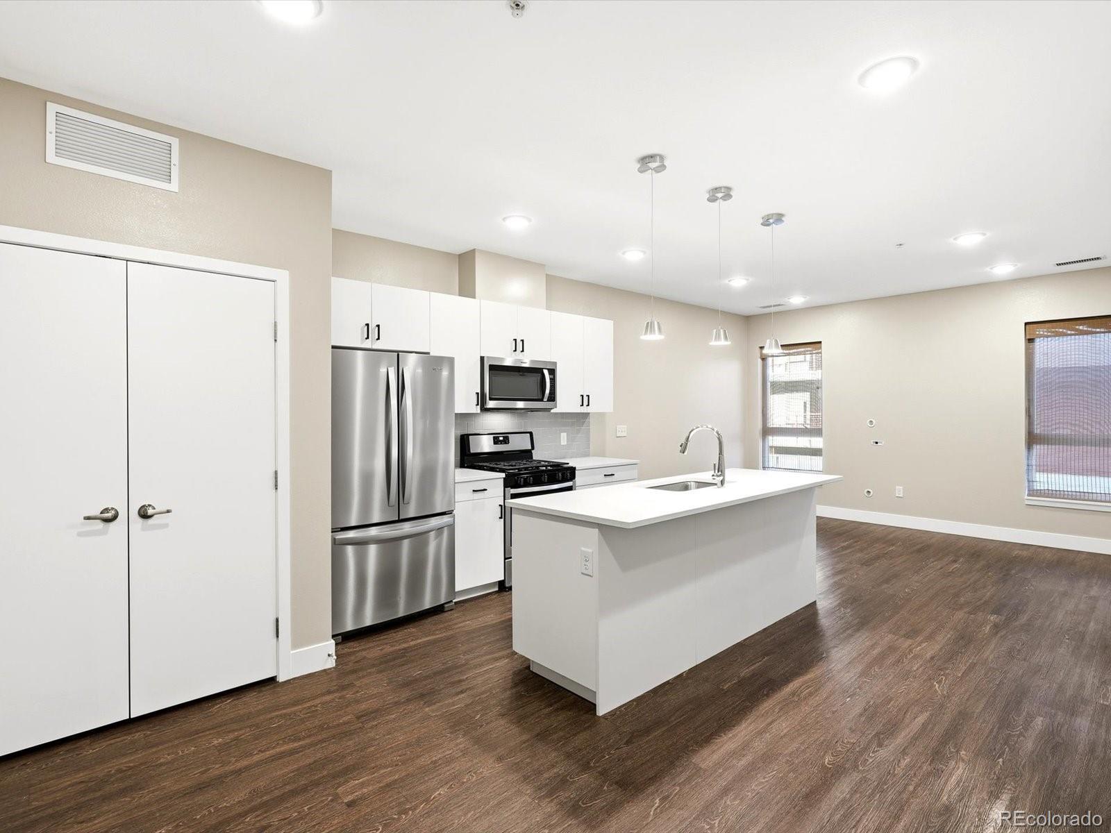 Sleek, modern, newer construction. Live in the heart of Observatory Park at Observatory Flats. This modern one bedroom condominium lives like new and offers beautiful contemporary finishes throughout. Conveniently located on the third floor, this residence has an open floor plan and high ceilings that allows for an abundance of natural light. The kitchen showcases a 7.5' white quartz island, white cabinets, modern backsplash tile, pendant lighting, Whirlpool stainless steel appliances, including gas range. The versatile living room allows for furniture to be laid out in a variety of ways. Adjacent to the kitchen is the laundry closet, washer and dryer included! The 3/4 bathroom includes an oversized shower with euro-glass enclosure and vanity with cabinets for storage. The spacious bedroom has high-end carpet and an expansive walk-in closet. Observatory Flats is a secure building, with secure parking in the heated garage (deeded spot #26) and includes a large bike storage room. Ditch the gym membership and enjoy the private, on-site gym equipped with high-end equipment. The community rooftop terrace not only offers unobstructed mountain/city views, but also includes a grill, fire pit with lounge chairs and extensive table, perfect for entertaining! Have piece of mind knowing that the HOA is healthy and includes trash, sewer, water, insurance, building maintenance, and snow removal. With prime walkability, enjoy being steps from multiple shops, restaurants, Denver University, the Newman Center for Performing Arts, along with multiple parks and public transit. Minutes from DTC, Wash Park, Observatory Park, Cherry Creek, Platt Park and downtown Denver. Why rent, when you can own? Set up your private showing today and see why the location, layout and low-maintenance living make #311 the best choice to call home.