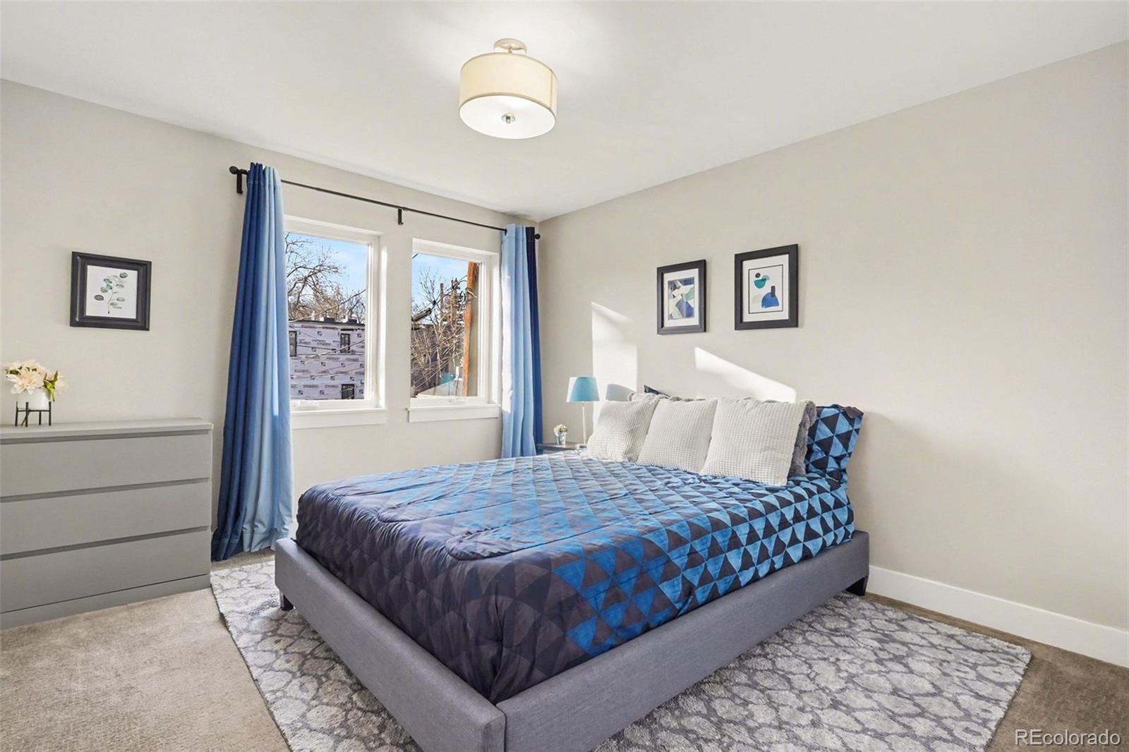 Enjoy the best of both worlds in this sleek, modern home set amid the historic charm of Potter Highlands, just steps from the heart of LoHi. Built in 2014, this thoughtfully designed residence offers five spacious bedrooms—an exceptionally rare find in NW Denver—providing outstanding flexibility for home offices, guest suites, gyms, or multigenerational living, all while maintaining privacy and separation. A higher proportion of above-grade square footage fills the home with natural light and creates a more functional layout than many comparable properties. The open floor plan is both stylish and inviting, featuring extensive wood floors, a cozy gas fireplace a with a creamy white stone surround, and a chef’s kitchen with quartz countertops, warm wood cabinetry, a tile backsplash, stainless steel appliances, bar seating, and a large pantry. Two distinct living areas—an uncommon and highly desirable feature in LoHi homes—offer versatility for entertaining, media use, or a quiet retreat, complemented by a dedicated dining space. Upstairs, the expansive second level includes four generous bedrooms, a private balcony, laundry room, and a serene primary suite with a spa-inspired bath, soaking tub, dual sinks, and walk-in closet. The newly completed basement adds exceptional flexibility with a private bedroom ensuite ideal for guests, an au pair, or MIL suite, plus space for a family room, gym, or office. Outside, professionally designed landscaping creates a private oasis on a rare 5,000-square-foot lot—significantly larger than most nearby homes—featuring mature trees, shrubs, irrigation, a covered patio, grassy yard, and a two-car garage. Additional highlights include new interior paint, proximity to Academia Ana Marie Sandoval DPS magnet school, optional smart home and security systems, and an unbeatable walkable location near everything that LOHI has to offer