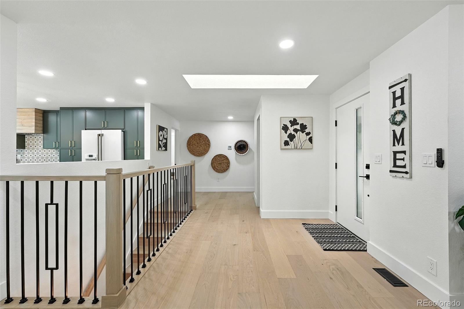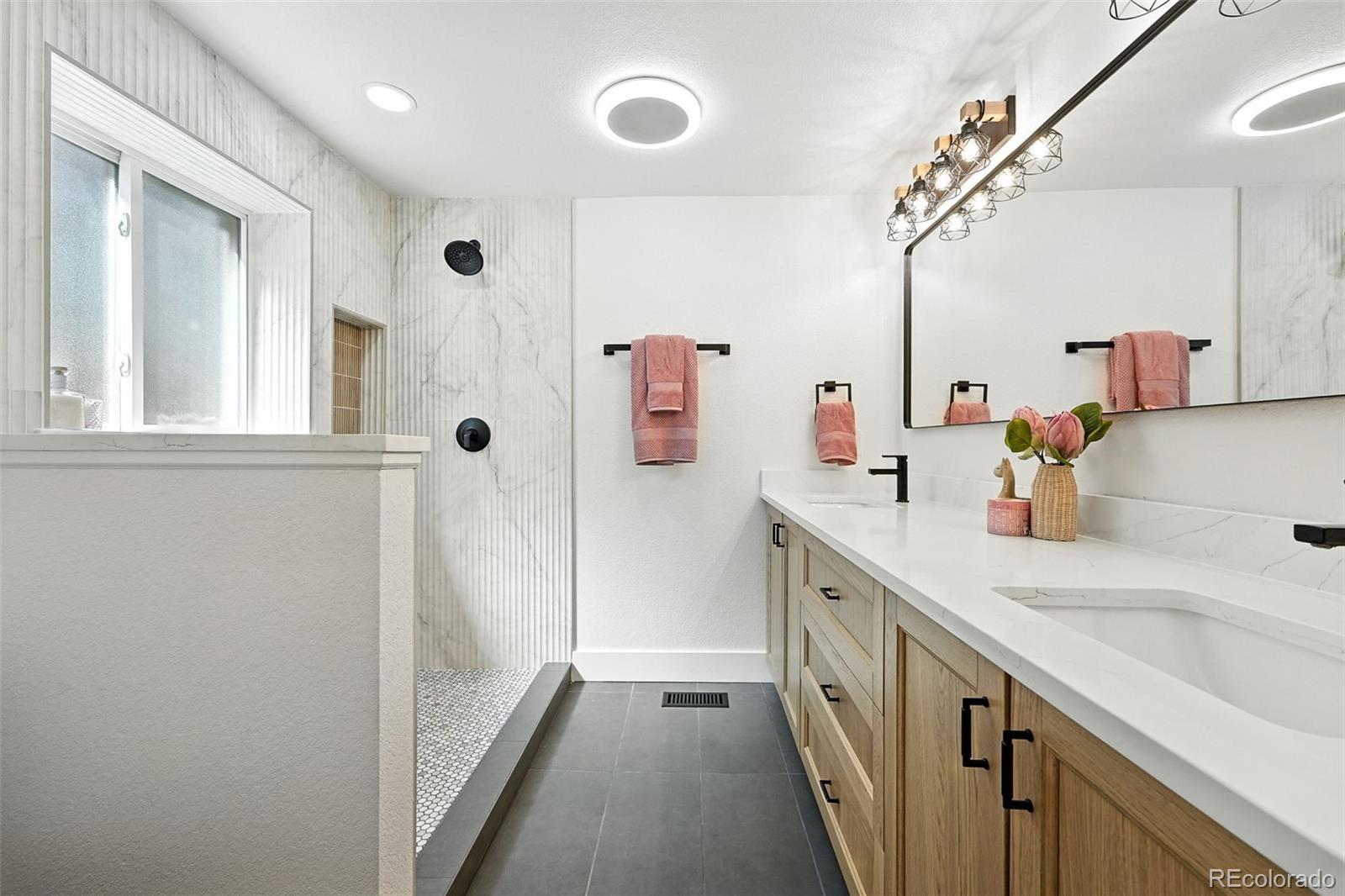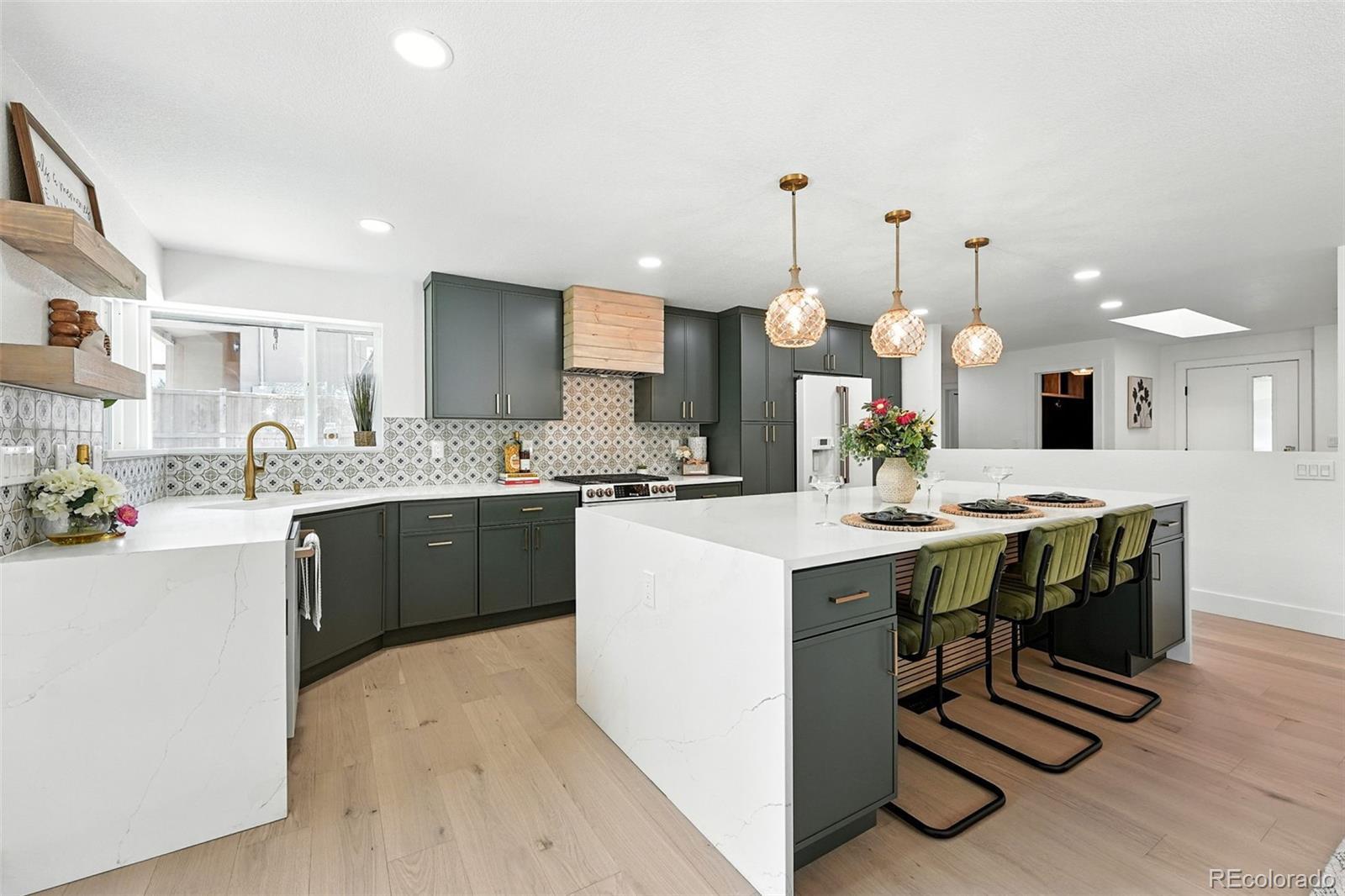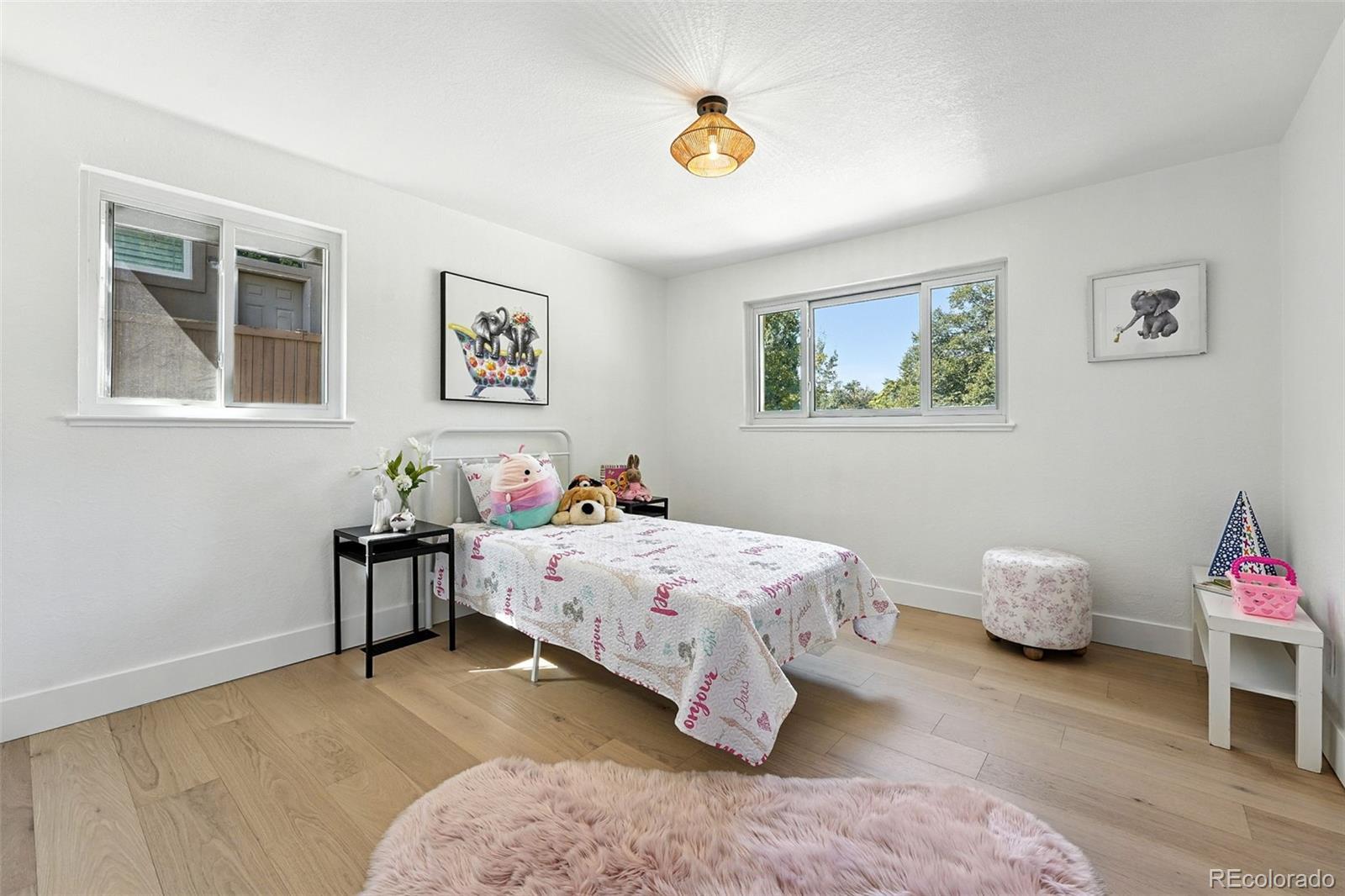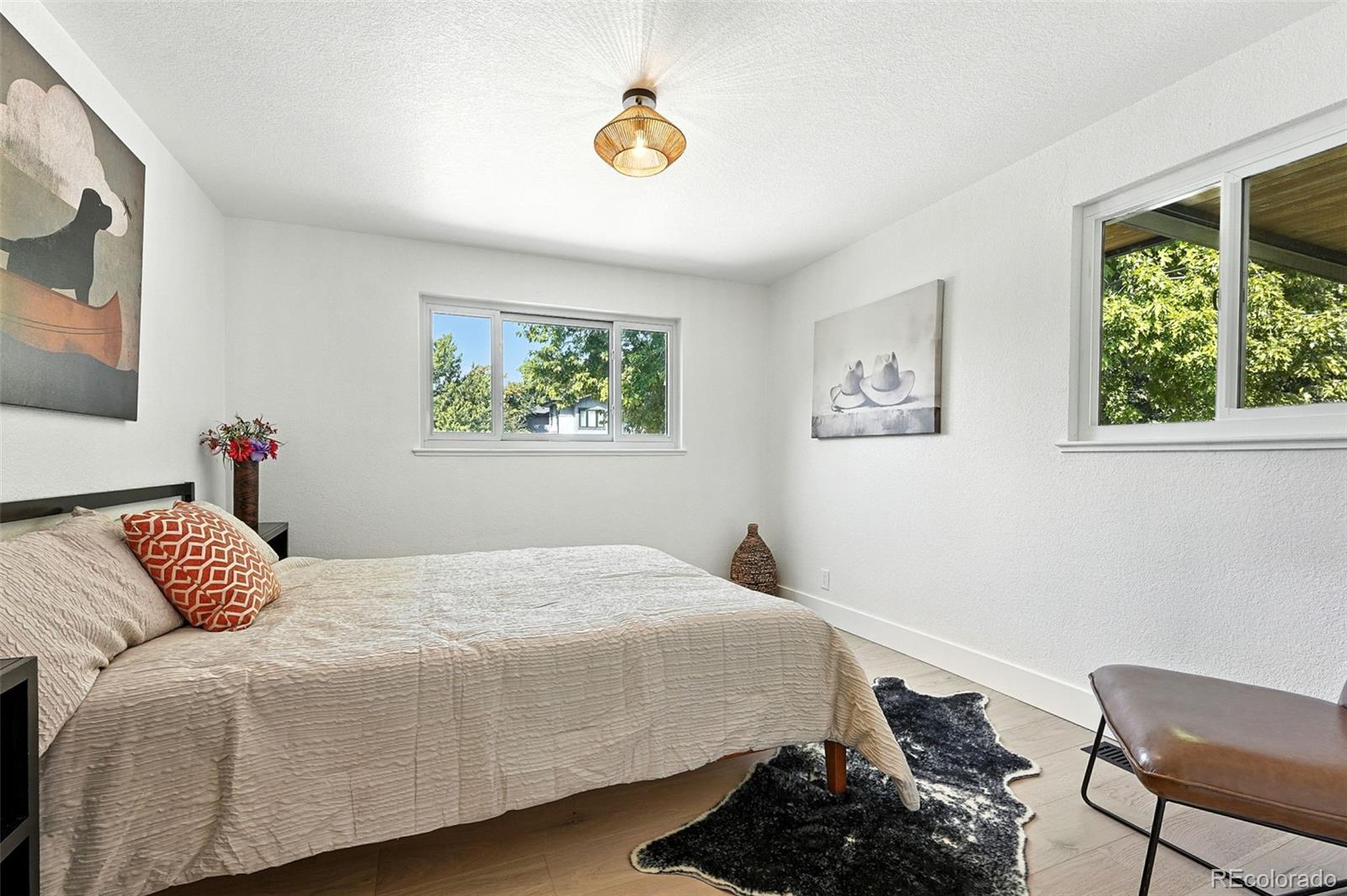 Welcome to this beautiful, remodeled home in the highly sought-after University Hills neighborhood! This home blends mid-century modern with inspired Spanish farmhouse design coupled with all of today’s amenities and luxury. Centrally located, this home offers easy access to shopping, restaurants, coffee shops and I25. Walk or bike to Wellshire Golf Course, the Highline Canal, Eisenhower Rec Center or the Wellshire summer famers market. The home’s exterior charm is undeniable, with new updated colors, cedar shutters, front siding, flowers, concrete work, a beautiful shade tree and 2 work sheds in the back yard. Once inside, you will see the beautiful engineer hardwood floors along with an open floor plan designed for modern living. The seamless flow between the kitchen, dining, living and sitting area create an inviting space filled with an abundance of natural light, high-end finishes, and charm. The inviting living room features a gas fireplace with beautiful Spanish mid-century tile, custom built-ins and original custom shelves to keep the midcentury vibe. The dining area opens to an expansive patio and spacious backyard. The gourmet kitchen is a showpiece, featuring an oversized island, Calcutta quartz countertops, professional GE café appliances, stylish brass fixtures, and custom-built floating shelves and range hood enclosure. The large primary suite includes a walk-in closet and beautiful ensuite bathroom. Upstairs you will find 2 more bedrooms, full bath and large mud room with custom bench and shelves. Downstairs, 2 additional rec rooms offer built-in cabinetry, electric fireplace enclosure, wet bar with wine refrig, a 4th bedroom with attached bathroom and large laundry. Just a few other new items: roof, A/C, furnace, water heater, upgraded electrical panel, interior plumbing, underground sewer, & solid wood interior doors. Don't miss this exceptional opportunity to own a beautifully remodeled home in one of Denver’s most desirable neighborhoods!