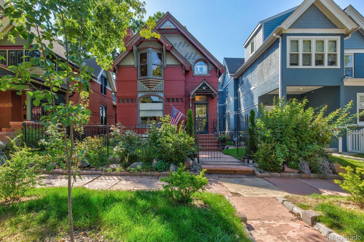 Step into a meticulously fully restored historical 1890 Victorian masterpiece in City Park West, once home to Barney Lancelot Ford, a legendary pioneering entrepreneur, who's recognized with a stain glass portrait in the CO State Capital. This 3/4-bed, 2.5-bath, 2,074-sq-ft gem on a 4,687-sq-ft lot blends historic elegance with modern luxury, perfect for professionals, history enthusiasts, or Airbnb hosts. A front-yard historical plaque celebrates Ford’s legacy for storytelling or historians, while the house has no historical city restrictions. Classic Charm, Modern Comfort: Revel in 1890s restored marquetry floors and large original windows flooding rooms with light, new ceiling fans, new carpet and tile, and fresh custom paint inside and out. A brand new $26K heat pump (20-year transferable warranty), updated plumbing and electrical systems, added outlets, and new Hardy siding in the rear ensure comfort and efficiency, A remodeled chef’s kitchen with premium appliances and remodeled bathrooms including new modern toilets, alongside a smart thermostat, smart locks, advanced security system, and new smoke/CO alarms deliver low-maintenance living or guest-ready rentals. Outdoor Sanctuary: A smart sprinkler system nurtures a professionally landscaped English garden and yard, blooming spring to fall. Unwind in a backyard oasis with a new matching shed for storage or a workshop, gazebo on the deck with a patio umbrella, and two matched outdoor stone patio seating areas, all framed by fencing, provide a serene retreat for professionals or a charming guest experience. Prime Location (Walk Score 87, Bike Score 92, Transit Score 56): Close proximity to all that central Denver has to offer! Live Denver’s vibrant lifestyle, preserve history with support from History Colorado, or tap into short-term rental demand with smart tech, modern upgrades, and proximity to Colfax’s buzz and top attractions. Schedule a tour today!