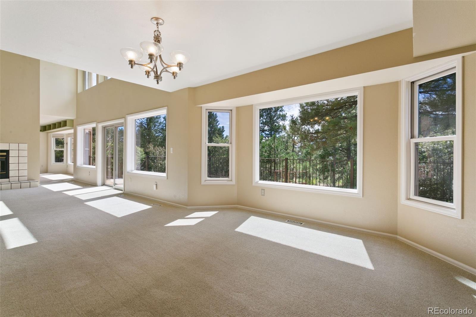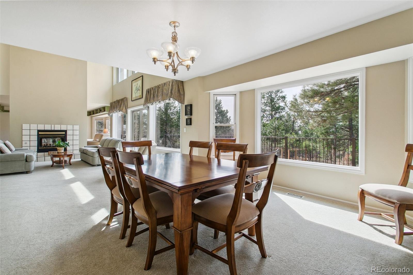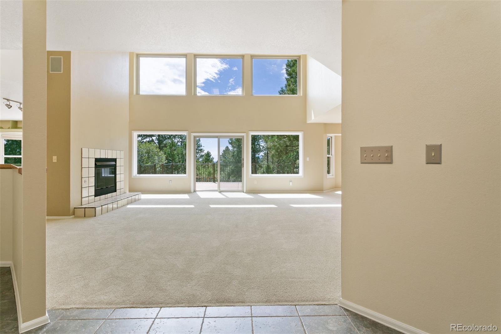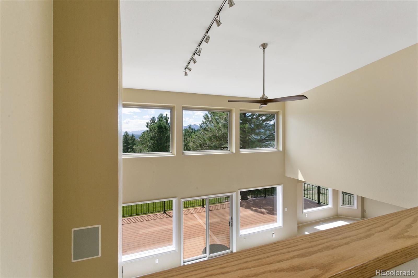The Pikes Peak and front range views from this Woodmoor home are spectacular! Almost 1 acre on a quiet cul de sac. Move in ready. Everything about this home has been meticulously cared for by the owners and it shines. Stucco and stone exterior. Extensive interior and exterior upgrades completed in the past few years. Check out the views from the primary suite! Just a few of the amazing features include a double-sided fireplace, soaring ceilings, hardwood and tile floors, plenty of natural light, recently upgraded kitchen, quartzite and engineered stone counters, maple cabinets, a cute kitchen bench with seating by a picture window, double stainless-steel ovens and more! There is a main level bedroom with hardwood flooring, picture window and a 3/4 bath located next to it. The primary bath includes a jetted tub, 5-piece bath and a walk-in California closet. The two upper guest bedrooms share a jack and jill bathroom with a shower. The basement includes a wet bar with beer tap, pool table, pool sticks, pool stick mount, gas fireplace, speakers and a mounted television. Newer carpeting has been added. Central air was added in 2023. The main level laundry room features cabinets, built in ironing board and washer/dryer included. The 3-car garage includes a workshop/workbench and storage shelves. The backyard has a storage shed and fenced protected garden perfect for plants and vegetables. Plenty of storage space including a crawl space in the basement. Circular driveway in front of the home with additional parking spaces for guests. Relax on the huge newer composite deck with a retractable awning and listen to the bubbling fountain along with the sound of the breezes thru the pine trees. Easy access to local trails, shopping, restaurants and easy access to I-25 for a commute to Denver or Colorado Springs. This home really does have it all. Welcome home!!