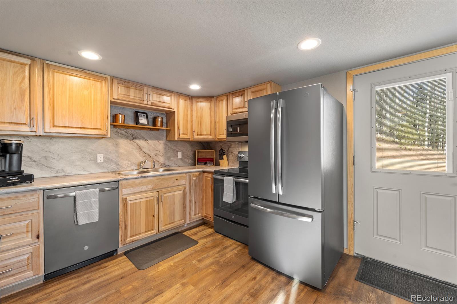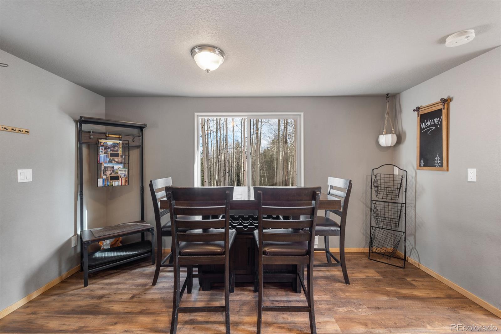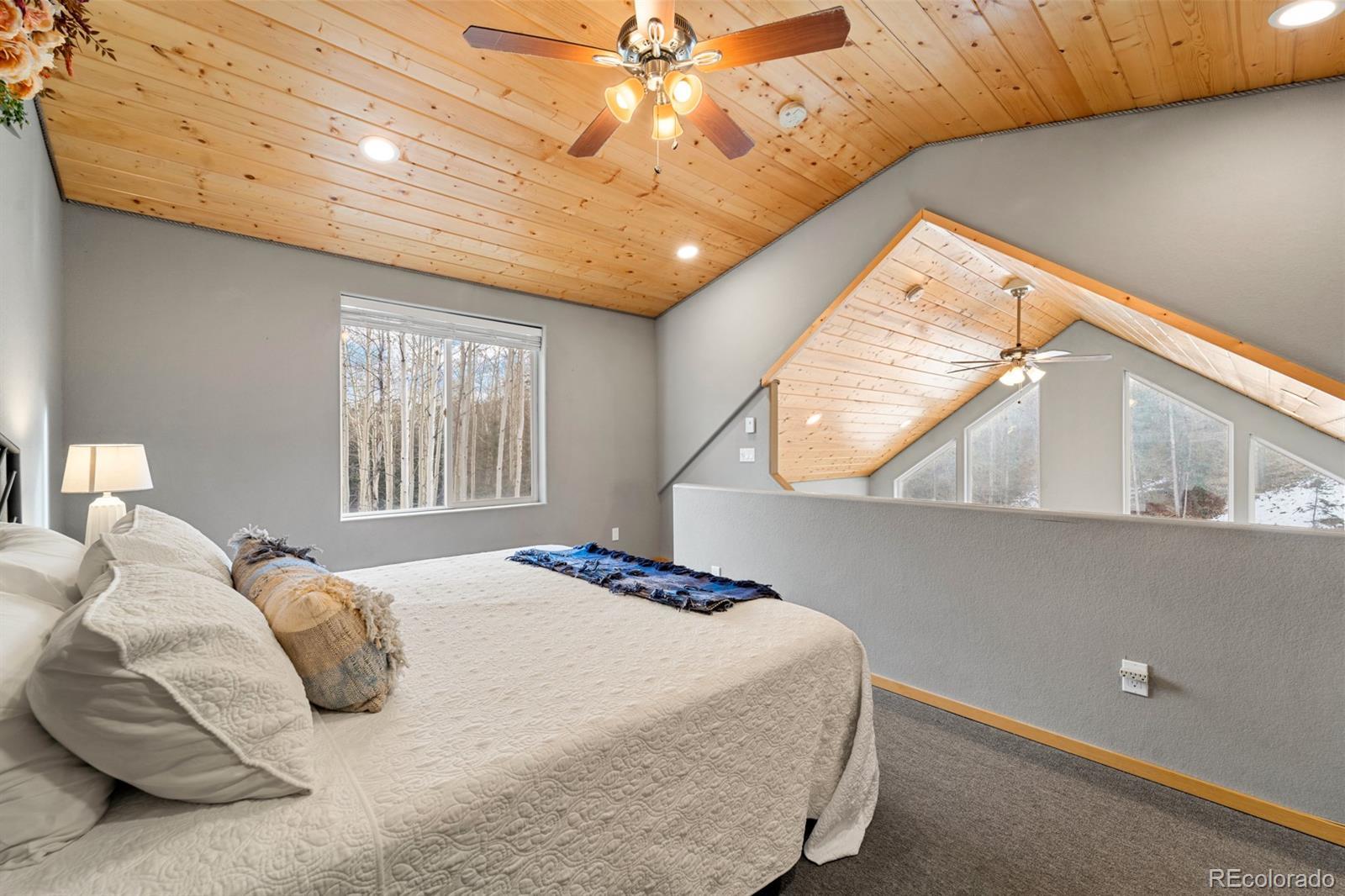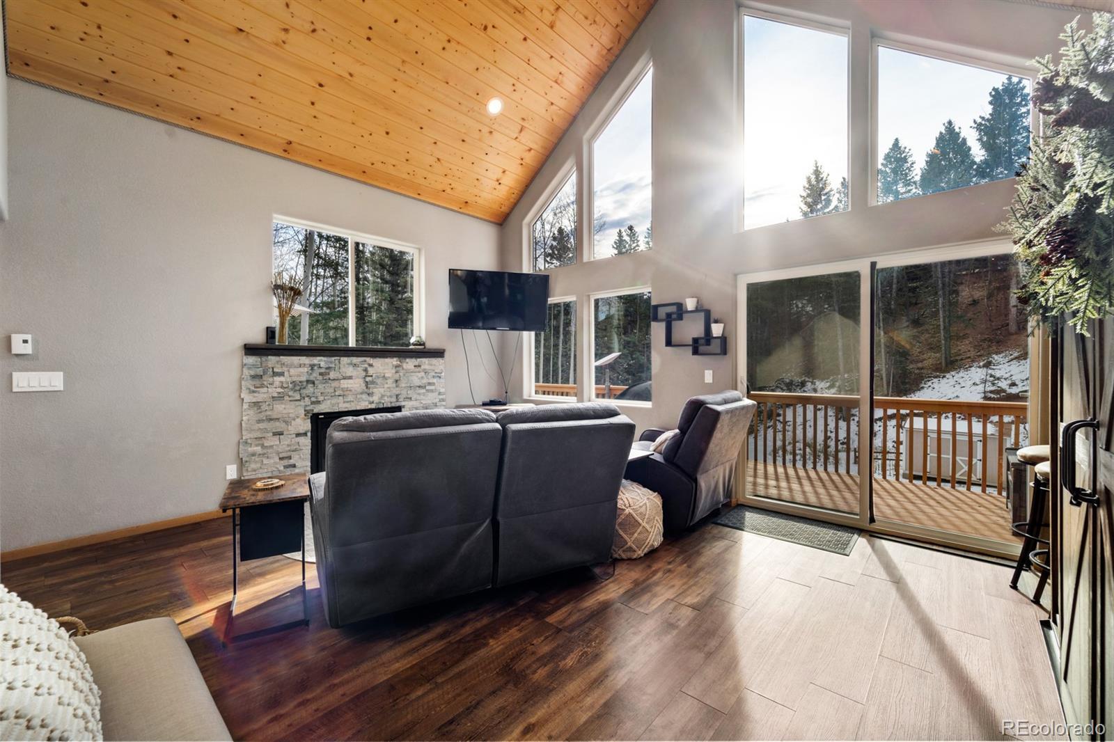 This IS it!! Welcome to your own slice of mountain paradise! This newer mountain chalet is the perfect blend of rustic charm and modern convenience. Just a short drive from downtown Woodland Park, this home offers the ideal location for both active short-term rentals or a vacation home, as well as a year-round residence. You'll be captivated by the spacious and inviting Great Room. Boasting floor-to-ceiling windows, a vaulted pine tongue and groove ceiling, and a cozy gas-log fireplace, this room is flooded with natural light and provides breathtaking views of the surrounding mountains. Step out onto the large wrap-around deck and soak in the serenity of your private oasis. The eat-in kitchen is a chef's delight, featuring custom hickory cabinets and plenty of counter space for meal preparation. The main level also boasts engineered wood flooring, creating a warm and inviting atmosphere that flows seamlessly throughout. A convenient 3/4 bath completes the main level. Upstairs, you'll find a charming bedroom with dual closets, ensuring ample storage space for all your belongings. The lower level offers endless possibilities, with a versatile bedroom or living space and a combination closet and laundry room. Step outside onto the private covered deck and revel in the tranquility of your surroundings. This home is not only incredibly inviting, but also built to withstand the elements. Well insulated and low E windows, you can enjoy comfortable living year- round. The exterior HardiePlank siding is engineered specifically for the mountain climate, ensuring durability and longevity. Don't miss your chance to own this move-in ready mountain chalet. Whether you're looking for a investment property or a place to call home, this is the one for you. Schedule your private tour and start living the mountain lifestyle you’ve always dreamed of.