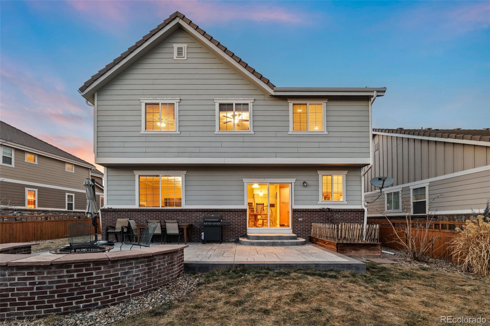 Welcome to this beautifully designed home, where timeless brick accents, a concrete tile roof, a spacious 3-car garage, and a charming covered front porch create exceptional curb appeal from the moment you arrive. This impressive six-bedroom home offers the perfect blend of comfort, functionality, and style -ideal for growing families, multi-generational living, or those who love to entertain. Step inside and find soaring vaulted ceilings, abundant natural light, and luxurious flooring that flows seamlessly throughout the main level. The open layout creates an atmosphere that feels both grand and welcoming. A main-floor bedroom and bath provide a private and convenient space for guests, extended family, or even a dedicated home office. At the heart of the home, the kitchen is a true gathering place, featuring a gas cooktop, ample cabinetry, generous counter space, and room for meal prep, casual dining, and entertaining, and opens effortlessly to the dining and living areas. Upstairs, escape to the large primary suite, complete with a spa-inspired 5-piece bathroom, separate W/C, and spacious walk-in closet—your own personal retreat at the end of the day. 3 additional generously sized bedrooms, a full bathroom, and a conveniently located laundry room provide comfort and convenience for everyone. Outback you will find an expansive stamped concrete patio—an ideal setting for morning coffee, weekend barbecues, or evening gatherings under the stars with a beautiful landscaped yard. Enjoy endless hours at the firepit taking in the summer sunsets. The finished basement expands your living space even further, featuring an additional bedroom and a recreation room—perfect for movie nights, game days, a home gym, or a creative studio. This flexible space adapts easily to your lifestyle and needs. Ideally located within walking distance to the neighborhood pool, tennis courts, and multiple parks, this home offers an exceptional community atmosphere. Schedule your tour today!