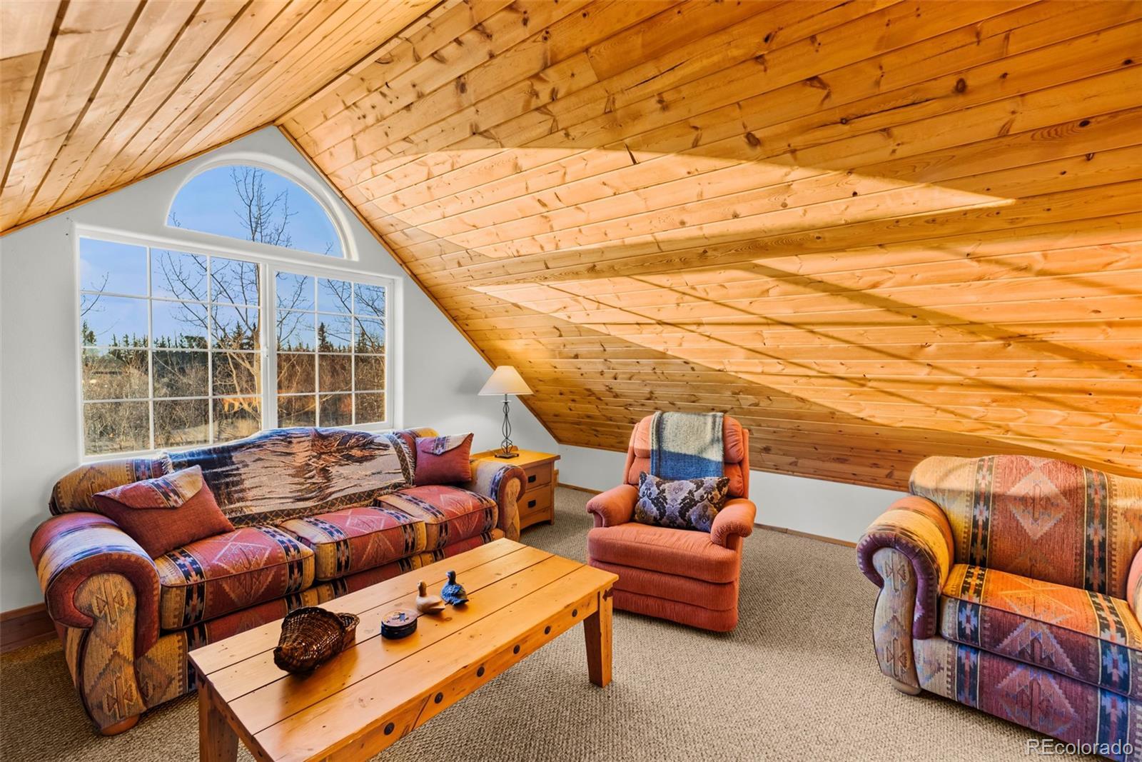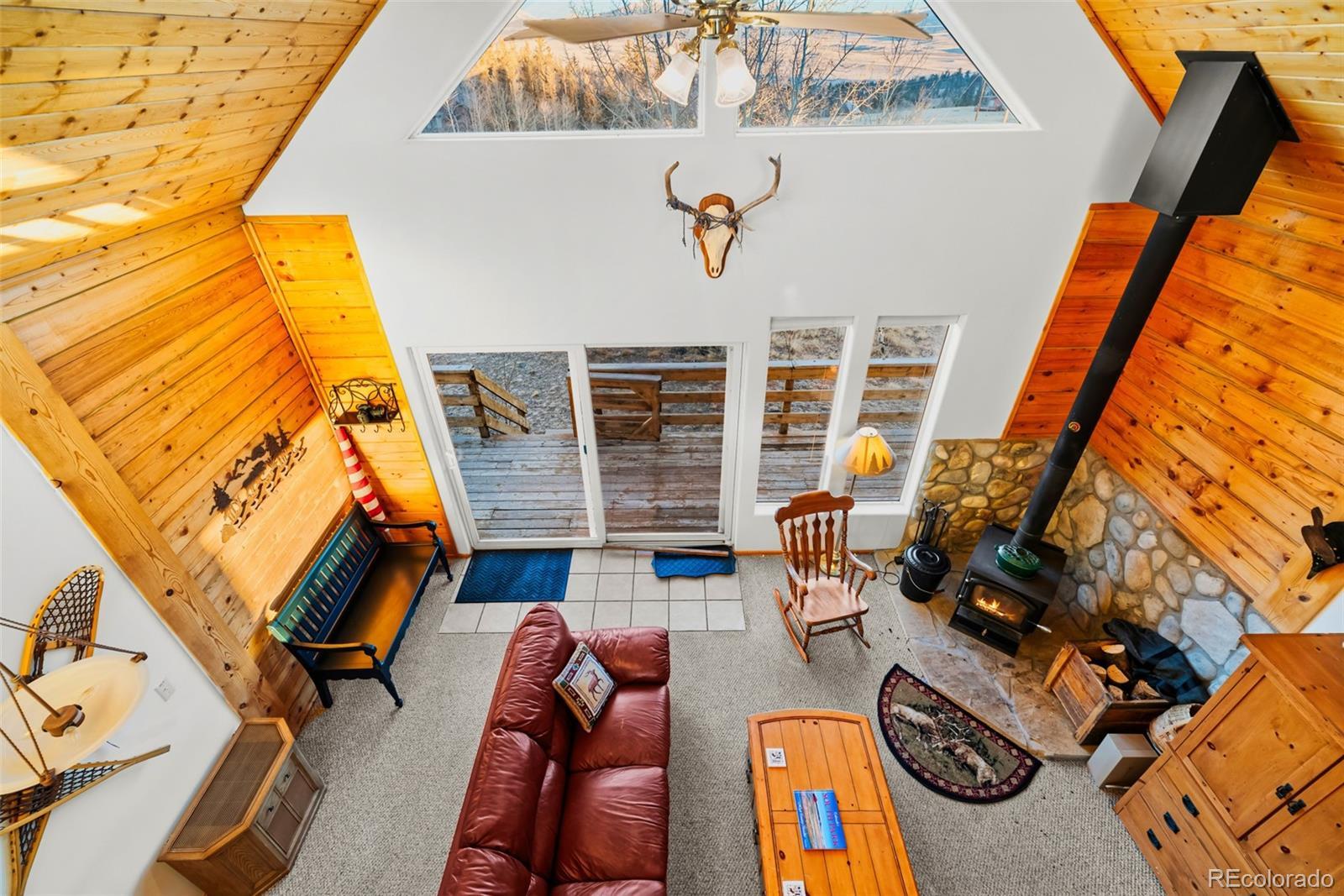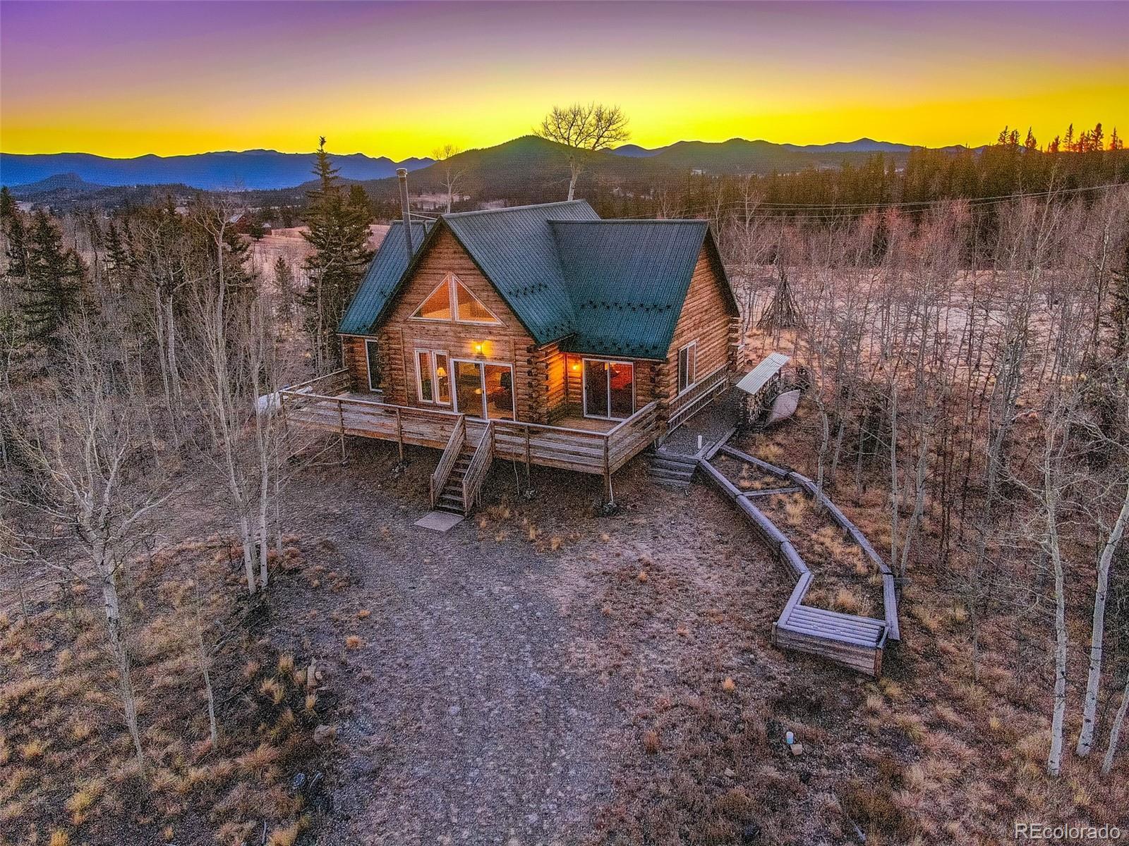 Charming mountain log cabin nestled in the Pine and Aspen on one acre in the Indian Mountain community. This cabin would be the perfect vacation getaway, full time residence or investment property. The main level is open and spacious. A great room with floor to ceiling windows looks out on stunning mountain views and opens onto a large deck. Step outside at sunrise or sunset to view the vibrant colors and the wildlife that frequents the area. Vaulted tongue and groove ceilings, log accents, and a cozy wood stove add the cabin ambiance. The kitchen has plenty of counter space and storage and an island with additional seating. A laundry room off to the side is added convenience. The roomy primary suite on the main level is completed by a 3/4 bath. Two additional bedrooms and a full bath make this the ideal layout for family or guests. The upper level is a loft, perfect for an office space, sitting room to enjoy the views, or as a play space for the kids. The property has a gentle slope and just enough tree cover. Raised planters will help you grow your garden or beautiful summer flowers. All of this is tucked back in the clean, friendly Indian Mountain Community. Indian Mountain has many amenities for residents: community center that hosts many neighborhood activities, a clubhouse with a bbq area and playground, hiking and sledding trails, and more. Just minutes from the town of Fairplay, and only 90 minutes from Denver and Colorado Springs, and accessible by county maintained roads, this is the perfect mountain location.