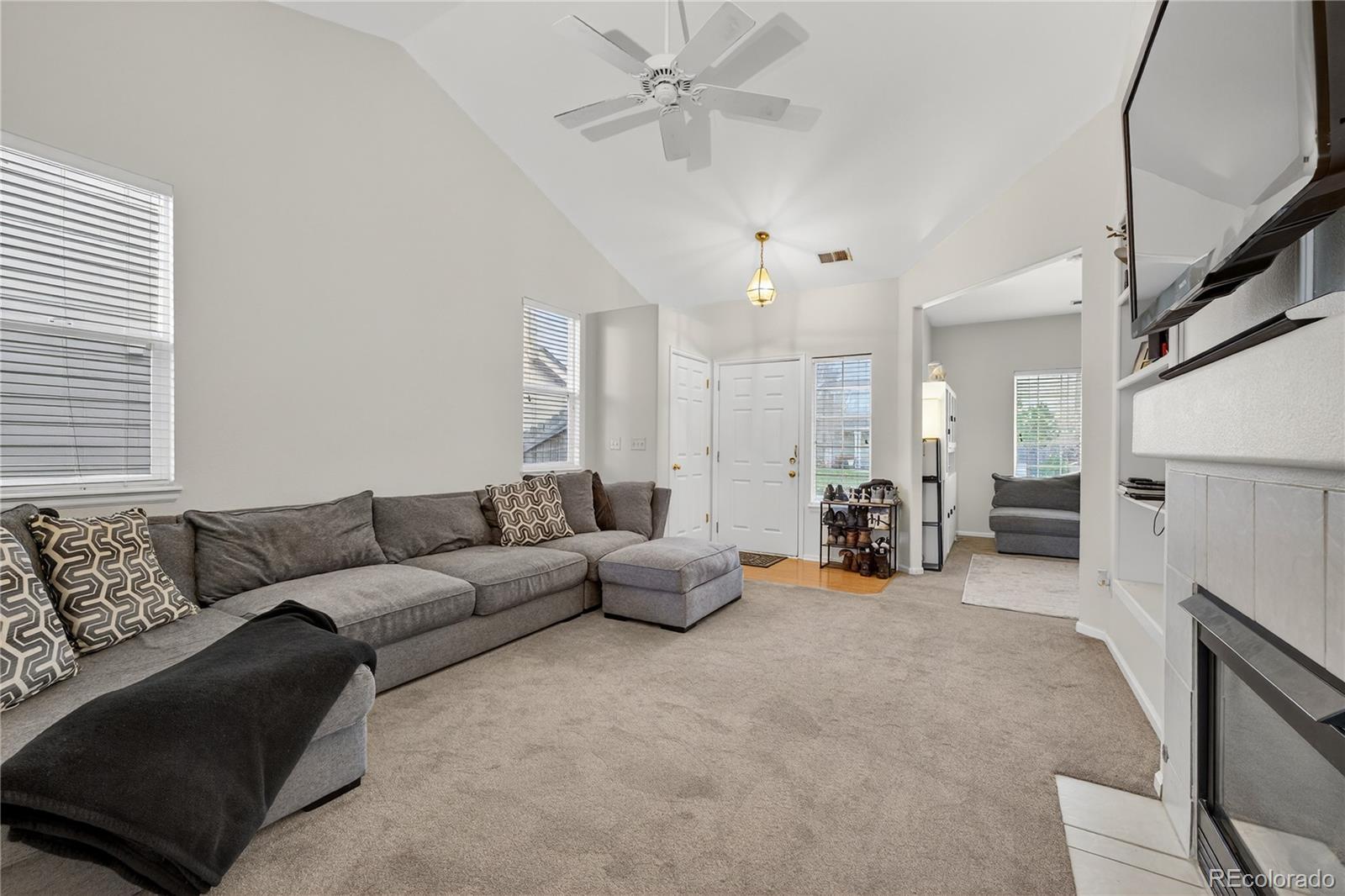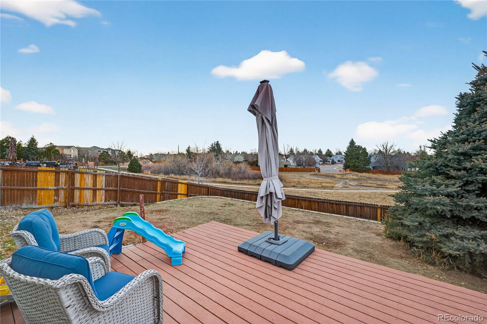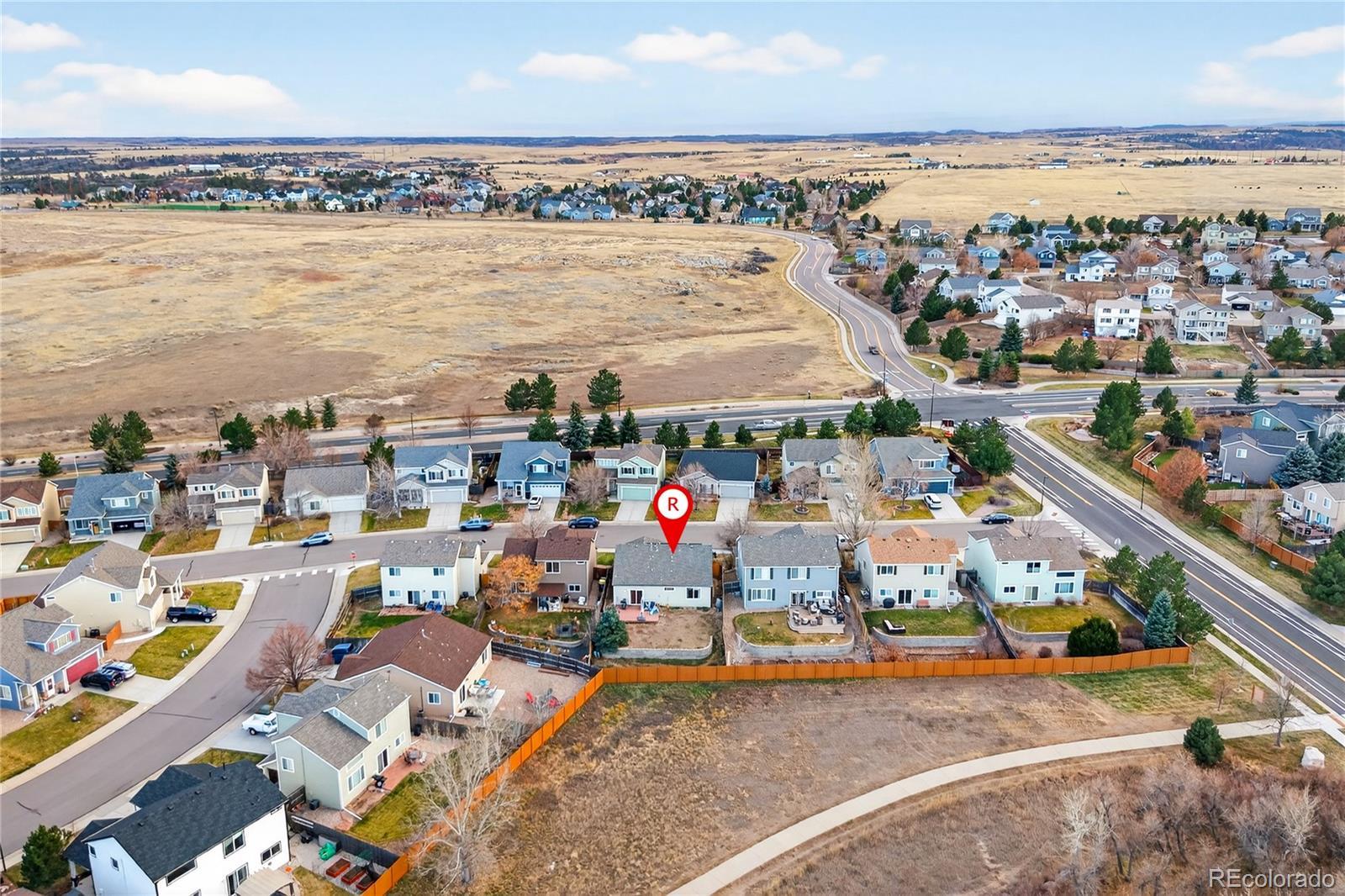 Ranch-style living meets Colorado adventure in this Castle Rock home that backs right up to a scenic walking trail and open space, giving you room to breathe and explore every day! The layout includes two inviting bedrooms plus a flex room that transforms instantly into a vibrant play zone, focused home office, game room, or anything your routine demands. The living room makes a statement with vaulted ceilings, eye-catching built-ins, and a gas fireplace that pulls the space together. The kitchen feels bright and social with plenty of cabinets and room for a dining table, making it a natural gathering spot. The primary suite creates a comfortable retreat with a walk-in closet and an ensuite bathroom featuring dual sinks. A second bedroom and full bath offer welcoming space for family or guests. Outside, the backyard feels like an extension of the open space behind it, complete with a deck that sets the stage for morning coffee, evening grilling, or quiet time under the sky. The community adds even more to enjoy with a pool and miles of trails, and the location keeps daily errands, schools, and shopping just a quick, easy drive away. Welcome home!