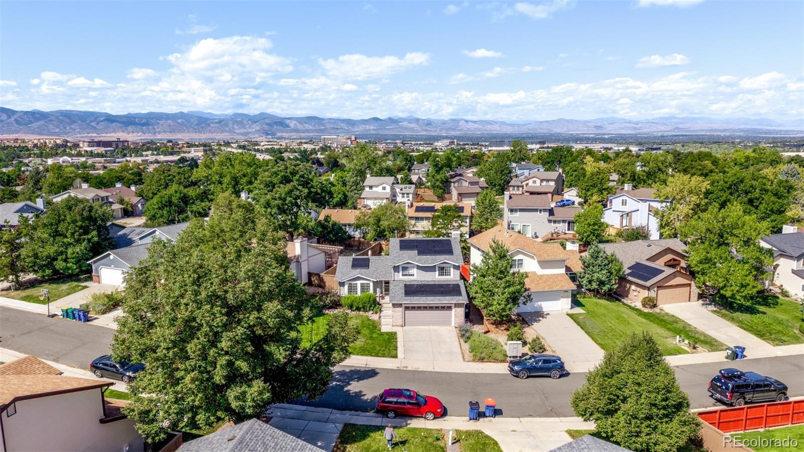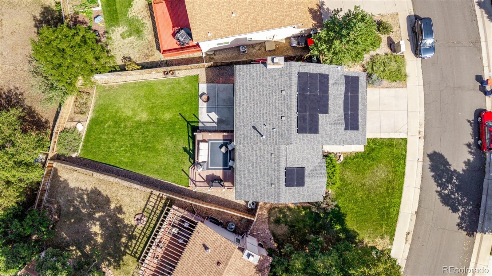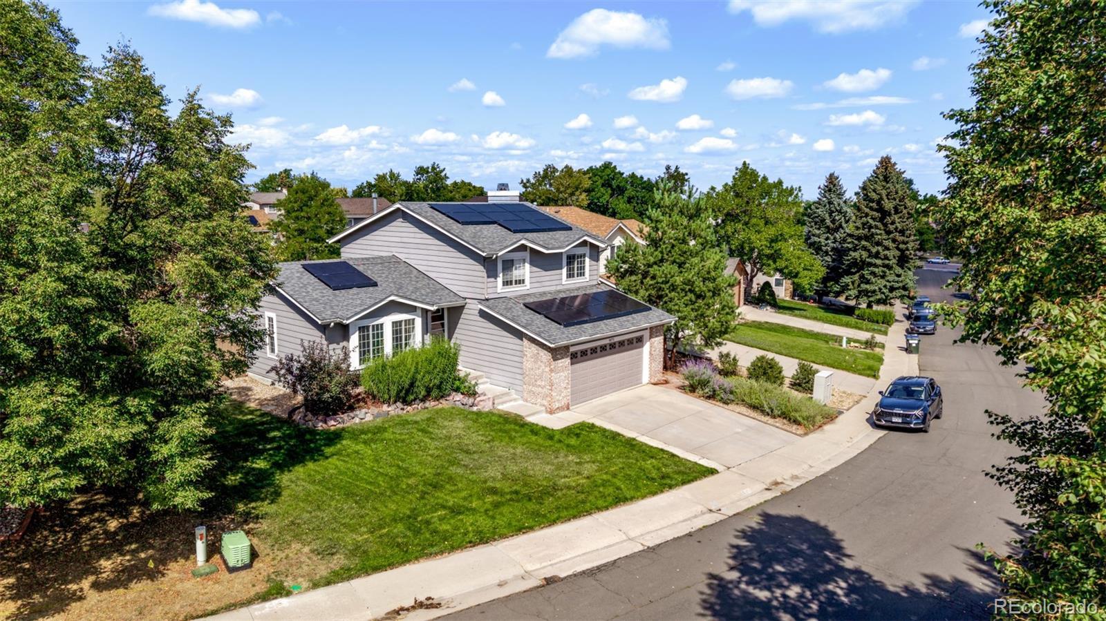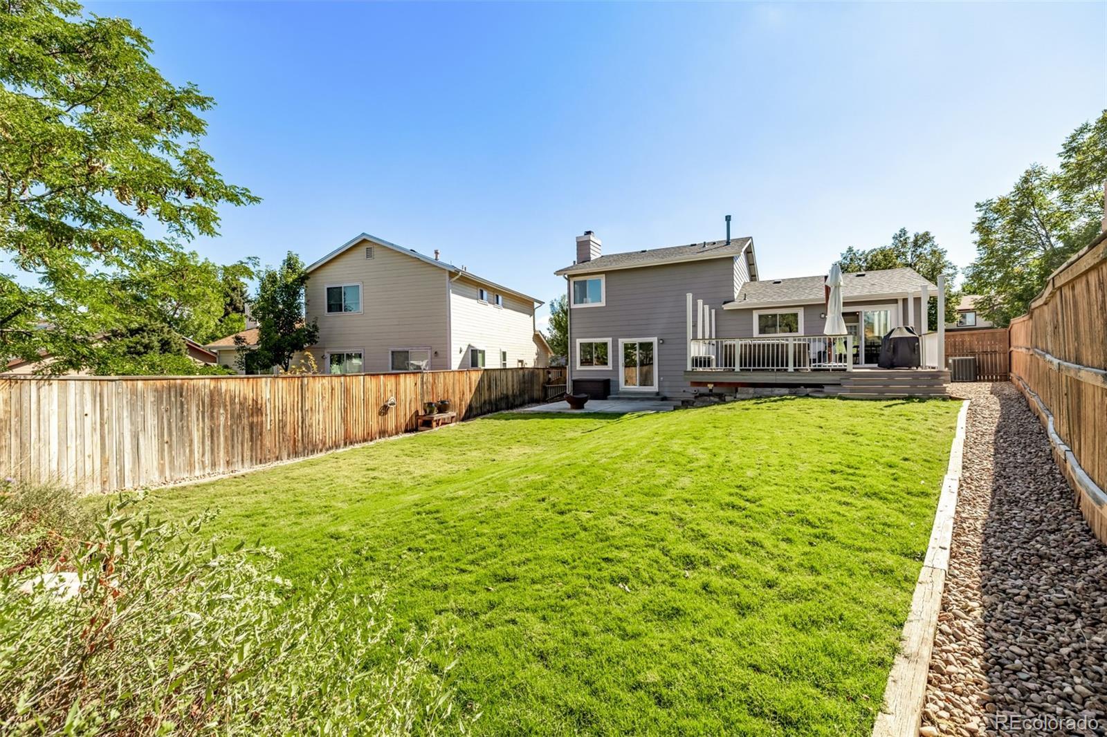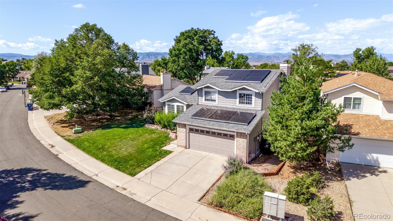 Welcome to your future happy place! This beautifully updated 4-bedroom home is move-in ready with thoughtful upgrades inside and out. Step inside to find new luxury vinyl plank flooring, fresh paint, and brand-new carpet that make the home feel bright and modern. The kitchen features white cabinets, abundant storage and prep space, and an attached dining room that’s perfect for family dinners or hosting friends. Multiple living areas offer room to spread out — cozy up by the wood-burning fireplace in the family room, relax in the living room, or host game night in the basement rec room. Set on a large lot, this property boasts two inviting outdoor spaces: a deck off the kitchen and a patio off the family room, ideal for gatherings or quiet mornings. Lush Bermuda grass, beautiful flower beds, and landscaping create a true backyard oasis. Peace-of-mind upgrades include a radon mitigation system, Aquasana whole-house water filter and conditioner, roof with high-impact shingles (insurance savings!), and owned solar panels for lower energy bills. All just a short stroll to Northridge Elementary and the Foothills Trail — this is Colorado living at its best!