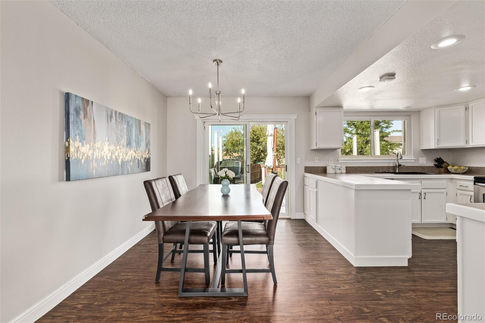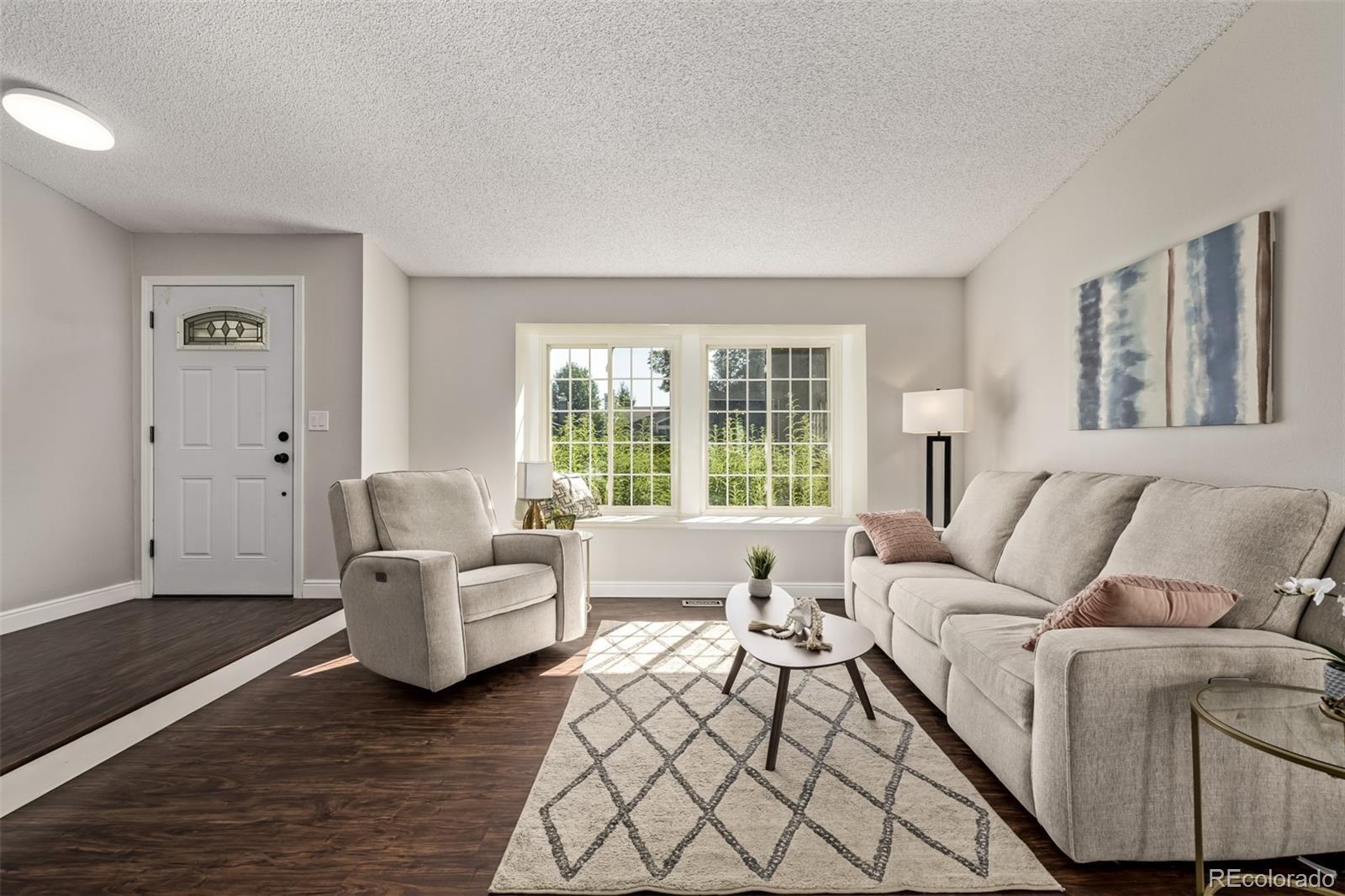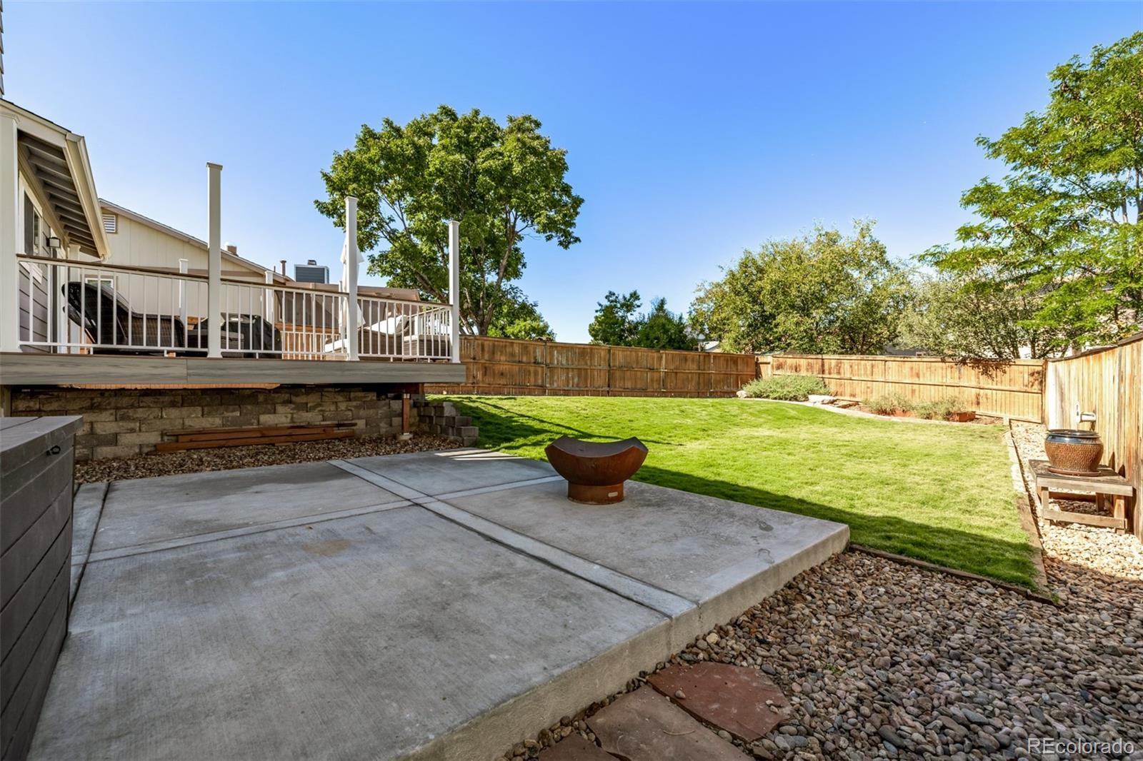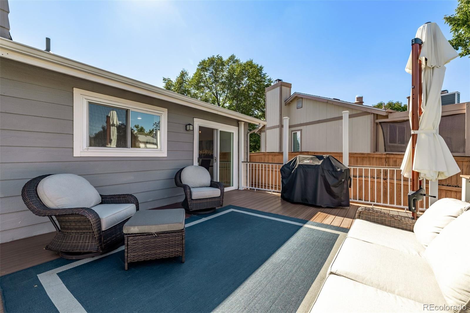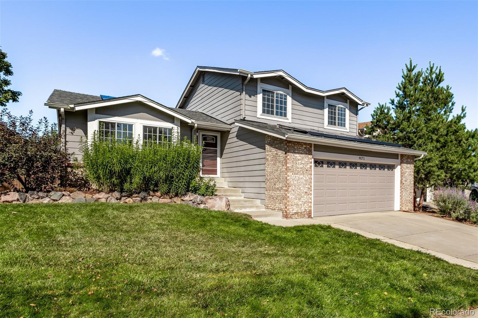 Welcome to your future happy place! This beautifully updated 4-bedroom home is move-in ready with thoughtful upgrades inside and out. Step inside to find new luxury vinyl plank flooring, fresh paint, and brand-new carpet that make the home feel bright and modern. The kitchen features white cabinets, abundant storage and prep space, and an attached dining room that’s perfect for family dinners or hosting friends. Multiple living areas offer room to spread out — cozy up by the wood-burning fireplace in the family room, relax in the living room, or host game night in the basement rec room. Set on a large lot, this property boasts two inviting outdoor spaces: a deck off the kitchen and a patio off the family room, ideal for gatherings or quiet mornings. Lush Bermuda grass, beautiful flower beds, and landscaping create a true backyard oasis. Peace-of-mind upgrades include a radon mitigation system, Aquasana whole-house water filter and conditioner, roof with high-impact shingles (insurance savings!), and owned solar panels for lower energy bills. All just a short stroll to Northridge Elementary and the Foothills Trail — this is Colorado living at its best!