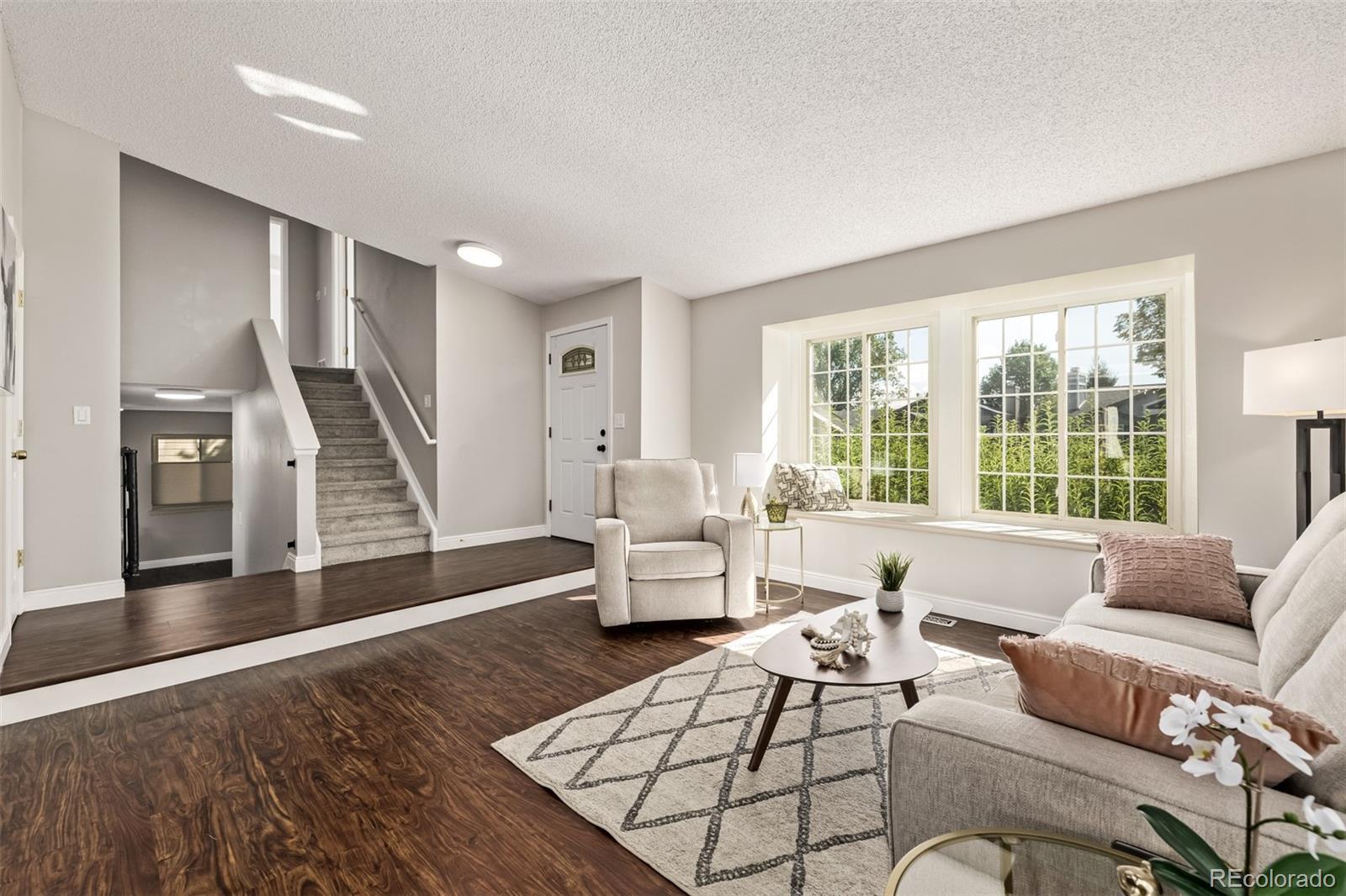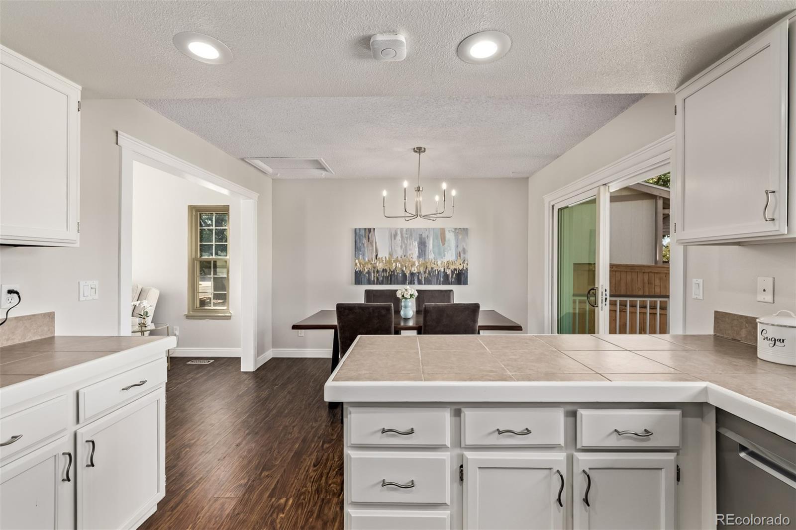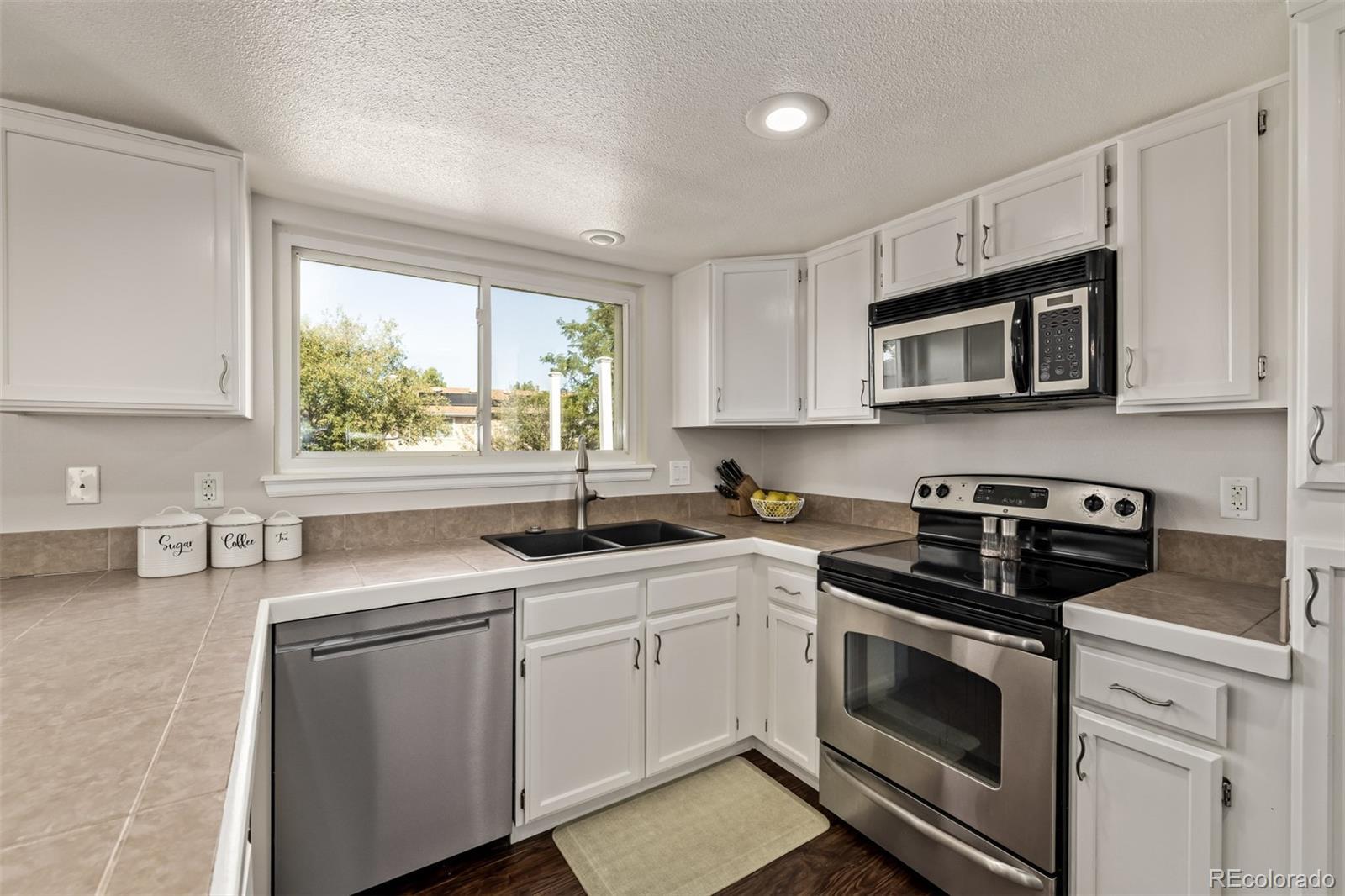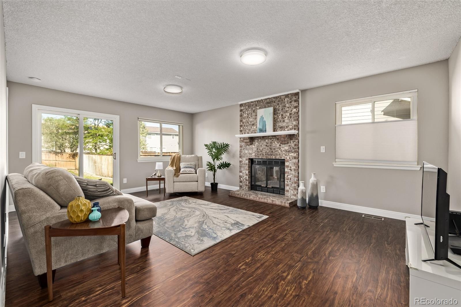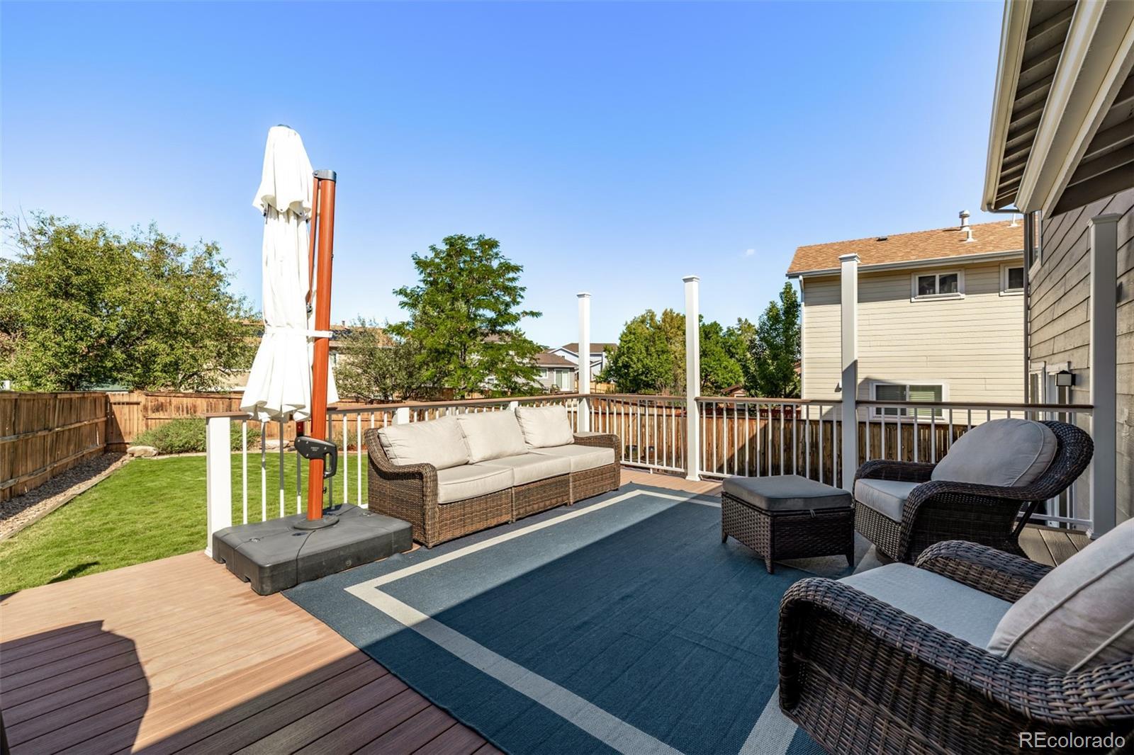 Welcome to your future happy place! This beautifully updated 4-bedroom home is move-in ready with thoughtful upgrades inside and out. Step inside to find new luxury vinyl plank flooring, fresh paint, and brand-new carpet that make the home feel bright and modern. The kitchen features white cabinets, abundant storage and prep space, and an attached dining room that’s perfect for family dinners or hosting friends. Multiple living areas offer room to spread out — cozy up by the wood-burning fireplace in the family room, relax in the living room, or host game night in the basement rec room. Set on a large lot, this property boasts two inviting outdoor spaces: a deck off the kitchen and a patio off the family room, ideal for gatherings or quiet mornings. Lush Bermuda grass, beautiful flower beds, and landscaping create a true backyard oasis. Peace-of-mind upgrades include a radon mitigation system, Aquasana whole-house water filter and conditioner, roof with high-impact shingles (insurance savings!), and owned solar panels for lower energy bills. All just a short stroll to Northridge Elementary and the Foothills Trail — this is Colorado living at its best!