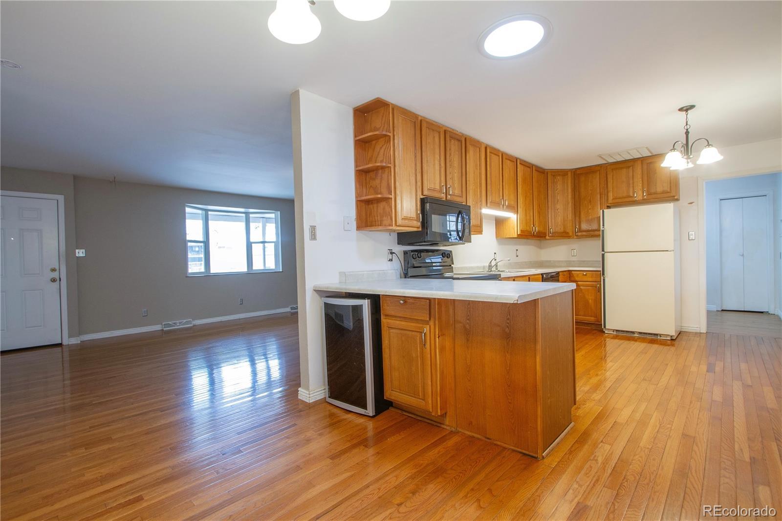 Enjoy easy, single-level living in this ranch-style home, ideally situated toward the end of a quiet cul-de-sac on nearly a 1/4-acre lot. Featuring 3 bedrooms and 2 bathrooms, this property offers a rare opportunity to build sweat equity and create a home that truly reflects your style—perfect for someone who wants to update over time or investors seeking a great investment opportunity. The spacious living room has beautiful hardwood floors, a cozy wood-burning fireplace, and a large bay window that allows for natural light. The layout flows seamlessly from the living room to the dining area and into the kitchen, which includes all appliances. The kitchen opens to a large family room with lots of windows, creating a bright and inviting gathering space. Washer and dryer are included. The primary bedroom features a private ¾ bath. Additional highlights include an oversized one-car garage with lots of shelving, a one-car carport, a newer roof (2024), a new sewer line from the house to the sidewalk (2019), and a sprinkler system in both the front and back yard. Enjoy the convenience of biking or taking a short drive to Olde Town Arvada, where you can explore shops, fine dining, coffee houses, breweries, the farmers market, and light rail access. Close to miles of scenic walking and biking trails, this home offers both location and potential.