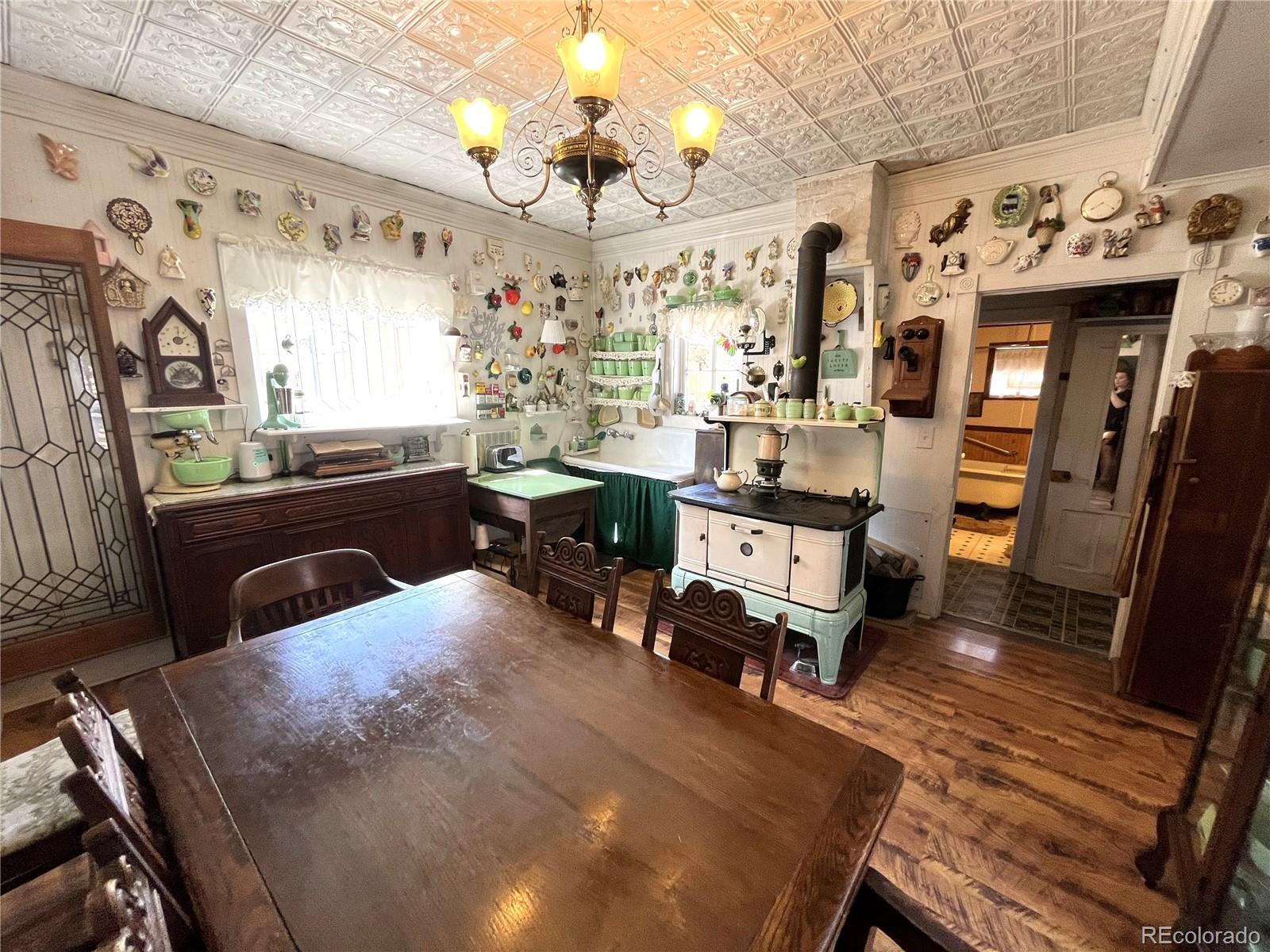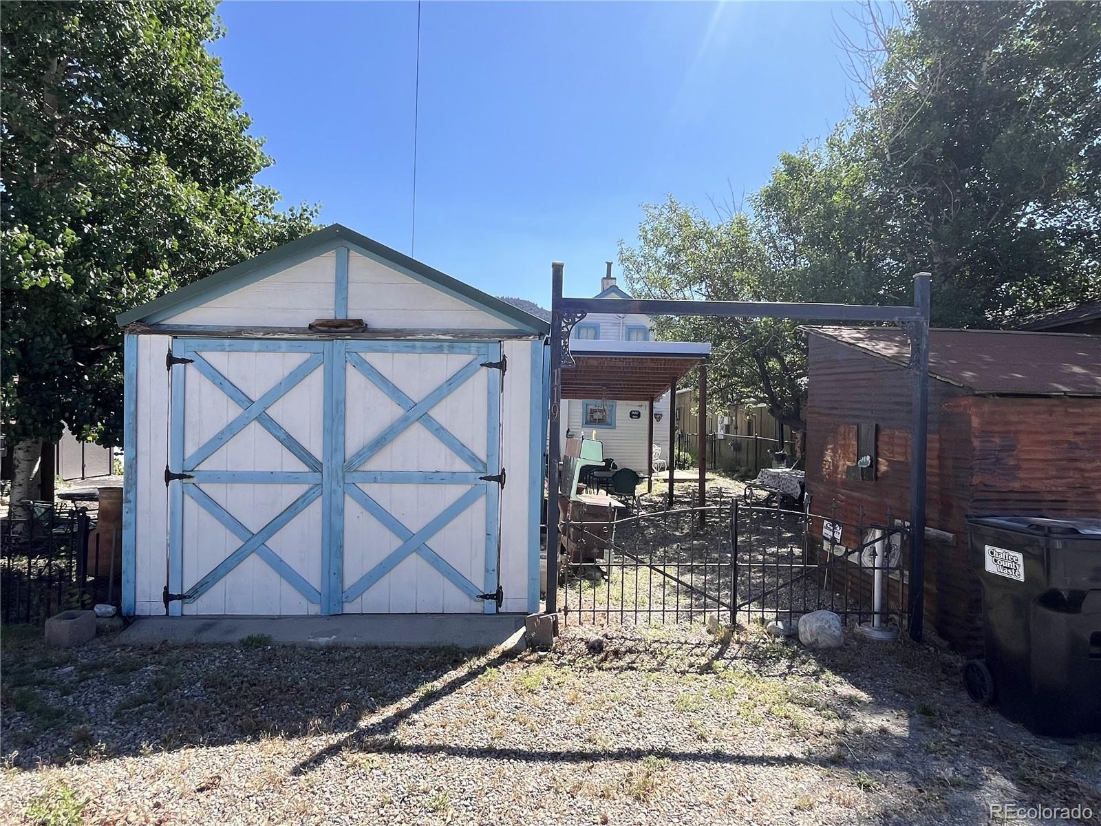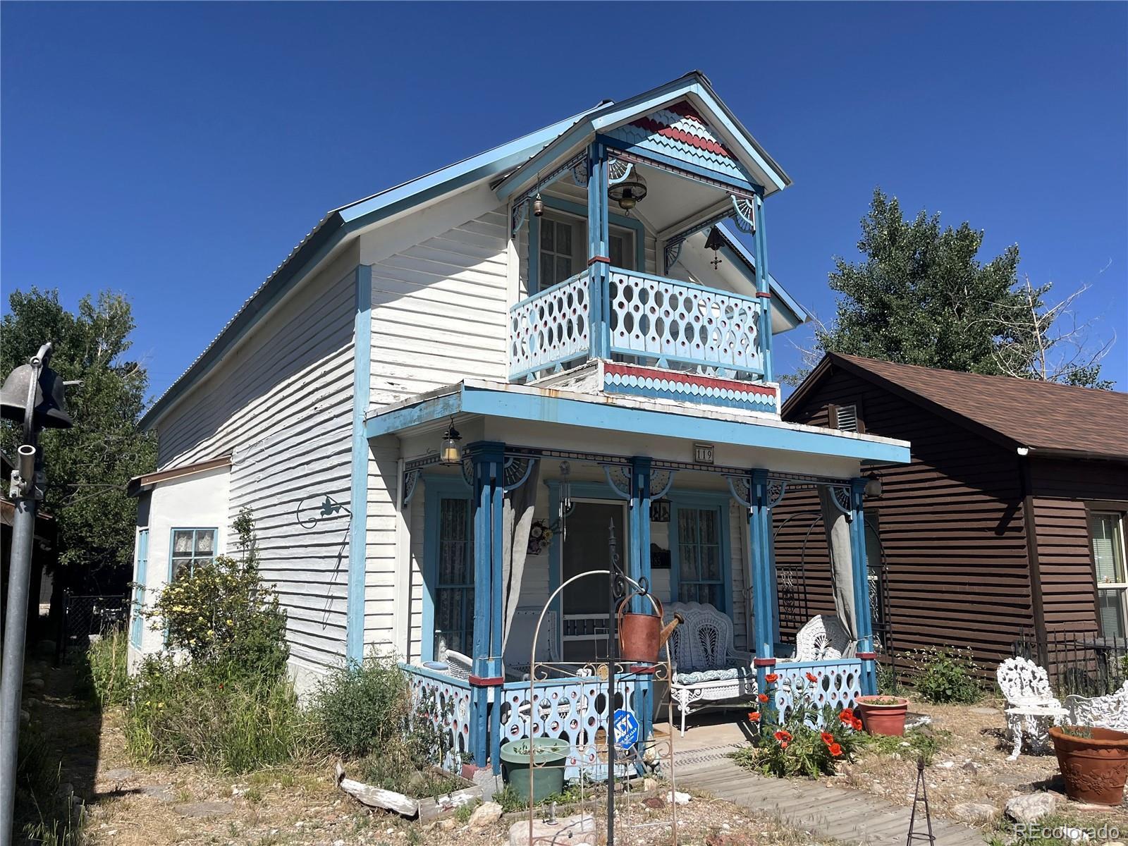 Charming Victorian in Downtown Buena Vista! This beautifully preserved home sits in a prime location of Downtown Buena Vista. Mixed Use Zoning, allowing for both residential and/or commercial use. Perfect for a quaint business or a cozy residence. Step into a classic Victorian full of timeless character and warmth. The inviting family room features a freestanding wood stove and large windows that fill the space with natural light. The kitchen includes wood floors, a cozy small breakfast nook, and a unique stove/oven that also serves as an additional heat source, adding to the home’s vintage charm. The kitchen is equipped with a refrigerator, small range/oven, and a lovely dining area that opens to a side patio, ideal for enjoying Buena Vista’s southern sun, fragrant rose bushes, and mature apple trees. The primary bedroom is conveniently located on the main floor, with an adjacent bath featuring a cast iron tub/shower. Upstairs, you’ll find a standard sized bedroom with its own bathroom, plus a larger bedroom on the east side with a private balcony overlooking East Main and Railroad Streets. Enjoy a front-row seat to parades and Main Street events right from your fully fenced front yard with wrought iron detailing and a charming covered porch. The detached 11' x 16' garage, accessed off Tabor Street, is perfect for storing recreational gear such as ATVs, snowmobiles, or motorcycles. A metal storage shed provides additional space. This rare gem also features a security system and offers endless potential to remodel and restore its historic elegance. Located just behind Town Hall, this property is bursting with opportunities. Whether you're dreaming of a unique business, or simply a one-of-a-kind home in the heart of Buena Vista.
