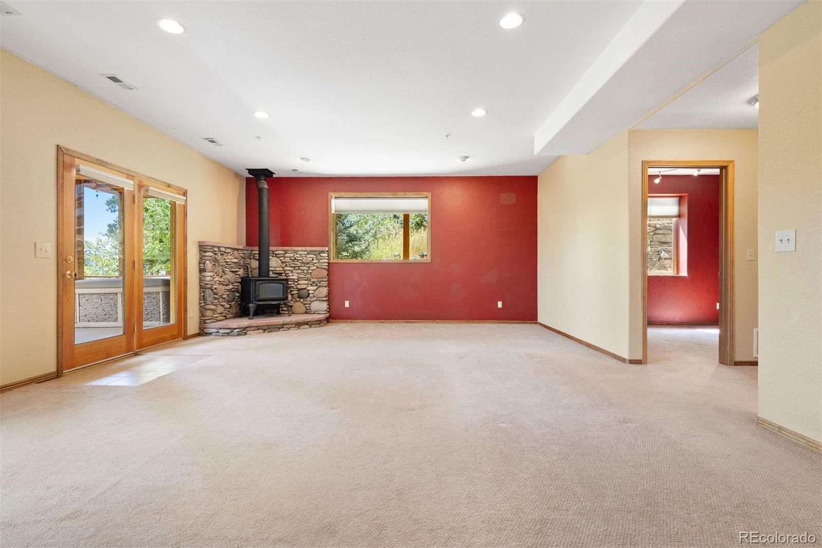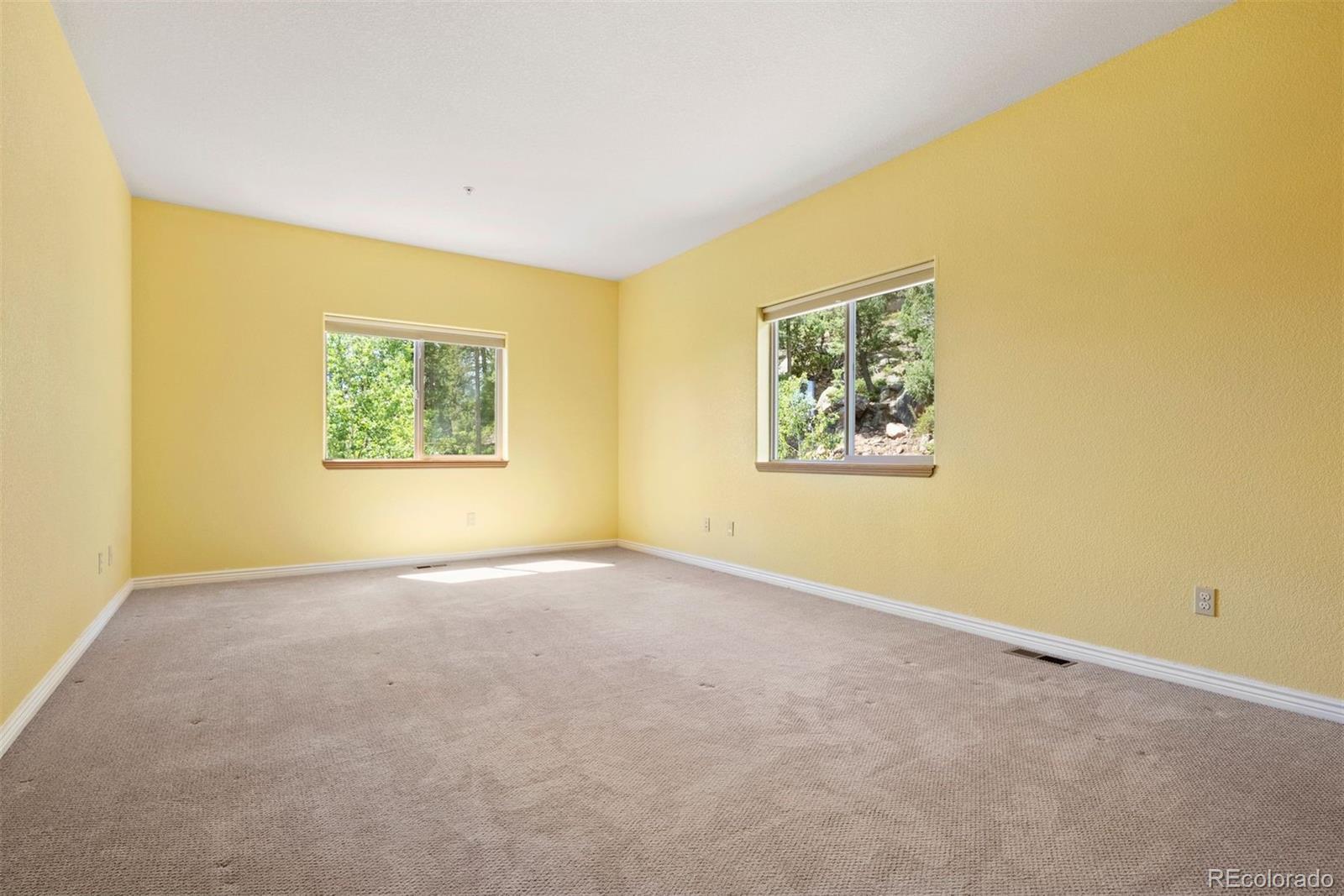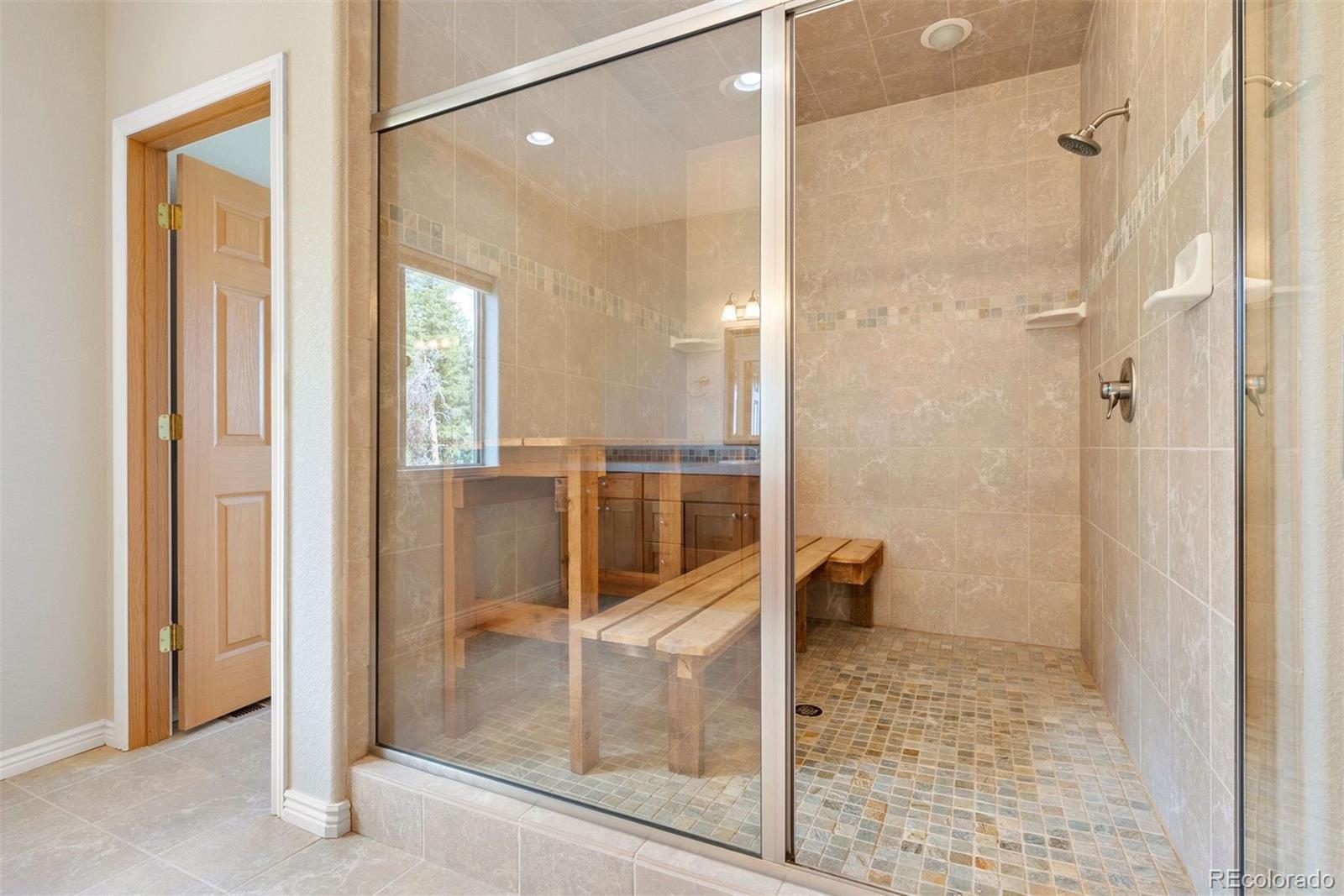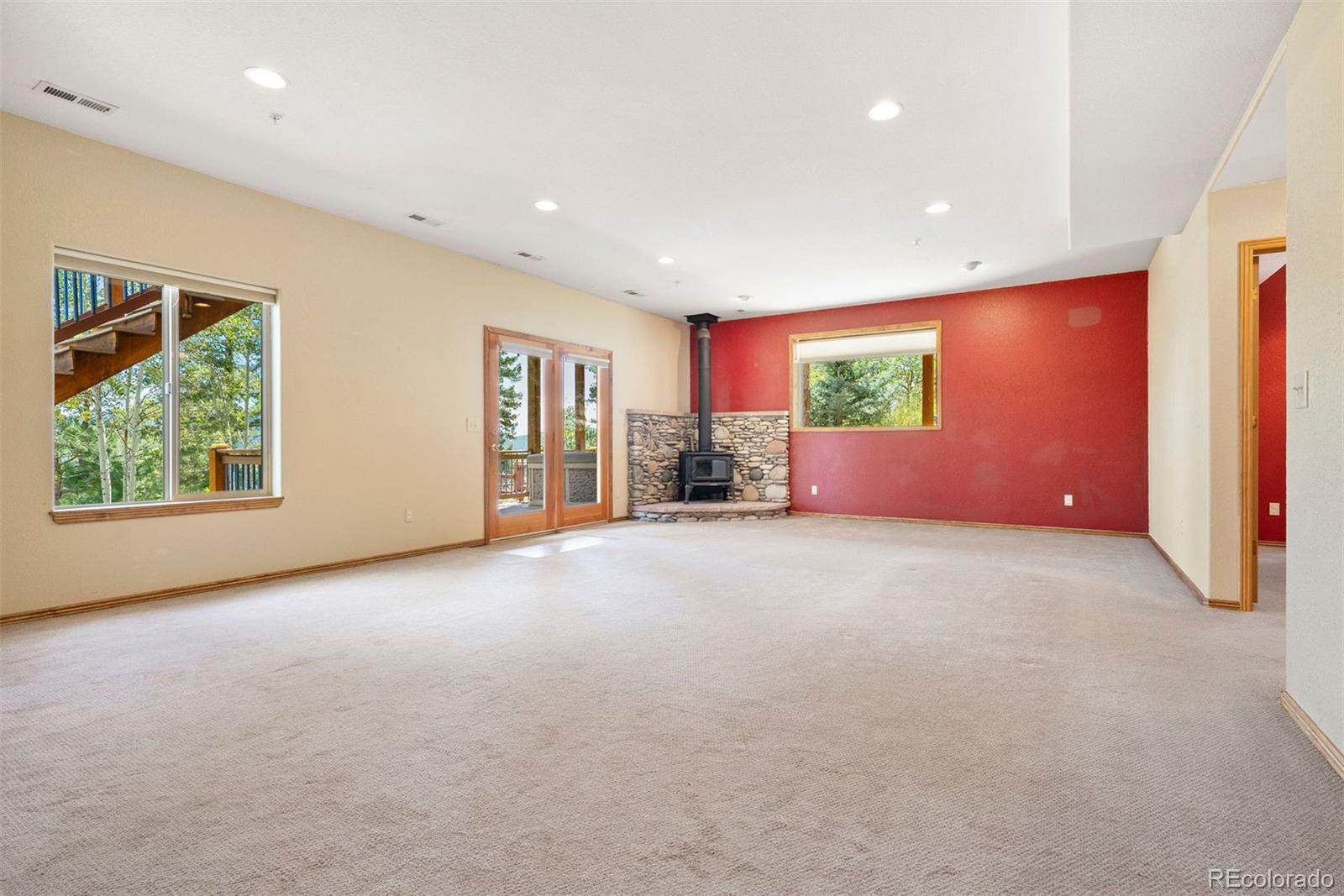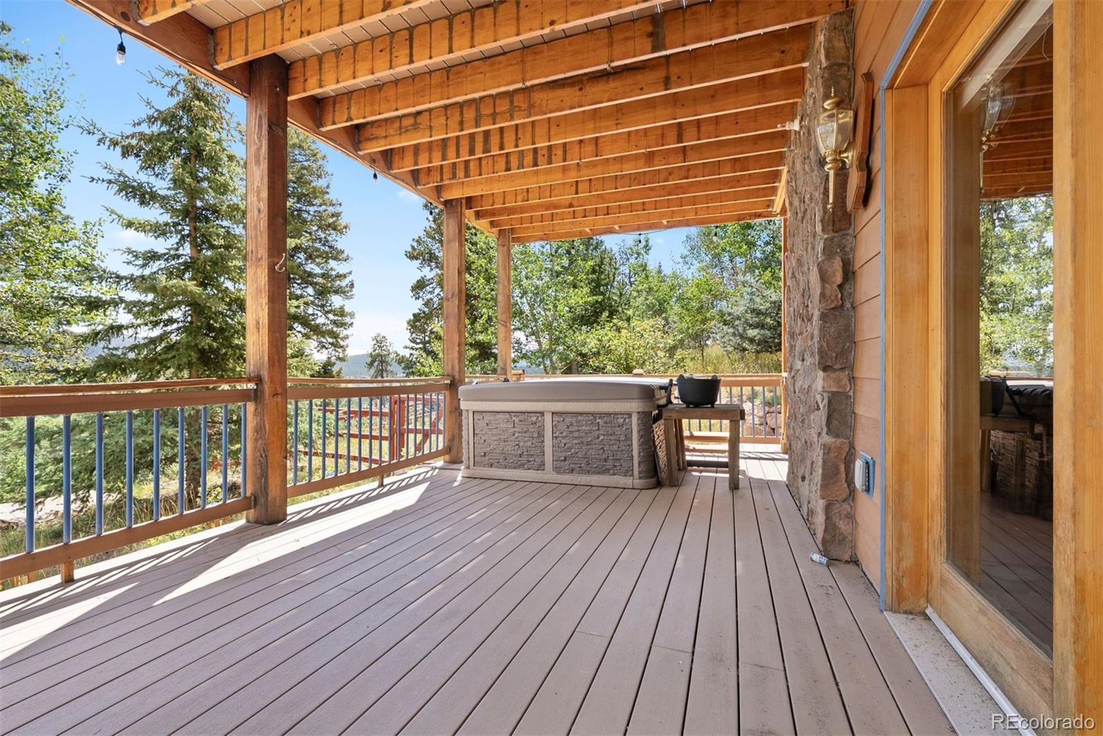 Nestled at the top of a quiet, private Conifer road, this property has the best of mountain living: beautiful views, a charming outdoor setting, a spacious three-bedroom home, and easy access to the amenities in Aspen Park or the Colorado mountains. Homeowners can enjoy true indoor-outdoor living, with outdoor spaces accessible from each level of this tri-level home. A hot tub and built-in fire pit provide additional settings to enjoy the beautiful surroundings. The paved driveway, attached two-car garage and additional workshop/studio create ample space for vehicles, RVs, ATVs or working on projects. Furry friends will have freedom to run in the large fenced dog run and gated deck areas. The indoor space is light and bright, with ample windows showcasing the beautiful views. During the winter, curl up by one of the cozy wood stoves in the two finished living areas of the home. The main floor features an open concept kitchen/dining room/living room, as well as a bedroom and full bath, plus a laundry room conveniently located adjacent to the kitchen. Two spacious and light-filled bedrooms are located on the upper level, along with a stunning newly-remodeled bathroom with a large walk-in shower/sauna. One bedroom walks out to a private deck and features a walk-in closet with built-ins. The lower level features a living room, a full bath, and a multi-purpose room that could be used as an office, workout room, sewing room. Storage abounds with a large attic/storage area with easy stair access from the upper level. Road maintenance is $420 annually and is a cooperative agreement among the residents of Blue Sky Trail.