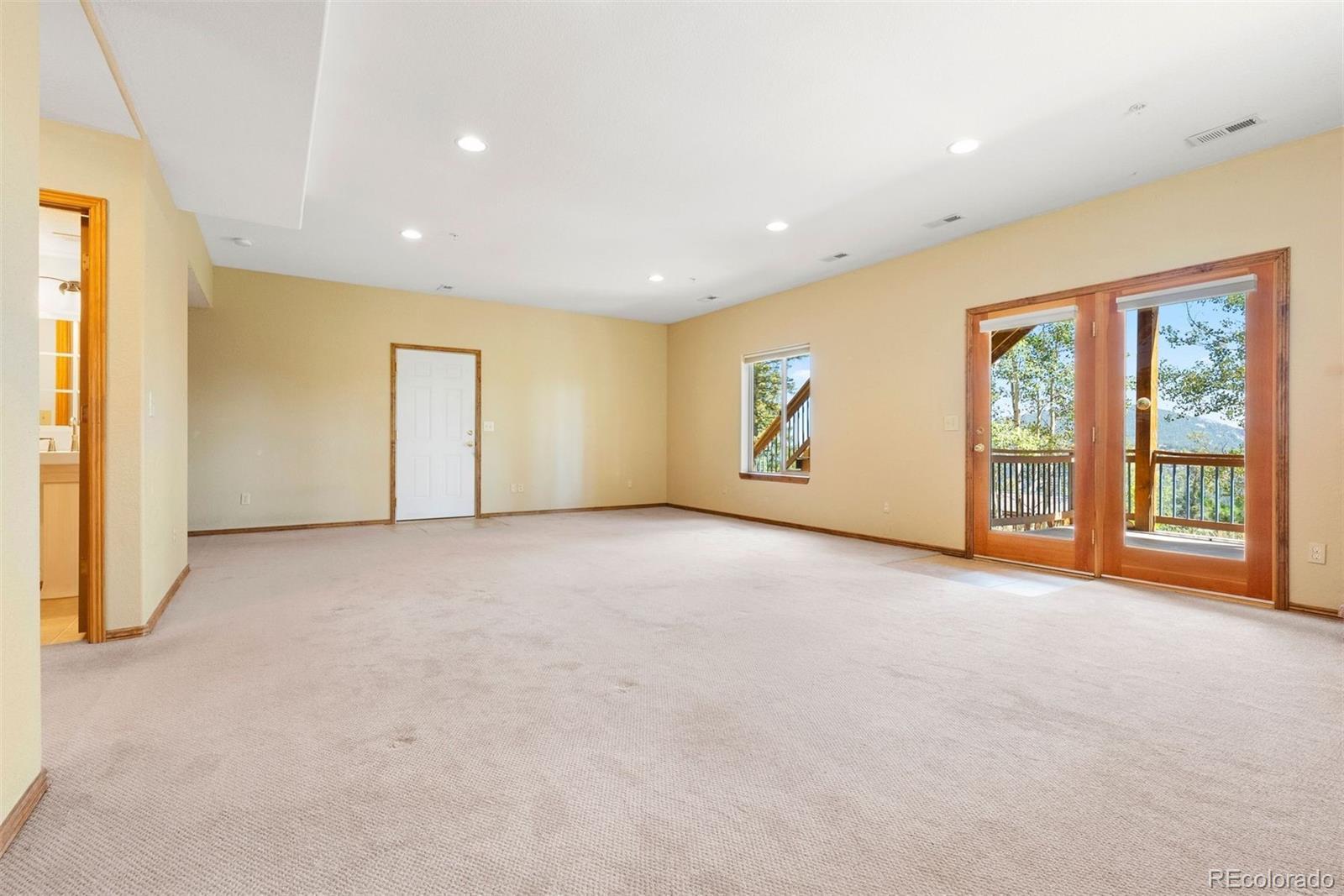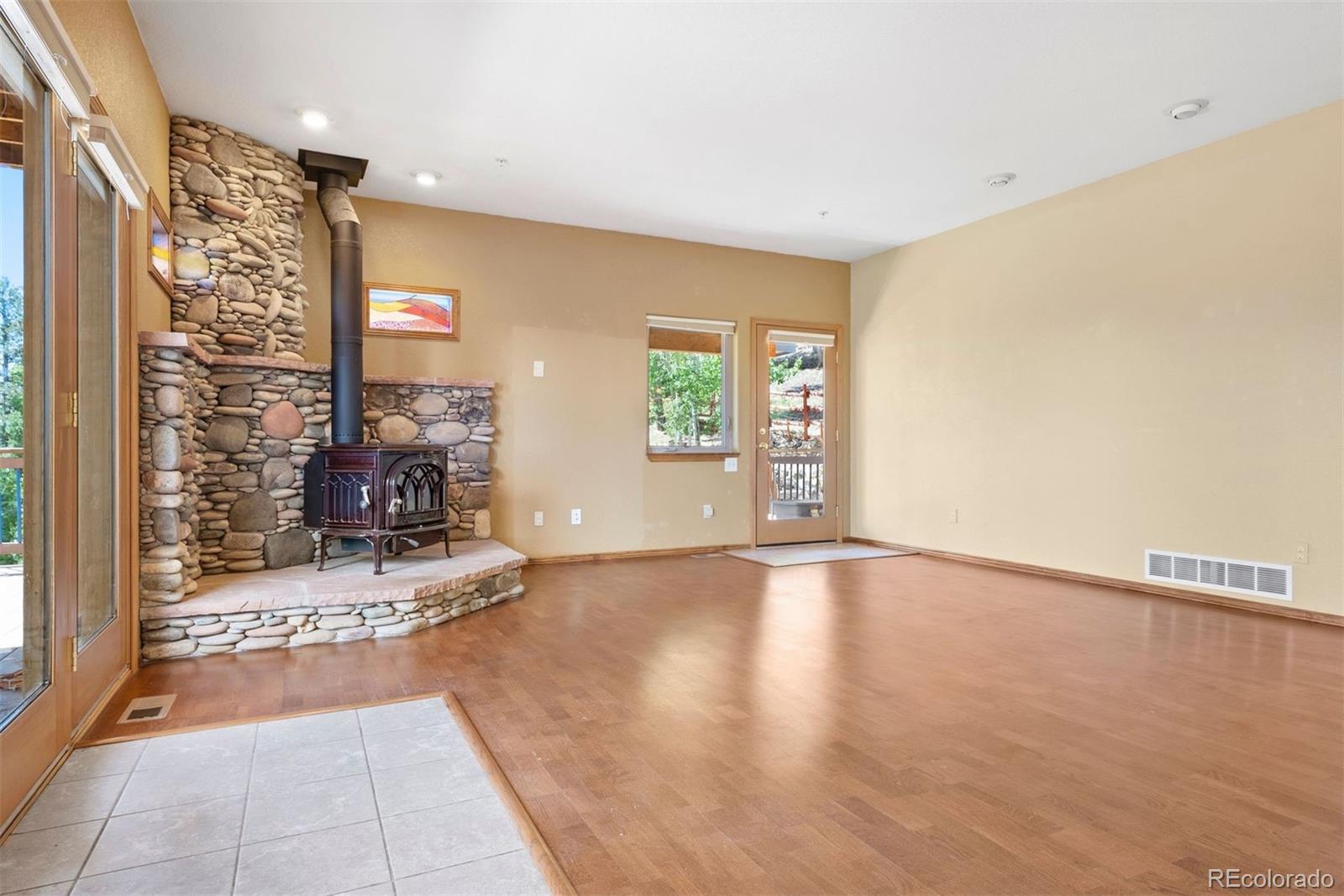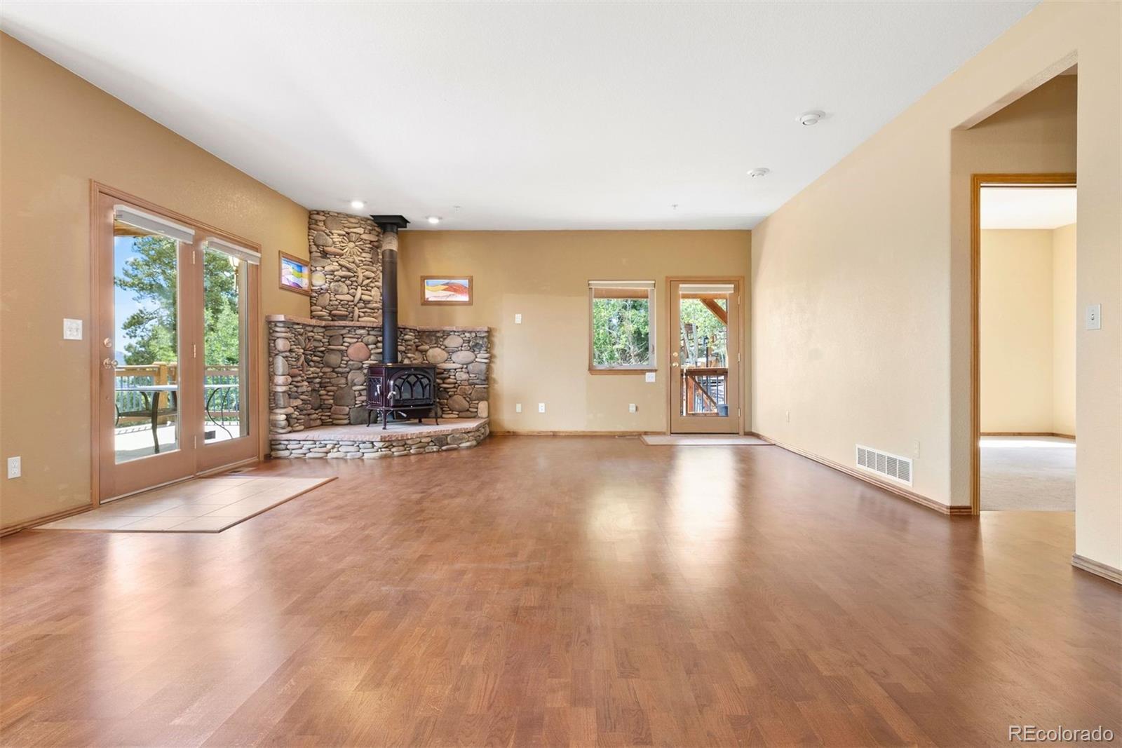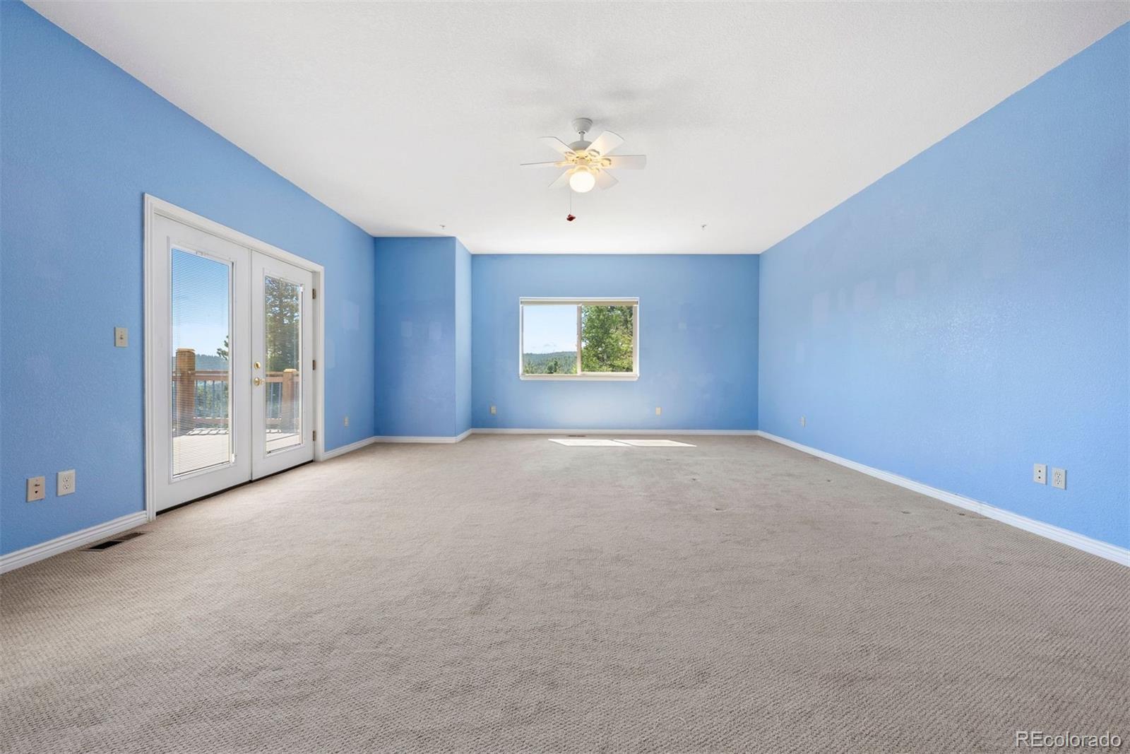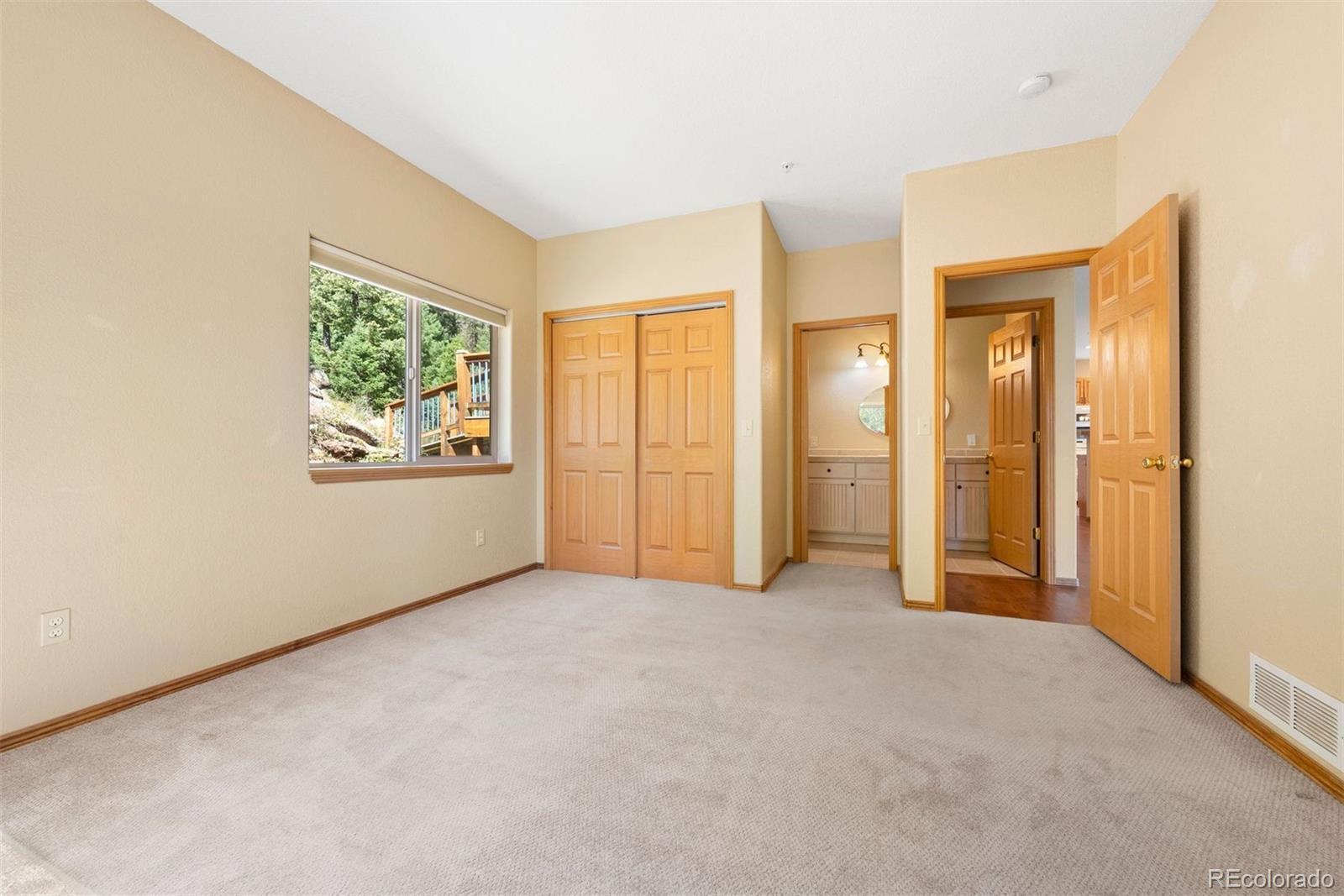 Nestled at the top of a quiet, private Conifer road, this property has the best of mountain living: beautiful views, a charming outdoor setting, a spacious three-bedroom home, and easy access to the amenities in Aspen Park or the Colorado mountains. Homeowners can enjoy true indoor-outdoor living, with outdoor spaces accessible from each level of this tri-level home. A hot tub and built-in fire pit provide additional settings to enjoy the beautiful surroundings. The paved driveway, attached two-car garage and additional workshop/studio create ample space for vehicles, RVs, ATVs or working on projects. Furry friends will have freedom to run in the large fenced dog run and gated deck areas. The indoor space is light and bright, with ample windows showcasing the beautiful views. During the winter, curl up by one of the cozy wood stoves in the two finished living areas of the home. The main floor features an open concept kitchen/dining room/living room, as well as a bedroom and full bath, plus a laundry room conveniently located adjacent to the kitchen. Two spacious and light-filled bedrooms are located on the upper level, along with a stunning newly-remodeled bathroom with a large walk-in shower/sauna. One bedroom walks out to a private deck and features a walk-in closet with built-ins. The lower level features a living room, a full bath, and a multi-purpose room that could be used as an office, workout room, sewing room. Storage abounds with a large attic/storage area with easy stair access from the upper level. Road maintenance is $420 annually and is a cooperative agreement among the residents of Blue Sky Trail.