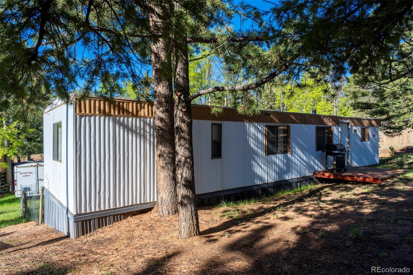 Discover 310 Blossom Road, a modest two-bedroom, one-bath mobile home built in 1982 and nestled within the wooded Tranquil Acres community just outside Woodland Park. Offering quick access to hiking trails and mountain scenery. Sit out on the covered back deck and enjoy the outdoors. At this price point, it’s an ideal opportunity for an investor or owner-builder to breathe new life into the home. Just 10–15 minutes from Woodland Park’s dining and services, and about a half hour drive to Colorado Springs, this parcel presents both convenience and potential in a serene mountain setting.