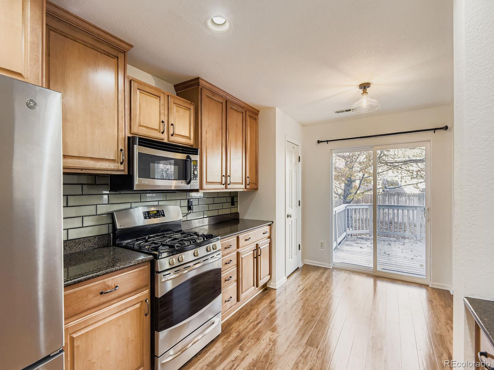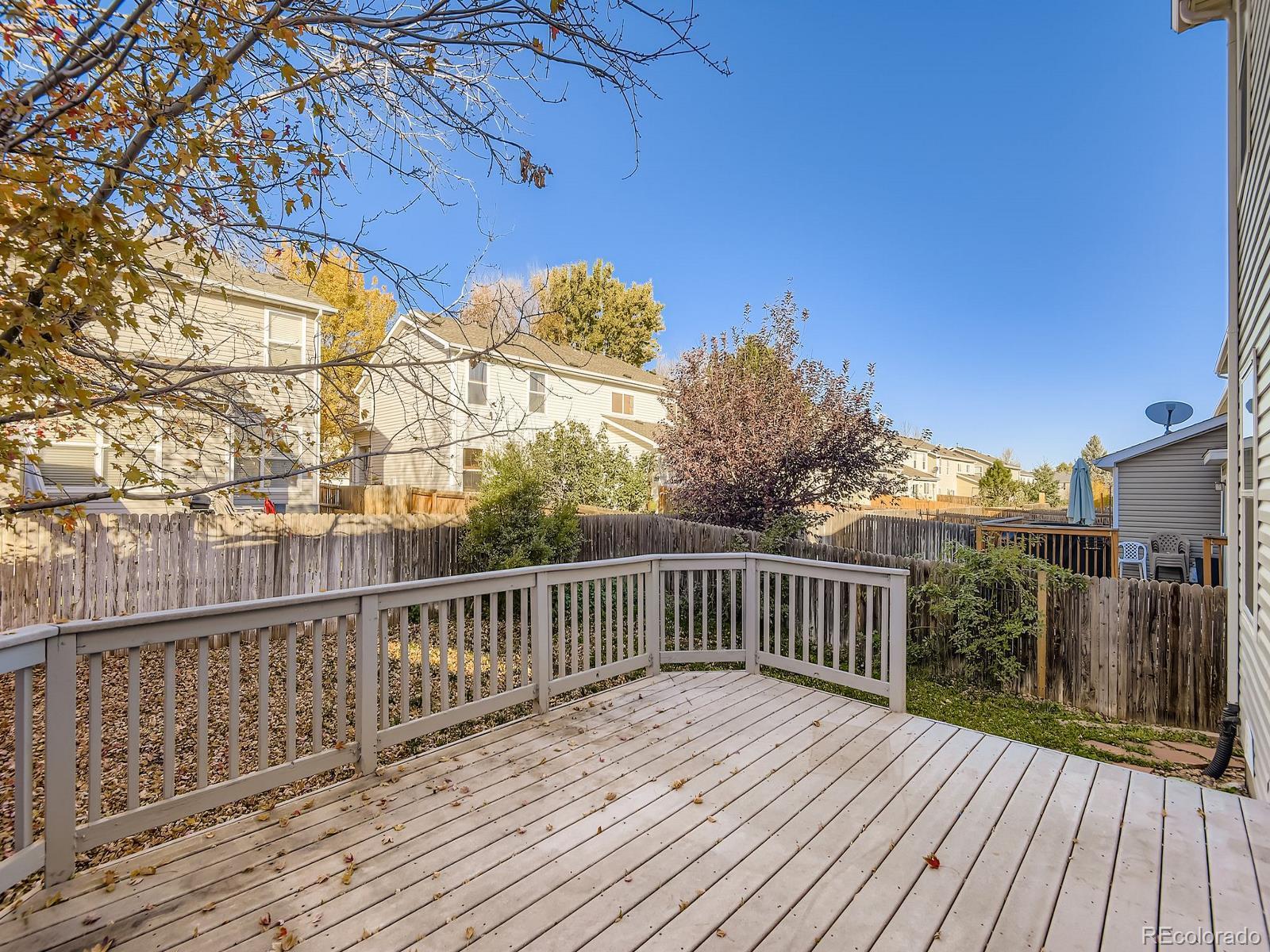 Great Location! Exceptional paired Townhome in the popular Southcreek Neighborhood! This updated well cared for Townhome has a lot to be excited about! 2 Car Attached Garage! Fully fenced back yard w/large deck for grilling and entertaining! Beautiful updated kitchen with newer SS Appliances and Gas Range, Granite Counters and custom backsplash! Updated Bathrooms! Scratch resistant Engineered Wood Flooring throughout main floor. Large Primary Bedroom w/Walk-In Closet. Cherry Creek Schools! New Water Heater 2025, New Roof 2024, New Siding & Windows on west side of house 2024. Washer & Dryer stay. Located by Cherry Creek Trails. Easy access to DTC and E470. Call and schedule your showing today!