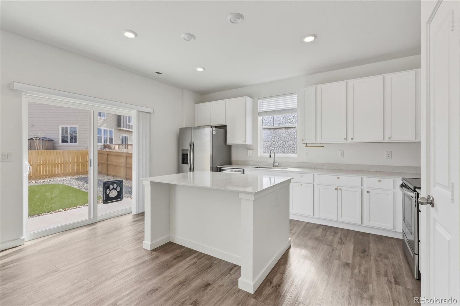 Welcome to this beautifully designed 3-bedroom, 3-bathroom home in Elizabeth, offering modern comfort, thoughtful upgrades, and the peace of mind that comes with a home built just three years ago. Move-in ready and meticulously maintained, this newer construction property blends contemporary finishes with functional living spaces—perfect for today’s Colorado lifestyle. Step inside to an open-concept floor plan filled with natural light and clean, modern design. The spacious living room flows seamlessly into a stylish kitchen featuring sleek countertops, stainless steel appliances, ample cabinetry, and an eat-in island ideal for entertaining or casual dining. The adjacent dining area provides easy access to the backyard, creating the perfect indoor-outdoor living experience. Upstairs, the private primary suite offers a relaxing retreat with a generous walk-in closet and en-suite bathroom complete with dual vanities and a modern shower. Two additional bedrooms and a full bath provide flexible space for guests, a home office, or growing households. Outside, enjoy one of the property’s standout features: a large turf backyard with no direct neighbors behind, offering added privacy. The added concrete pad expands your outdoor possibilities—ideal for a future hot tub, fire pit seating area, basketball hoop, or additional patio space. Whether you’re hosting summer barbecues or enjoying quiet Colorado evenings under the stars, this backyard delivers space and versatility. Additional highlights include contemporary lighting and fixtures, an attached 2- car garage with 2 additional car spaces in the driveway, and low-maintenance landscaping. If you’re searching for a newer home in Elizabeth, Colorado with contemporary style, privacy, and room to grow, this exceptional property checks every box!