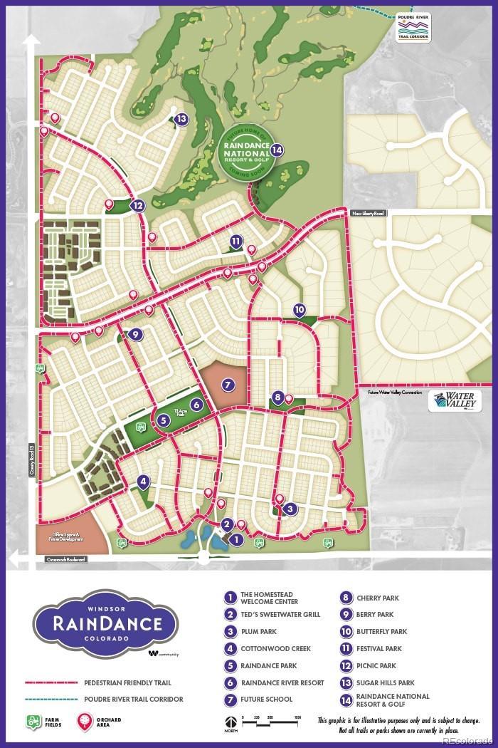 Price Reduced...Motivated Sellers! Check out this stunning home in Raindance! Situated on a spacious corner lot, this warm and inviting home offers thoughtful design and plenty of room to grow a family. The main level welcomes you with a charming foyer featuring a built-in coat rack and bench, a large office or den, and an open-concept kitchen with an island, walk-in pantry, and adjoining dining area—perfect for everyday living and entertaining. Upstairs, you’ll find an oversized primary suite complete with a five piece bathroom and generous walk-in closet. The upper level also includes a convenient walk-in laundry room with cabinets and counter space, two additional bedrooms, and a full bathroom. The lower level offers a spacious family room with a cozy fireplace and custom mantle, a fourth bedroom, a ¾ bathroom with walk-in shower, and a handy mudroom area with a coat rack and bench near the garage entry. The basement expands your living space even further, featuring a bonus room, a full bathroom, a fifth bedroom, and additional storage. Outside, enjoy the beautiful backyard with a covered patio, extended patio area, hot tub, and garden containers—perfect for relaxing or entertaining year-round.Walking distance to elementary school. Sellers replaced AC unit and hot water heater in 2023. The Rain Dance community features a 1.5-acre River Resort (with a lazy river, slides, and pools), the Rain Dance National Golf Course, a 13-acre park and over 15 miles of trails which connect to the larger 21-mile Poudre River Trail System, a community orchard, event center with sports bar and restaurant. This is truly a great place to call home!