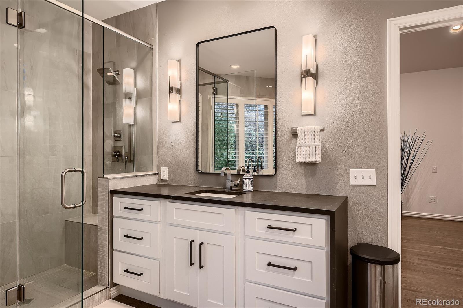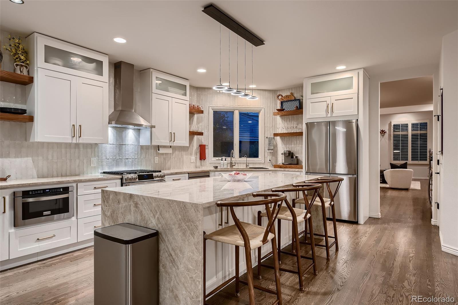 No Expense Spared On This Exquisite Ranch in Greenwood Village’s Coveted Bateleur Neighborhood! Step into a world of refined elegance and modern sophistication in this stunning ranch on a private cul-de-sac in The Preserve. Vaulted ceilings, refinished hardwood floors, plantation shutters, and an open, airy floor plan set the tone for exceptional living. The BRAND-NEW gourmet eat-in kitchen is a true masterpiece, boasting a dramatic waterfall center island with premium Taj Mahal quartzite, imported Italian ceramic tile backsplash, dual-fuel range with hood, and all new appliances—perfect for entertaining or everyday gatherings. The kitchen flows seamlessly to the serene family room with fireplace, custom built-ins, and access to the tranquil backyard patio. Formal dining and living rooms offer additional space for entertaining and elegant gatherings. The main-level primary suite is a private sanctuary with vaulted ceilings, a BRAND-NEW 5-piece spa-inspired bath featuring dual quartz waterfall countertops, a freestanding heated spa tub, and an oversized walk-in closet with custom built-ins. Two additional generous sized bedrooms are served by a beautifully updated bath. The updated lower level offers a spacious great room with wet bar and beverage fridge, two oversized bedrooms ideal for a theater, gym, or guest retreat, plus 1,800 sq. ft. of ample unfinished storage. Outdoors, the fully fenced backyard with covered patio provides space for gardening, dining, or quiet relaxation. Ideally located near premier dining, recreation, and scenic trails, this rare ranch combines timeless elegance, contemporary upgrades, and an extraordinary Greenwood Village lifestyle. Incredible Neighborhood Pool, Clubhouse, Gym, Tennis Courts, and Spa! Award Winning Cherry Creek Schools.