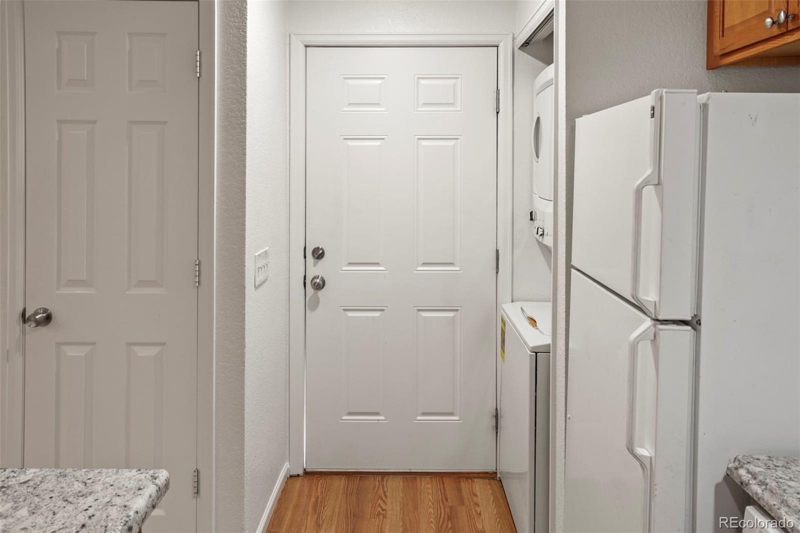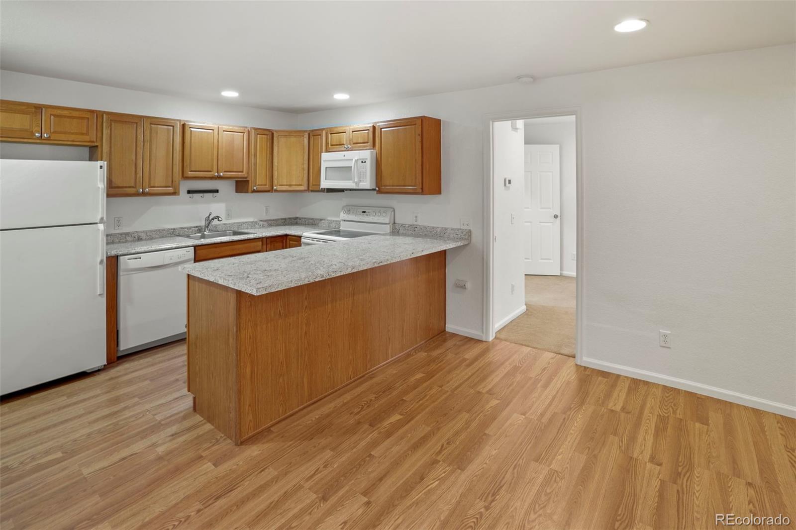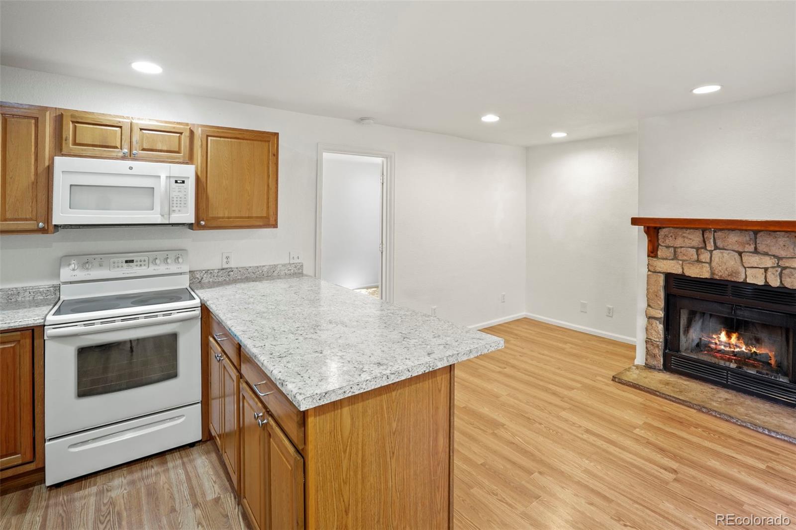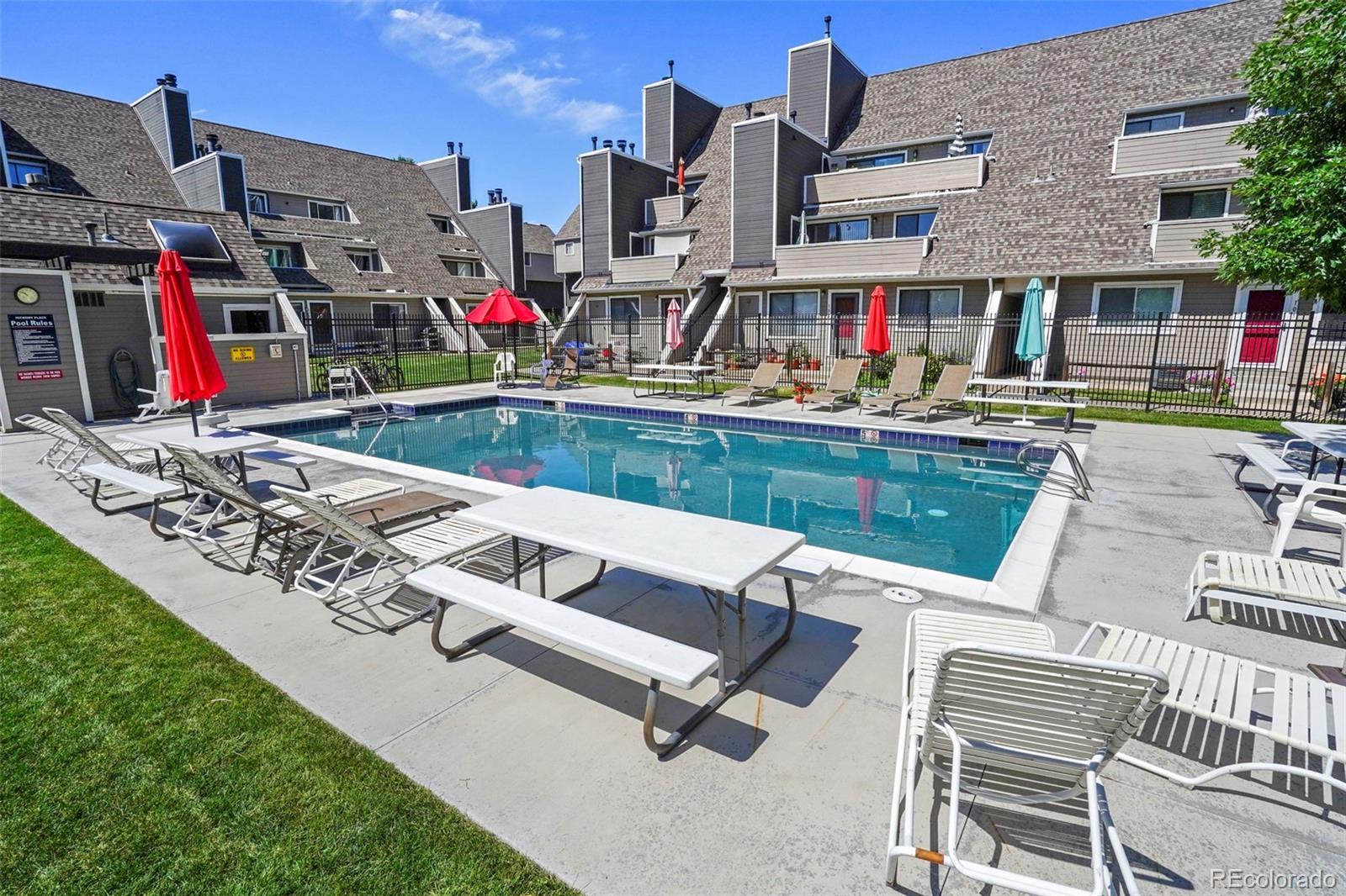 This is the perfect spot for comfortable simple living. This charming entry level end unit condo offers lots of natural light and tasteful updates. The open floor plan offers a kitchen, living area and bedroom. The kitchen has lots of counter space and cabinet storage along with room to pull up bar stools. Enjoy relaxing in the living room by a cozy wood fire in the cooler months or with air conditioning in the summer. The bedroom offers plenty of comfort for rest and a walk-in closet space. The full bathroom has been remodeled with gorgeous floor to ceiling tile and a vanity with streamlined fixtures. The washer/dryer is conveniently located in the unit. You will appreciate the covered carport and plenty of visitor parking. The view from the front door is calming and alluring as it looks out to the pool. All appliances included. This gem is hidden away in a quiet community surrounded by beautiful parks including Progress, Belleview, and Cornerstone. The location is superb with a just a short distance to enjoy so many amenities. Pirates Cove Water Park, Downtown Littleton, and the RTD Light Rail Station. The HOA is very reasonable for all the offerings. Trash, recycle, water and sewer all included plus a gorgeous pool!