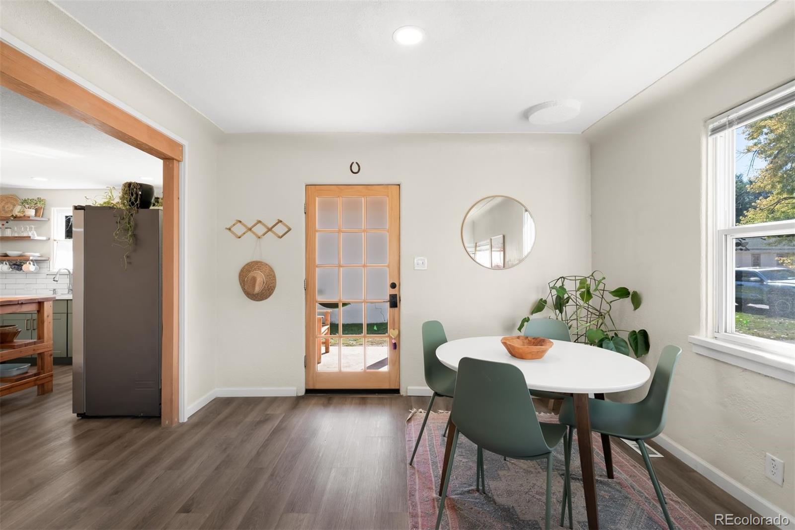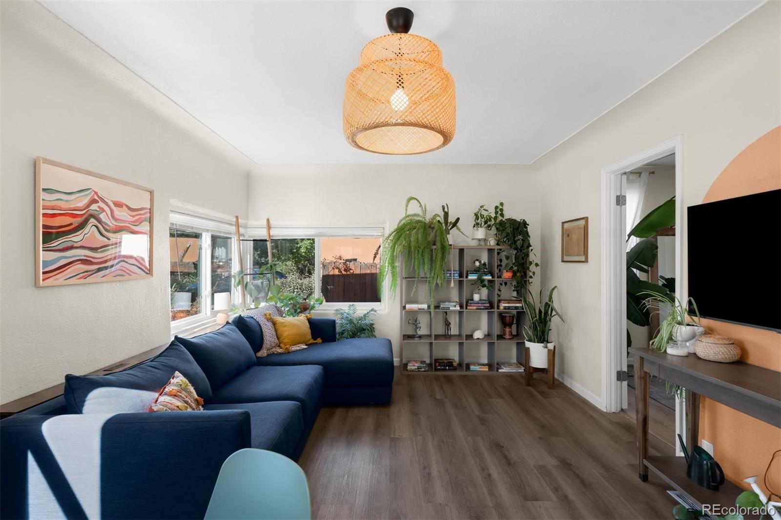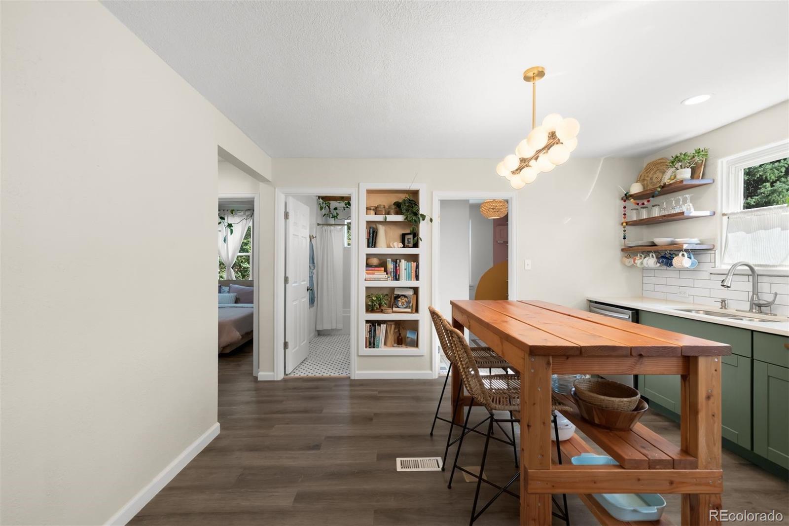 Discover refined, low-maintenance living in this updated 2-bedroom, 1-bath ranch on a quiet block in the desirable Two Creeks neighborhood, just north of Lakewood Country Club and 5 minutes away from Sloan’s Lake. Thoughtfully modernized, this home blends enduring character with contemporary comfort. Inside, large west-facing windows fill the open layout with natural light. The spacious eat-in kitchen features quartz countertops, stainless Samsung appliances, a moveable island for flexible prep space, and open shelving for a clean, modern aesthetic. The primary bedroom easily accommodates a king-sized bed and includes a reconfigured closet designed for maximum functionality, while the secondary bedroom serves equally well as a guest space or home office. The recently remodeled full bath showcases designer tilework, ceiling beams, and a heated towel rack. Additional upgrades include LVP flooring, new lighting, and brand-new central A/C (2025). The oversized 2-car detached garage offers abundant storage, including a separate workshop or gear room, ideal for outdoor enthusiasts or hobbyists. Set on an oversized fully fenced lot, the yard provides ample room for gardening or play, with privacy and space rarely found this close to the city. A newer roof and radon mitigation system (both 2020) are just a few of the recent improvements and add peace of mind for years to come. Located just a few blocks away from the soon to be newly redesigned Two Creeks Park, featuring trails, playgrounds, and open space, plus easy access to light rail, restaurants, and breweries, this home offers a seamless balance of neighborhood charm and urban access. Only 15 minutes to downtown Denver and 10 minutes to I-70 for quick mountain getaways. This home truly has it all - character, comfort, and a central location!