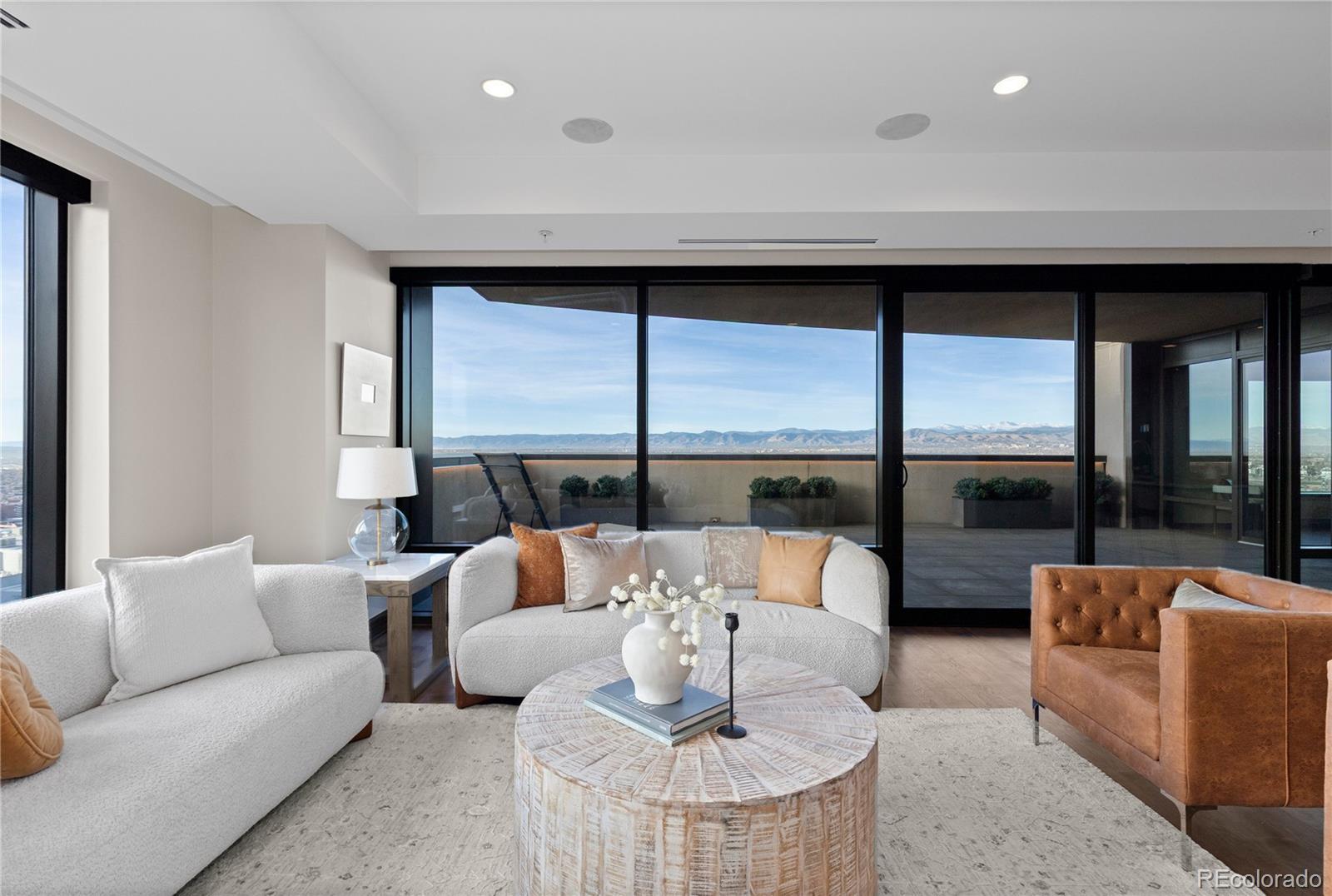 A rare offering in one of Denver’s most coveted addresses, residence #2430 set within Denver's iconic Four Seasons Private Residences, delivers an extraordinary blend of luxury, privacy & breathtaking natural beauty. Encompassing 1,951 Sq Ft, this southwest-facing corner home is the only 2-bed residence in the building that pairs uninterrupted mountain views w/ an expansive 615 Sq Ft private terrace—the largest among all 2-bed floor plans at the Four Seasons. From the moment you step inside, the panorama unfolds: sweeping 180-degree views of the mountains & city skyline that transform daily life into a cinematic experience. The oversized terrace becomes a true extension of the home—perfect for outdoor dining, entertaining, or simply savoring Denver’s legendary sunsets. The open-concept kitchen, living & dining areas are framed by floor-to-ceiling sliding glass doors that blur the line between indoors & out. Custom built-ins & a elegant fireplace anchor the living space. The brand-new chef’s kitchen is a showpiece in its own right, featuring a striking granite backsplash, top-tier appliances & generous island w/ seating. The west-facing primary suite offers stunning mountain views & direct terrace access. Its en-suite bath is a spa-inspired retreat w/ floor-to-ceiling marble, dual sink vanity & spacious walk-in closet. A large secondary bedroom provides comfort & privacy for guests, complete w/ custom closet built-ins & oversized en-suite bath. Additional features include a large entry foyer, powder room, hardwood flooring & automatic shades throughout, 2 reserved parking spaces & storage. As an owner, you’ll enjoy the unparalleled lifestyle that only the Four Seasons can provide; including 24-hour concierge, security, & valet, full-service spa & fitness centers, outdoor heated pool, in-residence services & dedicated residential management team. Delivering an unmatched luxury lifestyle in the heart of downtown Denver.